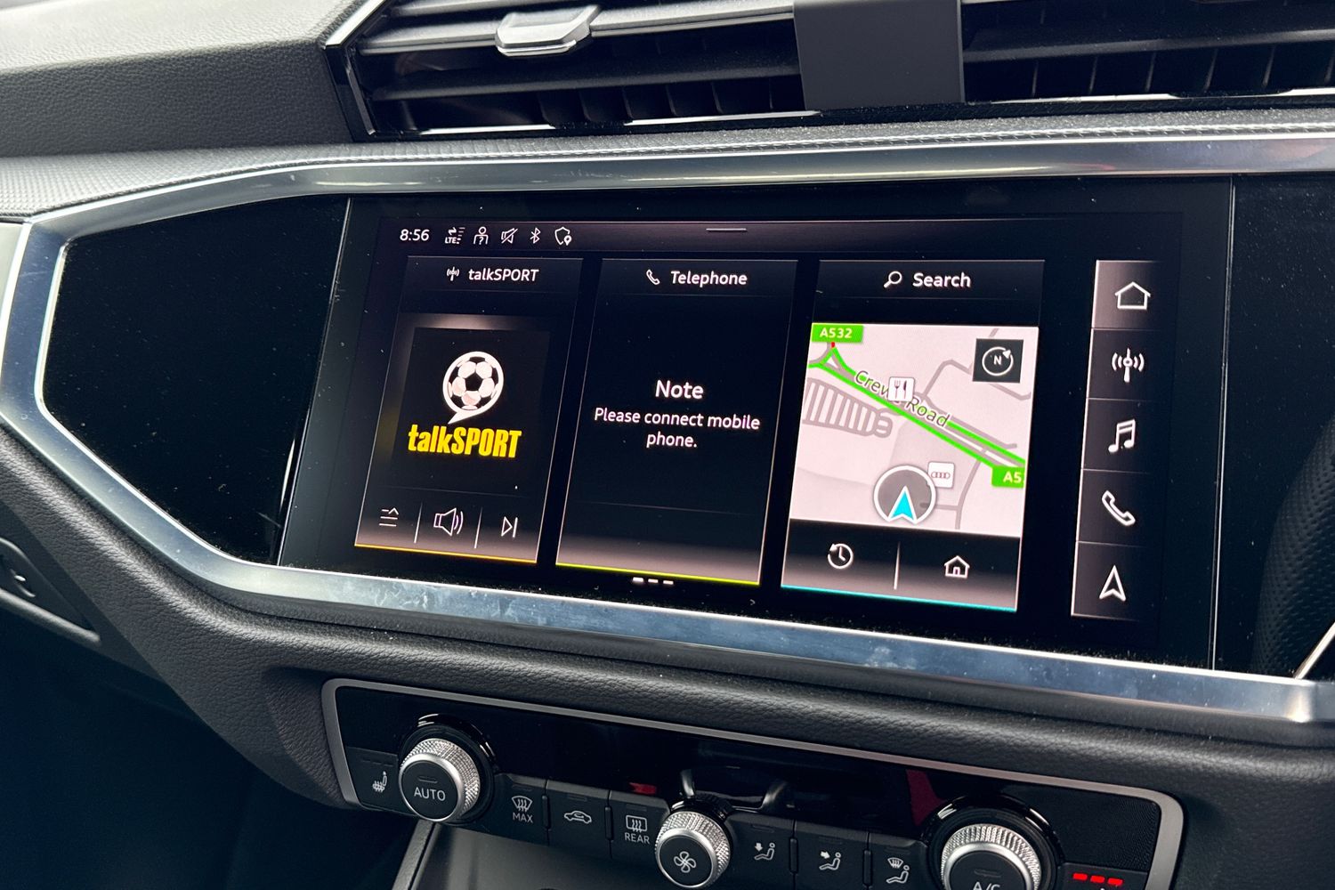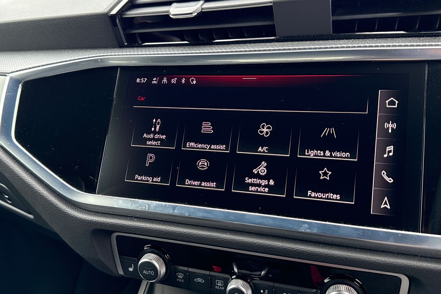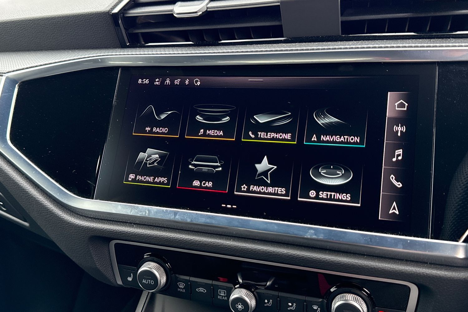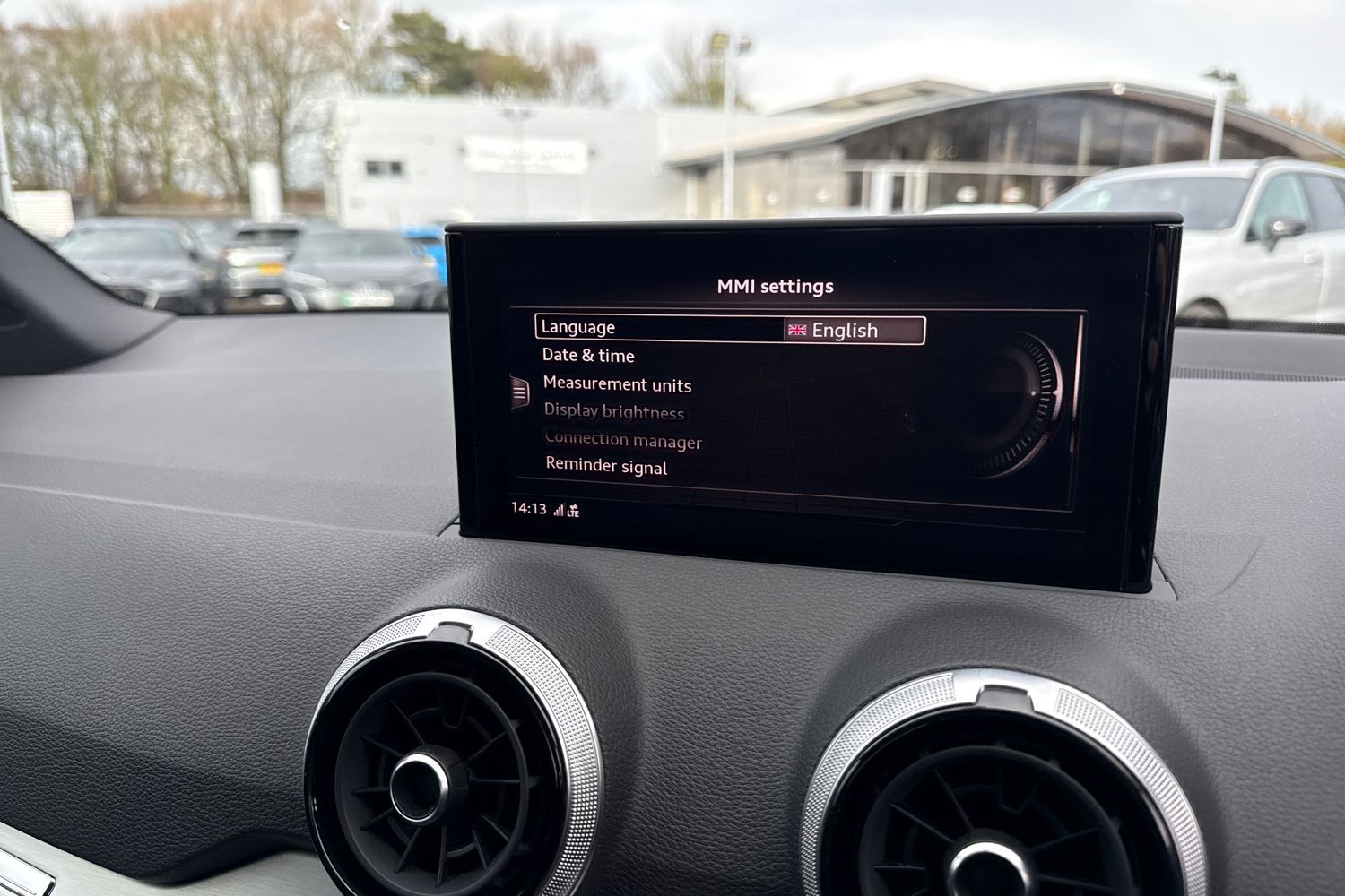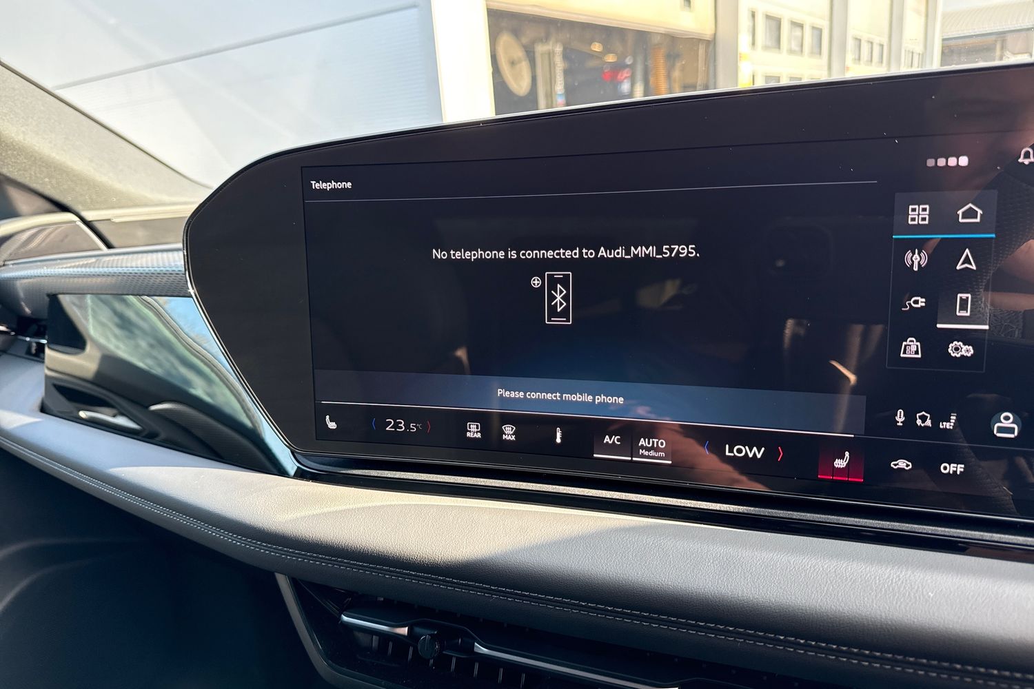 "Detail dashboard around MMI touch colour display in glass look, black with surround in aluminium look",