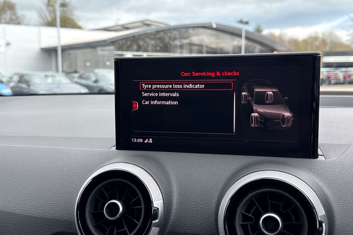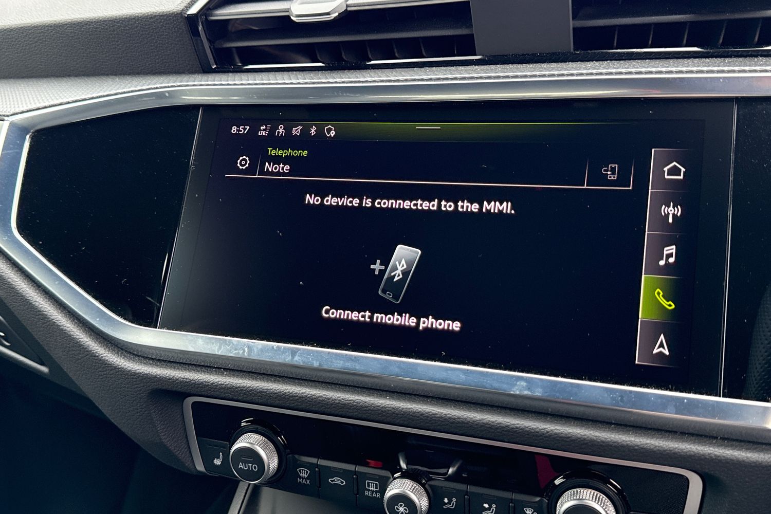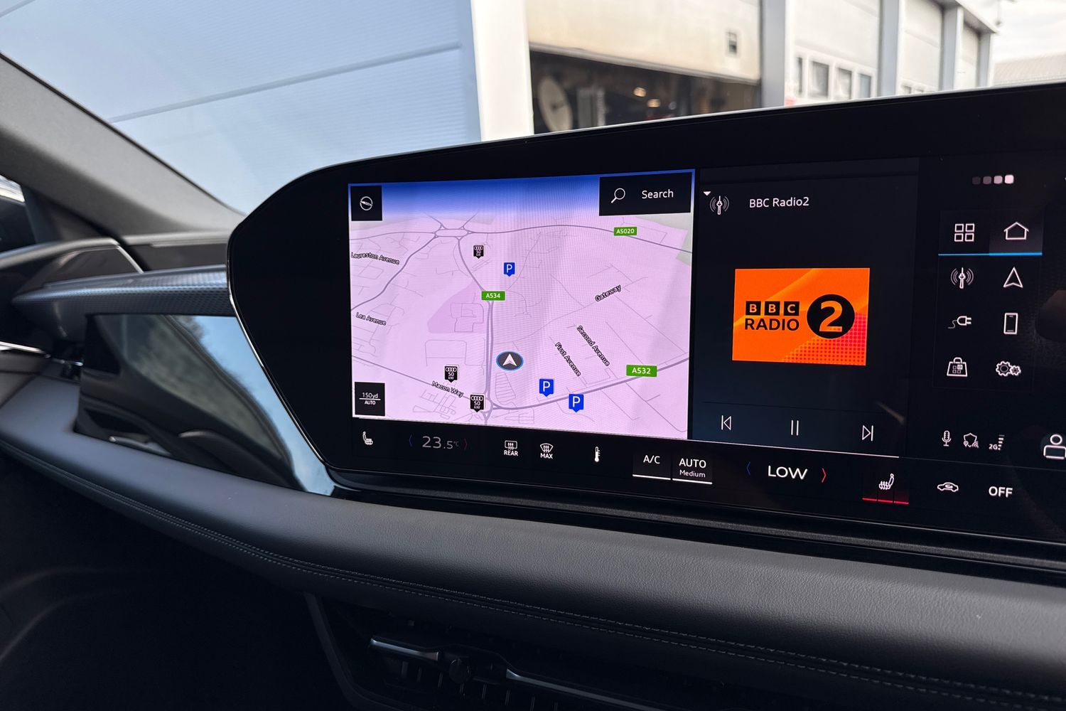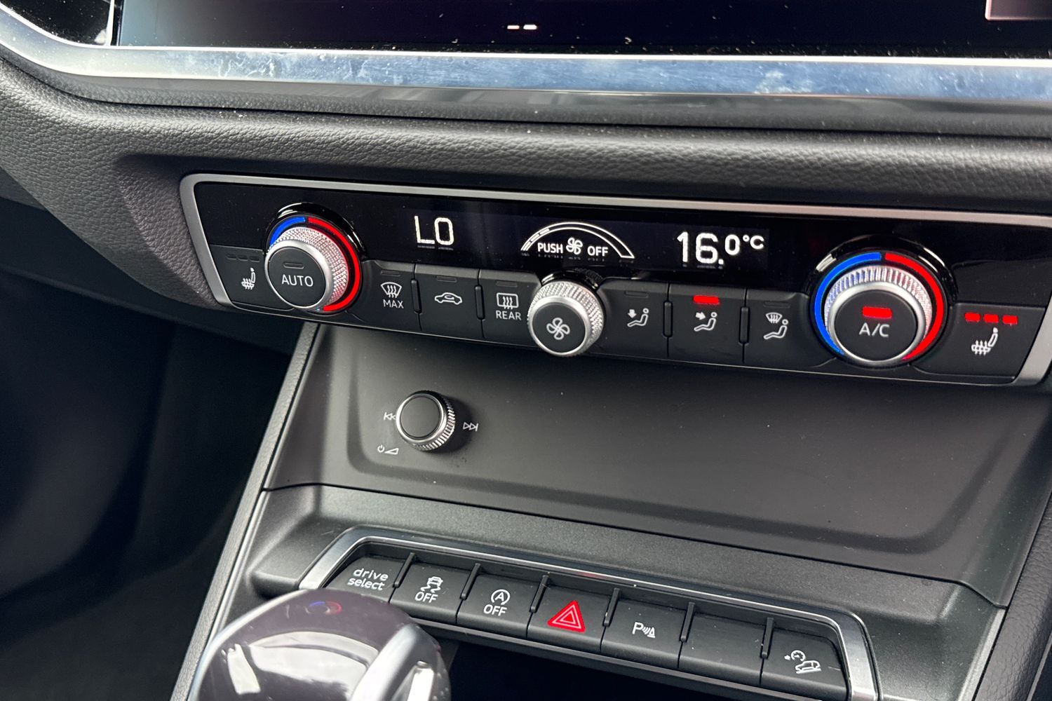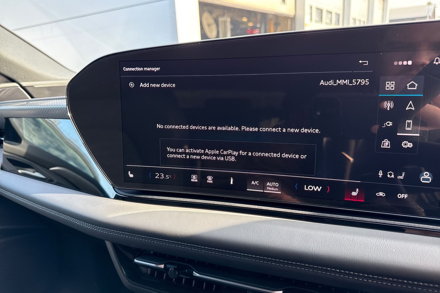 "Detail dashboard around MMI touch colour display in glass look, black with surround in aluminium look",