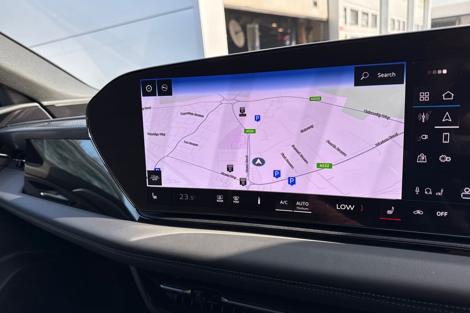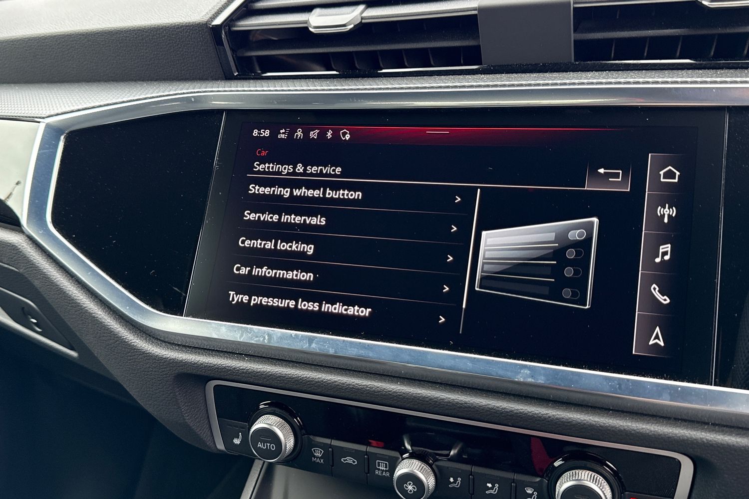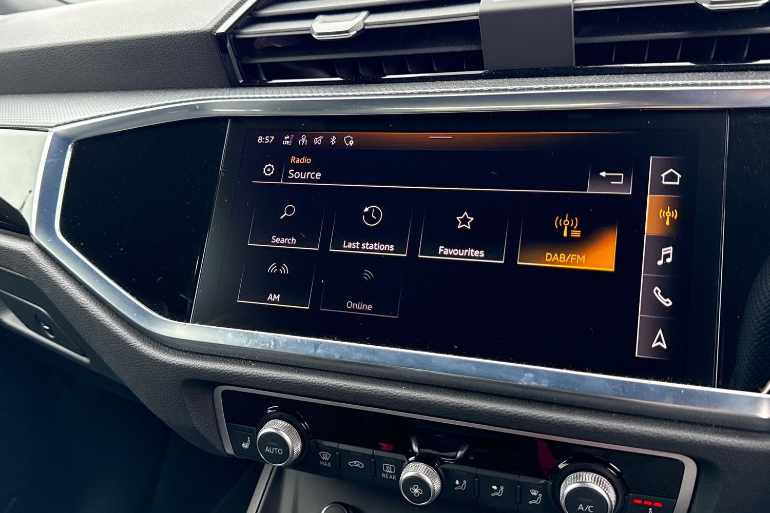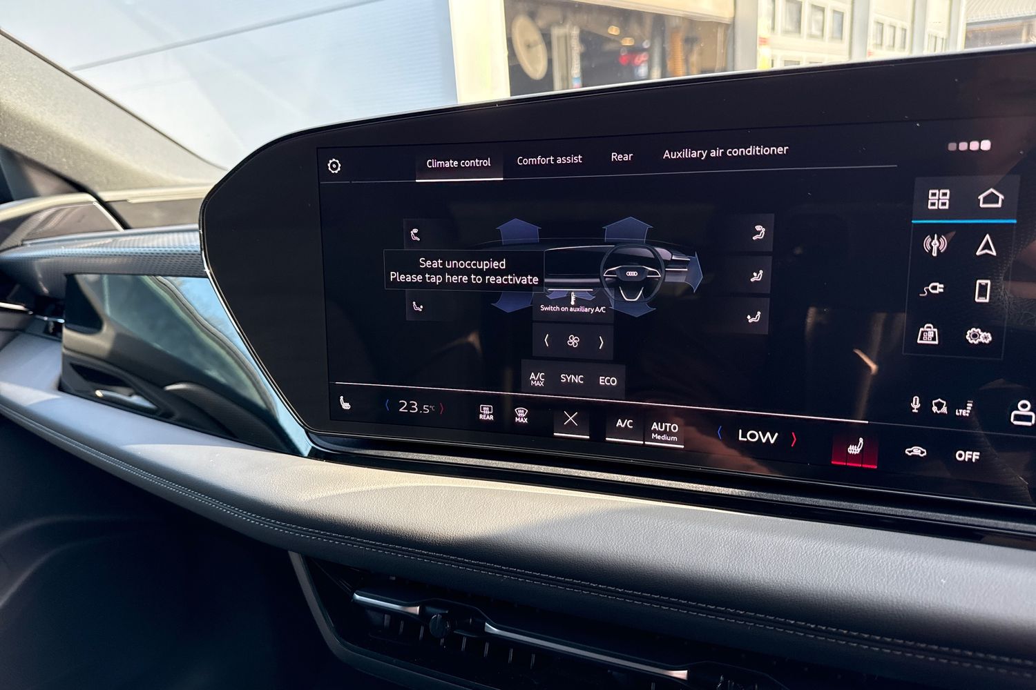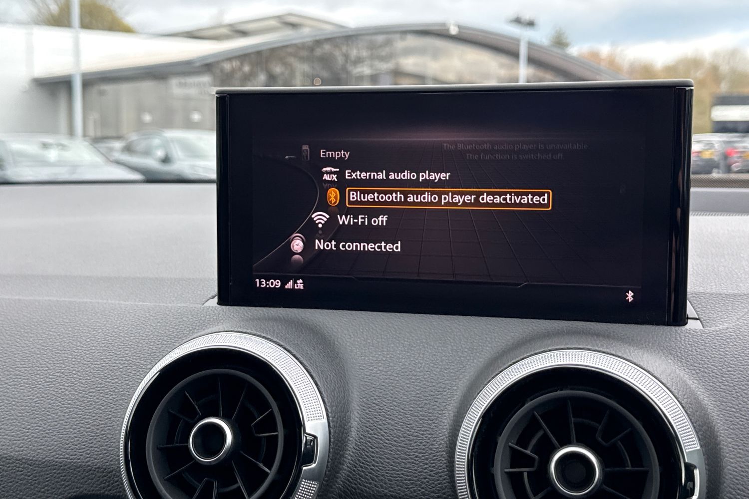 "Detail dashboard around MMI touch colour display in glass look, black with surround in aluminium look",