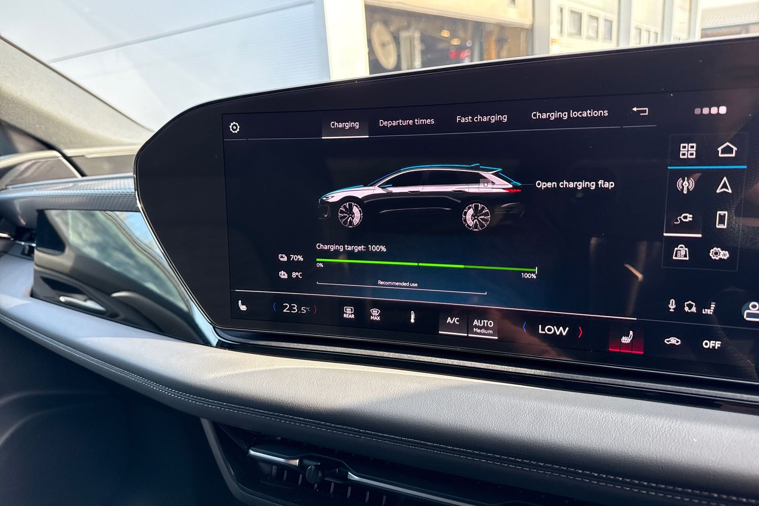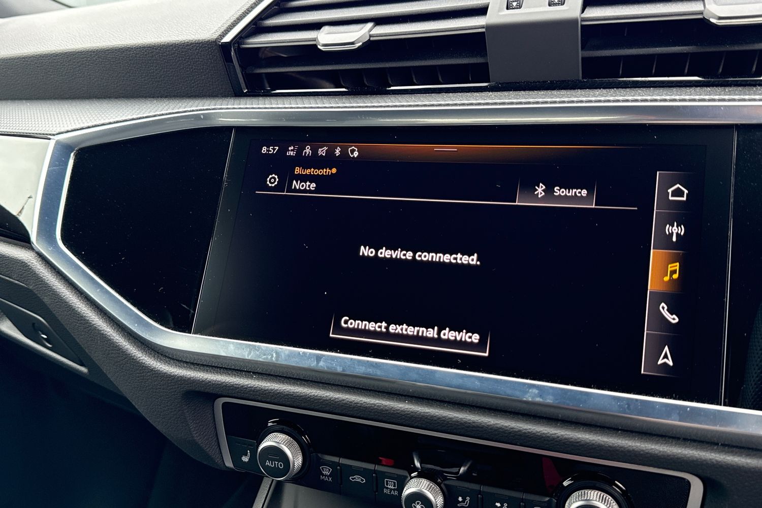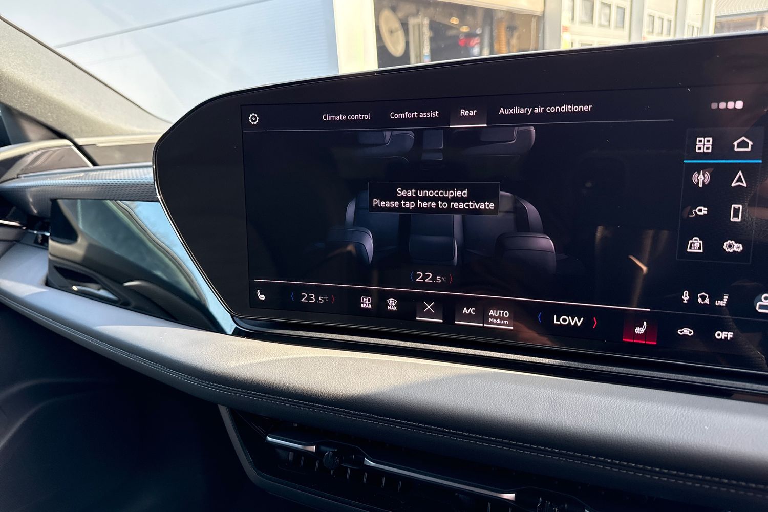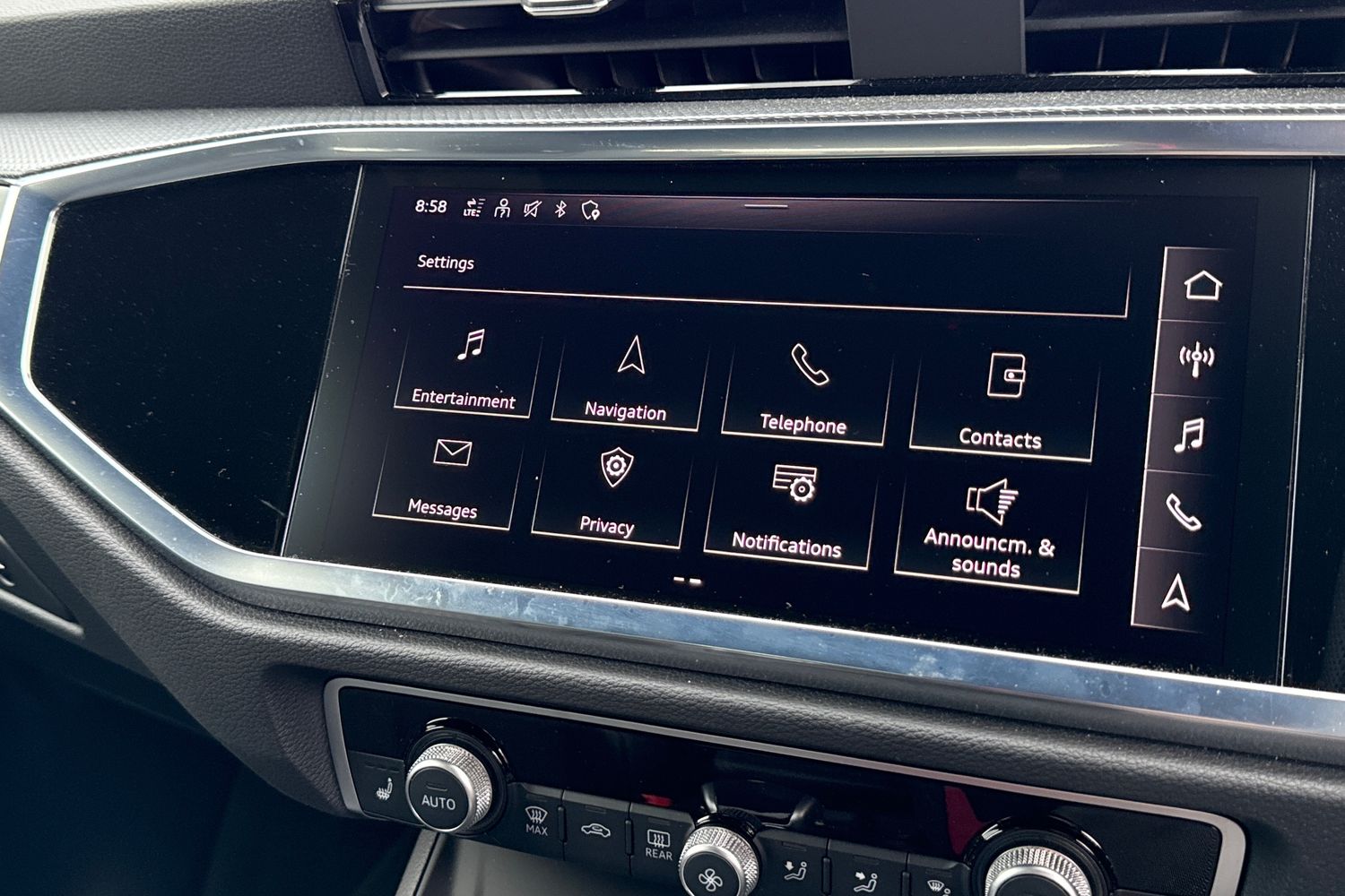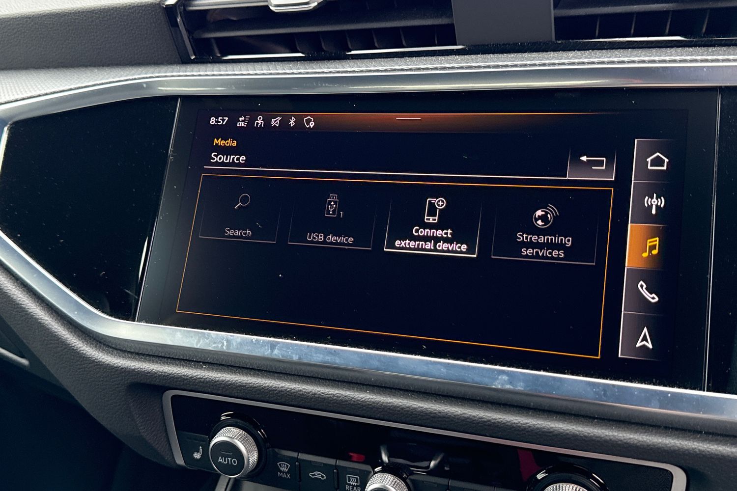 "Detail dashboard around MMI touch colour display in glass look, black with surround in aluminium look",