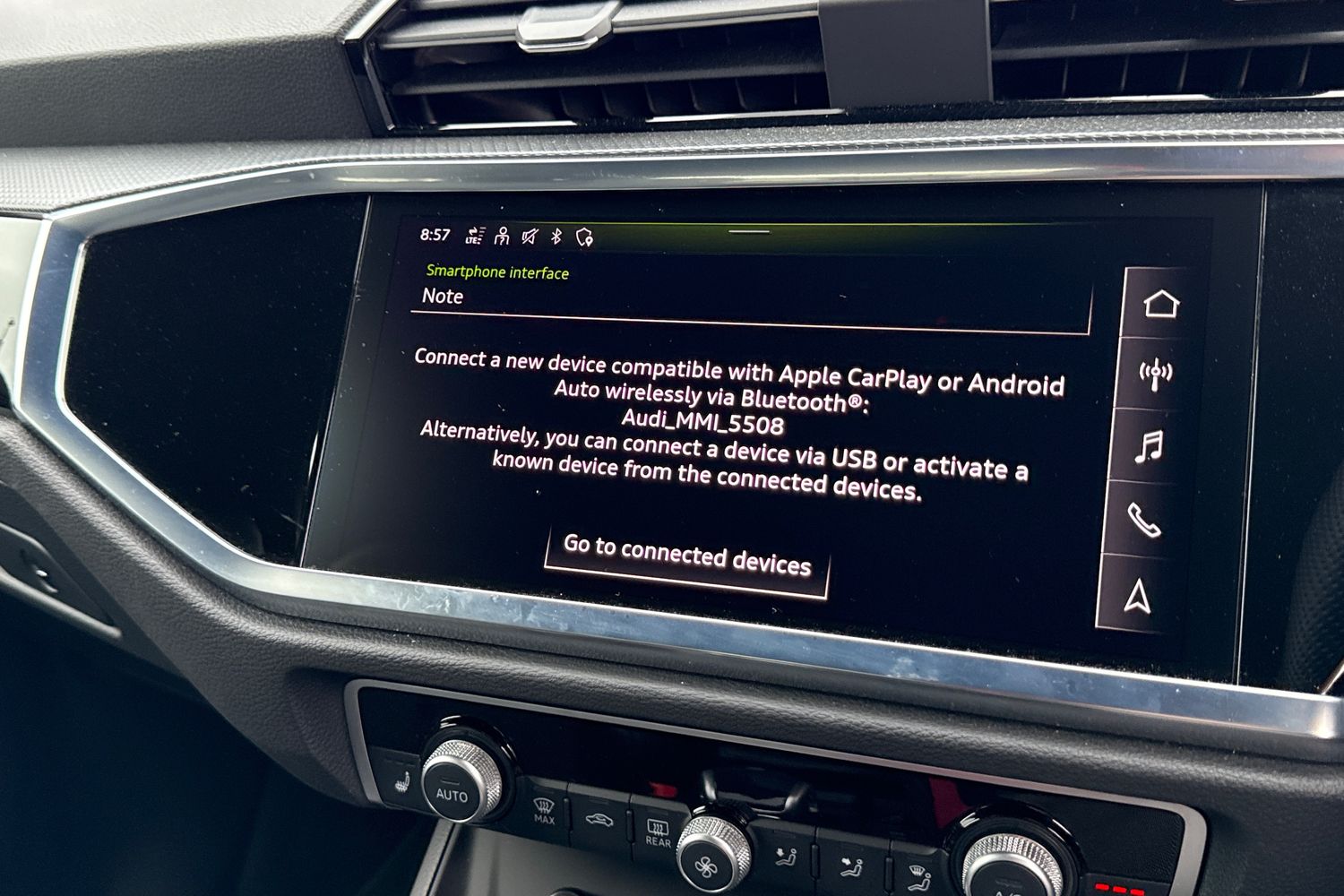 "Smartphone interface includes wireless Apple carplay/Android Auto",