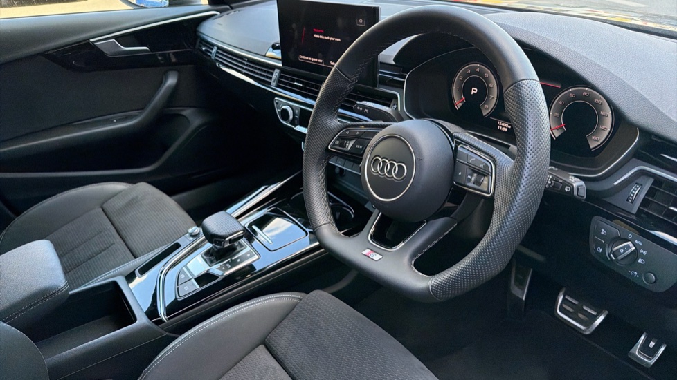 "features": "Audi connect safety and service (e-call), Audi connect with Amazon Alexa Integration, Audi drive select, Audi smartphone interface, Audi virtual cockpit, Automatic start-stop system with coasting functionality and efficiency programme, Bluetooth interface, Electromechanical power steering, Email, calendar and text messages displayed via MMI, MMI Navigation plus with MMI touch includes 10.1\" high resolution colour MMI display, 3D map, Power operated tailgate, Voice control system, 54 litre fuel tank, Sports suspension lowered by 23mm, 2 USB charging ports, 8 passive loudspeakers, DAB digital radio reception, Audi beam uses LEDs to project the audi logo onto the ground as you exit your A4, Auto dimming rear view mirror, Black Audi rings and black badging (model name in black badging, no engine badging), Body colour door handles, Body colour front spoiler lip, Body colour side sill trim, Electrically folding auto dimming/adjustable/heated door mirrors with LED side indicators and kerb view function for passenger side, Exhaust tailpipes in high dark chrome, Front and rear bumpers with side skirts, Grained matt black side air inlets with matt aluminium silver inlay, High beam assistant, High gloss black B pillar trims and triangular rear door trim, LED headlights with LED rear lights + dynamic rear indicators + headlight adjustment and high beam, turning light + LED daytime running lights, LED third brake light, Privacy glass, Rain and light sensors, Rear diffuser in matt black with trim strip in matt aluminium silver, Rear side wing doors, Rear wiper, RS4 rear spoiler in body colour, S Line badges on the front wings, S Line roof edge spoiler, Variable intermittent front wash/wipe, Windscreen with acoustic glazing, 4 way electric lumbar support for driver and front passenger, 40/20/40 split folding 3 rear seat bench in 3 parts with rear centre armrest, Black cloth headlining, Black perforated leather gearknob, Contrast stitching on seats, steering wheel and gear lever gaiter, Deluxe 3 zone electronic climate control, Door sill trims with aluminium inlay, Electric load area cover, Front and rear head restraints, Front centre armrest, Heated front seats, Illuminated door sill trims with S logo, ISOFIX child seat mounting and top tether, Manual seat adjustment, Single front passenger seat, Stainless steel pedals and foot rest, Black styling pack - A4 Avant, LED Interior light pack - A4/S4, 3 rear seatbelts, 6 airbags - Driver, front passenger, curtain and side windows, Electronic Stabilisation Control (ESC) including ABS, ASR and EDL, Hill hold assist, Multi collision brake assist, Pop-up bonnet for pedestrian protection, Pre sense city, Rear door child safety locks, Seatbelt monitoring, Warning triangle and first aid kit, Anti theft alarm, Anti theft wheel bolts, Central locking, Keyless Go, Piano black finish inlay, 19\" 5 arm flag design Audi sport diamond cut alloy wheels in gloss anthracite black, Tool kit, Tyre repair kit, ",
