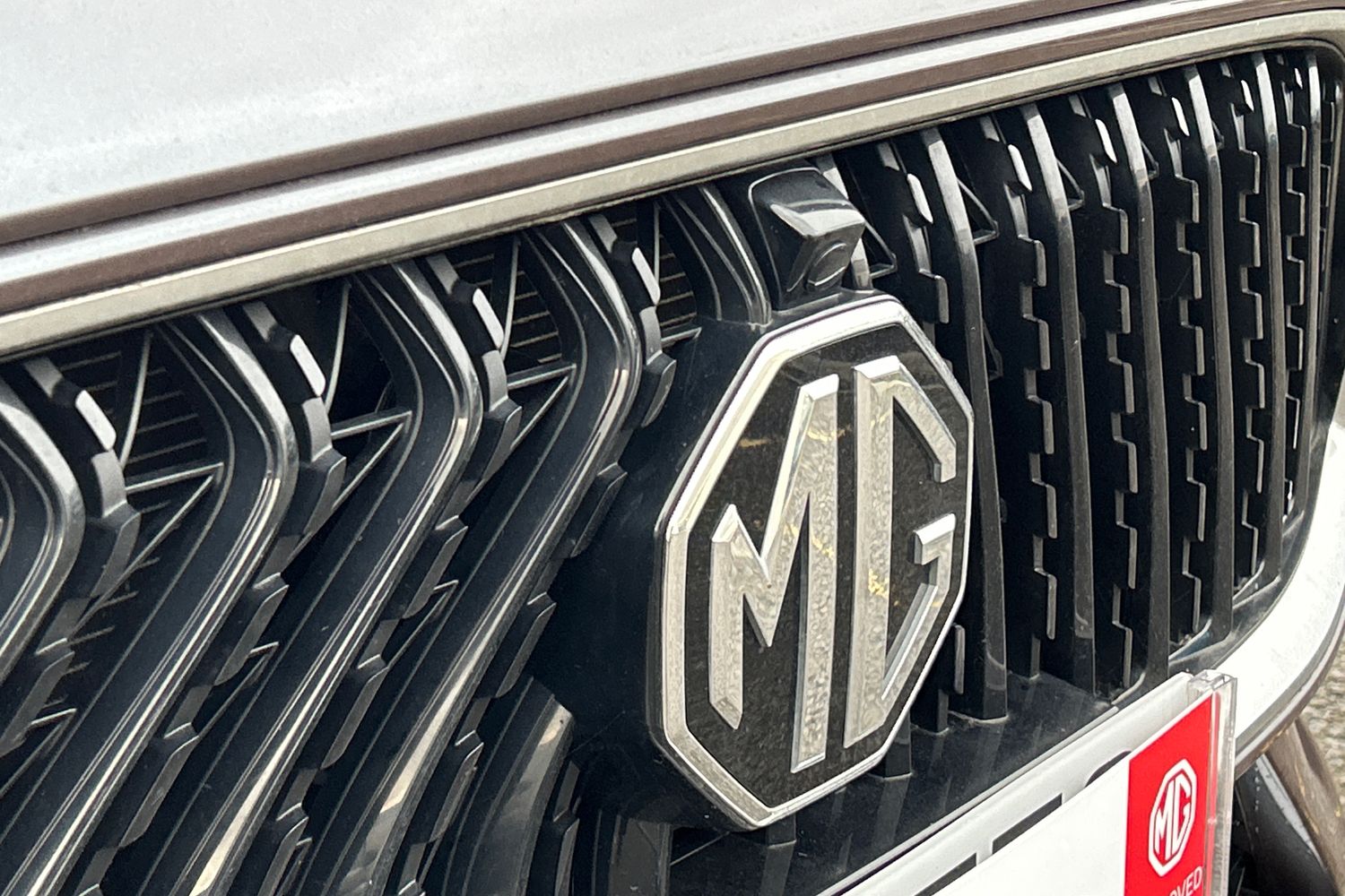 "Chrome kidney grille with aluminium vertical slats",