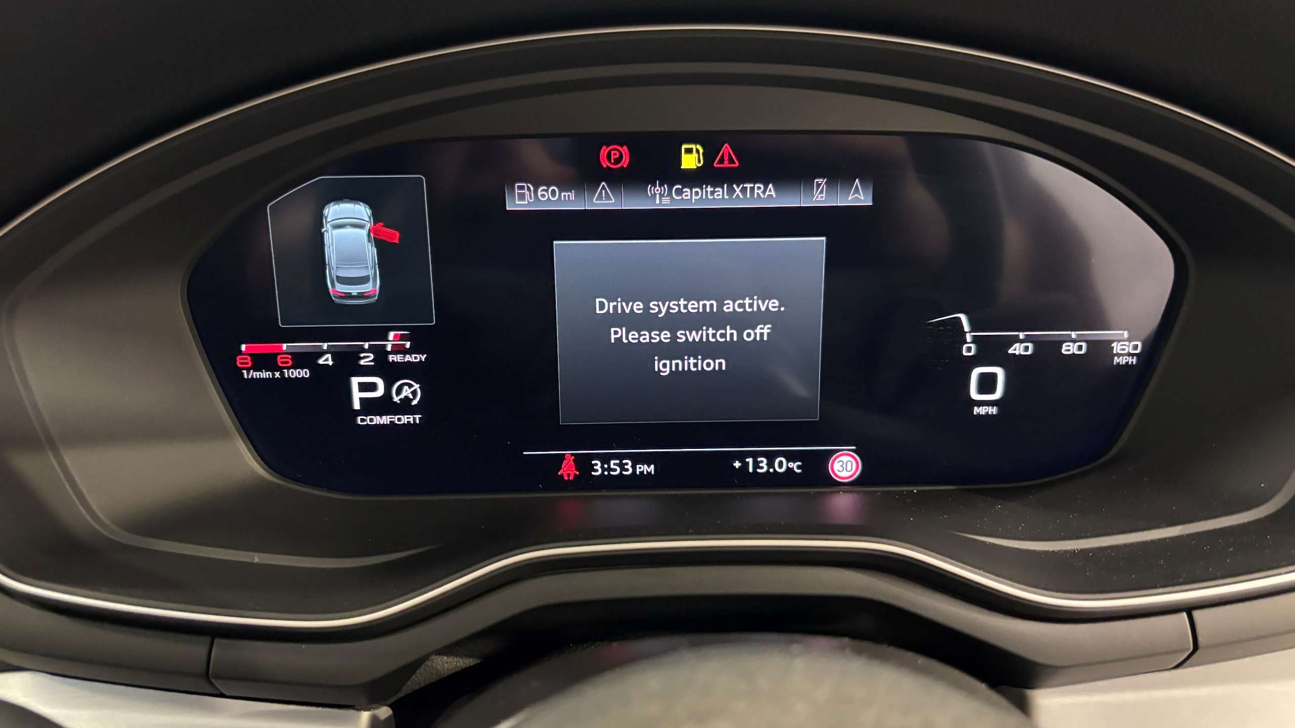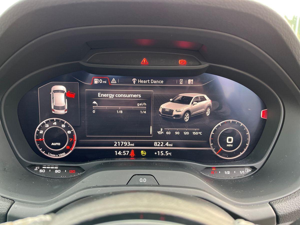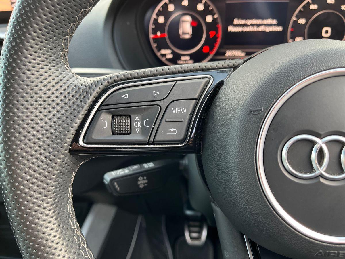 "features": "10.25\" Digital instrument cluster display screen, Audi connect safety emergency and service including E-call, Audi drive select, Audi smartphone interface, Automatic start/stop system, Bluetooth interface, Driver's information system, Electromechanical power steering, Lane departure warning system, Service interval indicator, Speed limiter, Voice control system, Washer fluid level indicator, Dynamic suspension, 1 x SDXC card reader, 1 x USB type C and 1 USB type A charging points, Audi music interface, Bluetooth audio streaming, DAB Digital radio, MMI radio plus with 8.8\" colour MMI display screen and MMI touch, Adaptive brake lights, Auto dimming rear view mirror, Body coloured bumpers, Body coloured door mirrors, Electric front and rear windows, Front side air inlets in grained matt black and C frame in titanium black, Heat insulating glass windscreen and side windows, Heated rear windscreen, LED headlights with LED rear lights + dynamic rear indicators, Radiator grille in matt titanium black, Radiator protective grille frame in matt aluminium silver, Rain and light sensors, Rear fog lights, Rear wiper, Side front spoiler lips in grained matt black, Titanium black matt diffuser, 12V socket in centre console with two cup holders, 3 rear seats, Door sills trims with aluminium inlays, Driver and passenger seat with manual height adjust with forward and backwards adjustment, Front head restraints, Front/rear floor mats, Height and reach adjustable steering wheel, Illuminated glovebox, ISOFIX child seat mounting in front passenger and rear outer seats, Leather gear knob with aluminium trim, Leatherette handbrake grip, Luggage compartment light with front and rear reading lights, Lumbar adjustment for front seats, Novum cloth upholstery with front sport seats, Rear head restraints, Split folding rear seats, Titanium grey cloth headlining, 3x3 point rear seatbelts, Audi pre-sense front with pedestrain and cyclist recognition, Brake assist function, Driver and front passenger airbag with front side and head airbags, Electronic Stability Control including ABS, EBD, ASR and EDL, Front and rear seatbelt reminder, Front passenger airbag deactivation switch, Hill hold assist, Seatbelt height adjustment for front seats, Seatbelt monitoring, Tyre pressure warning light, Warning triangle and first aid kit, Anti theft alarm, Anti theft wheel bolts and loose wheel warning, Immobiliser, Remote central locking with 2 remote folding keys, Aluminium trim for control switches, air vents and digital instrument cluster, Silver grey accent areas including air vents, door handle recesses and centre console in diamond paint finish, Slate grey inlays polygon structure in fine paint finish, ",