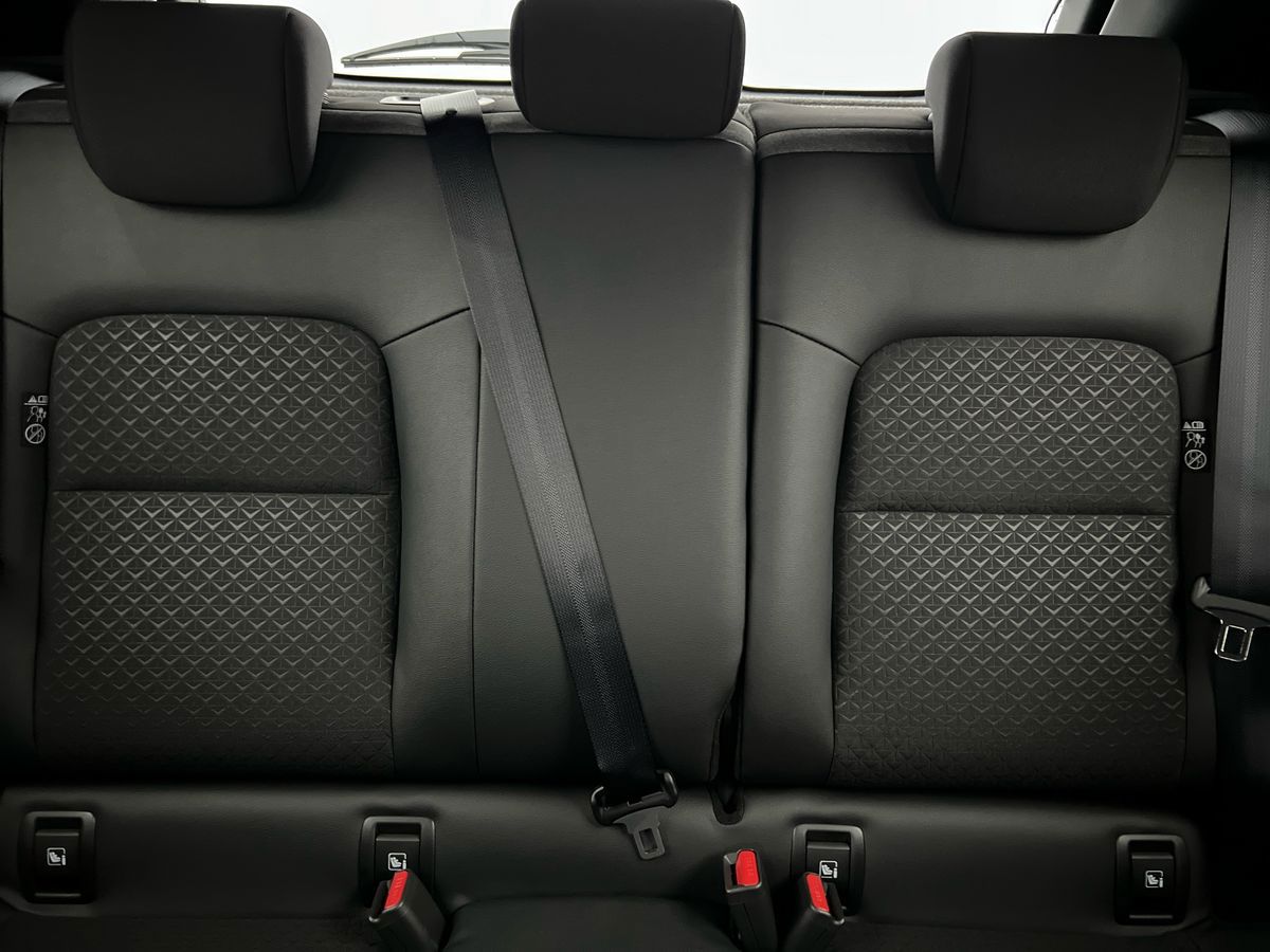 "3 rear head restraints and 3 rear three point seat belts with ECE label",