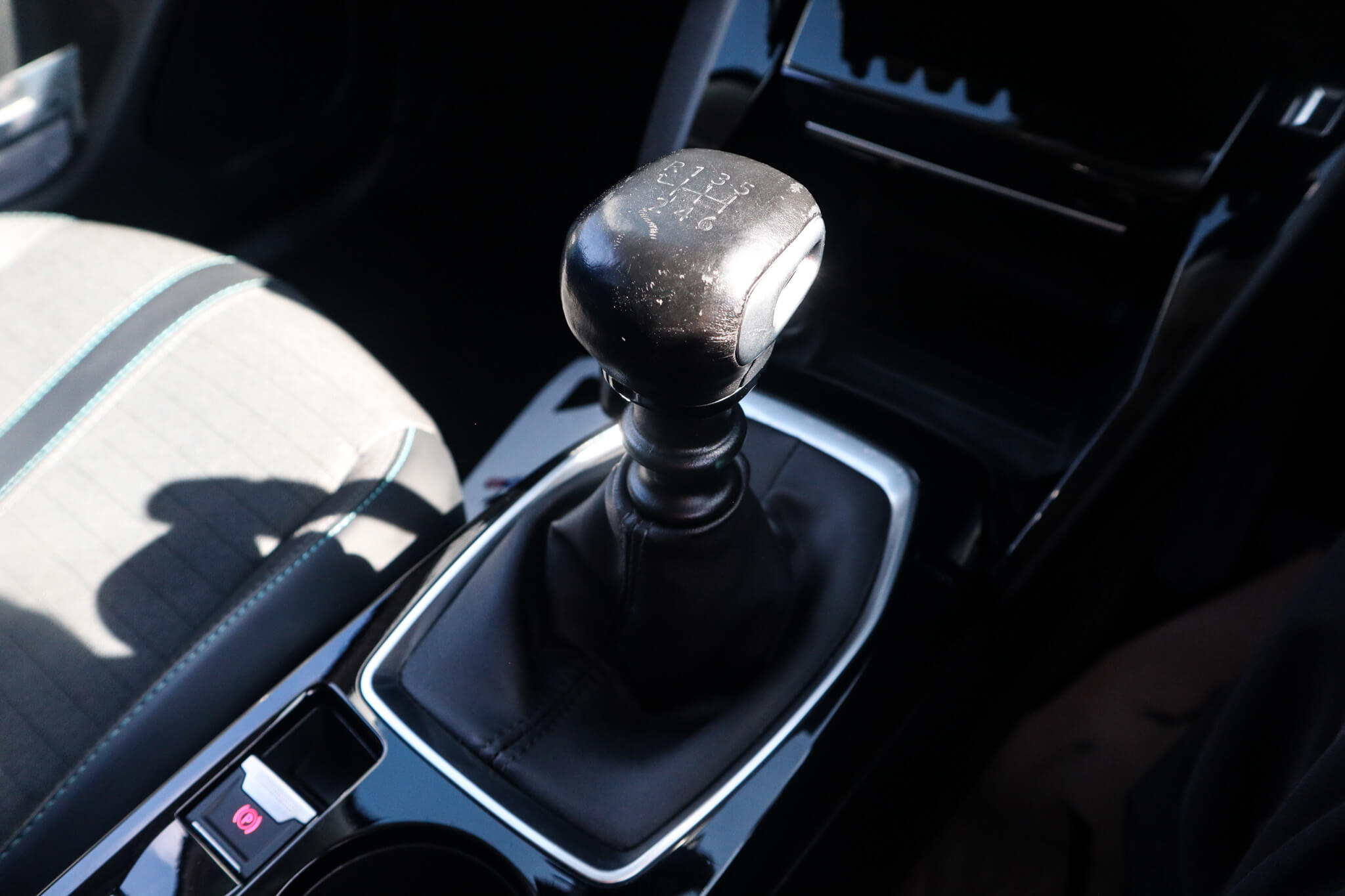 "Black gear shift console",