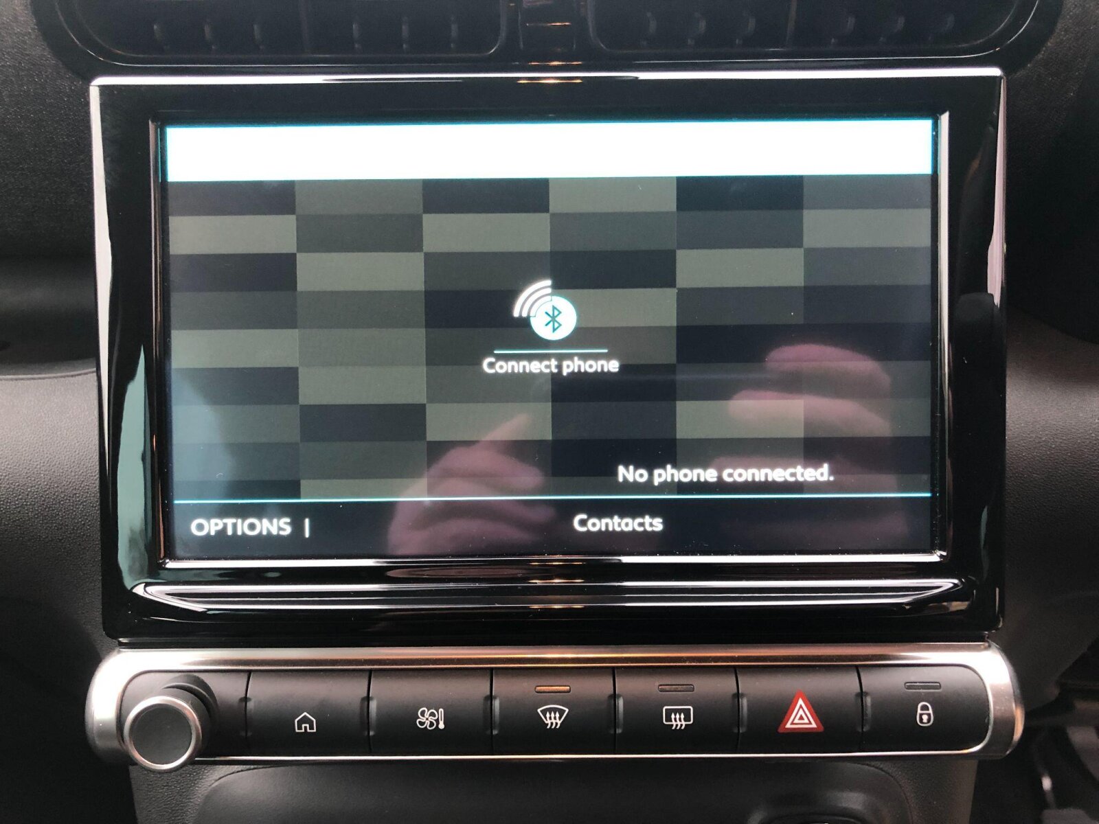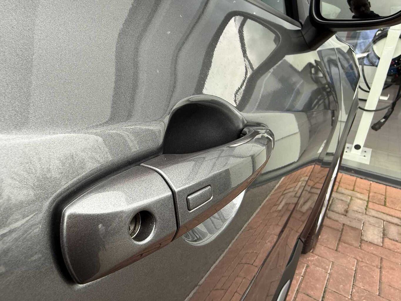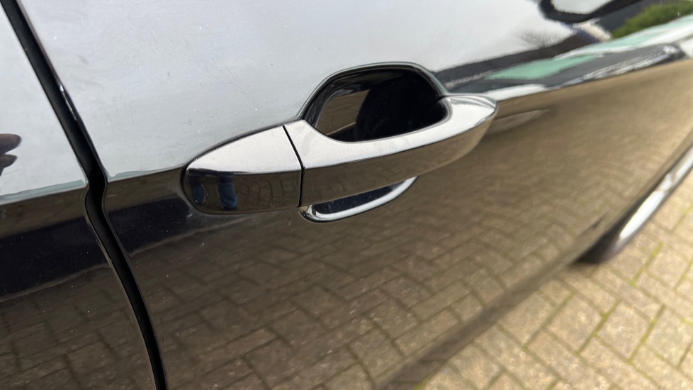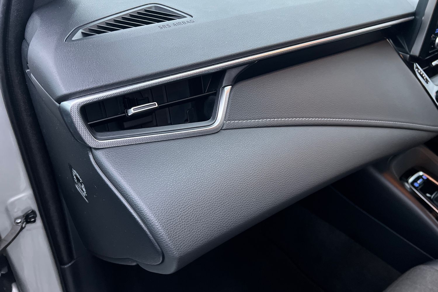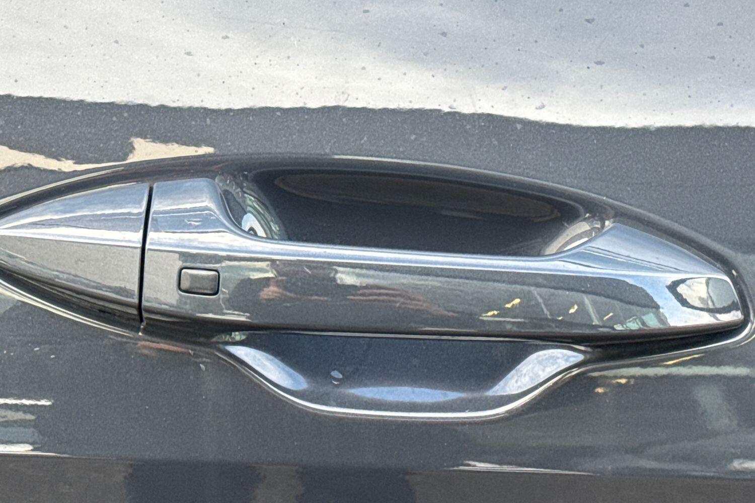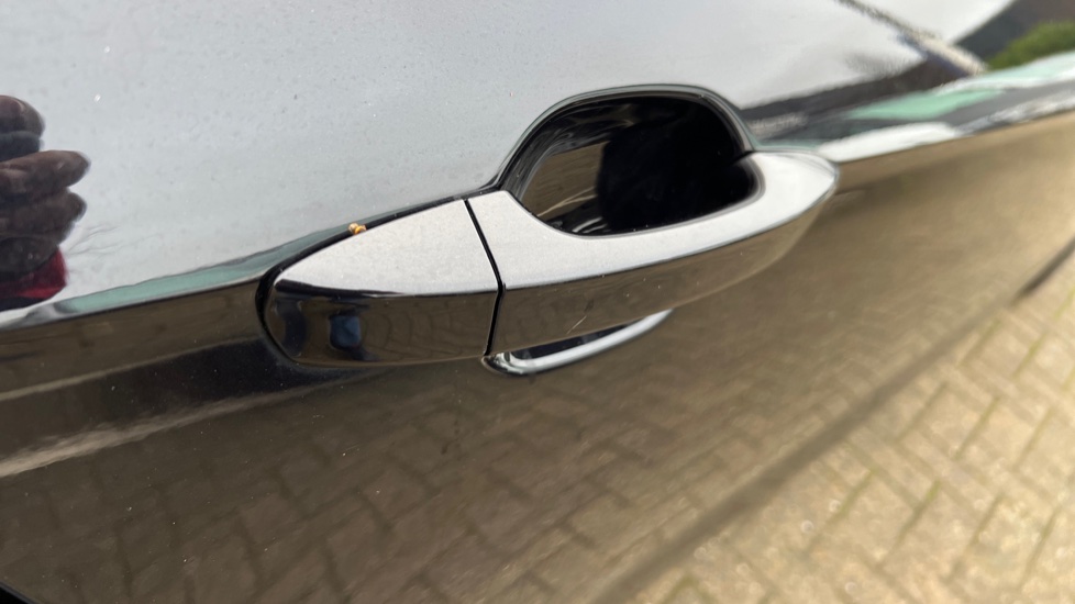 "Glove box handle with chrome surround",