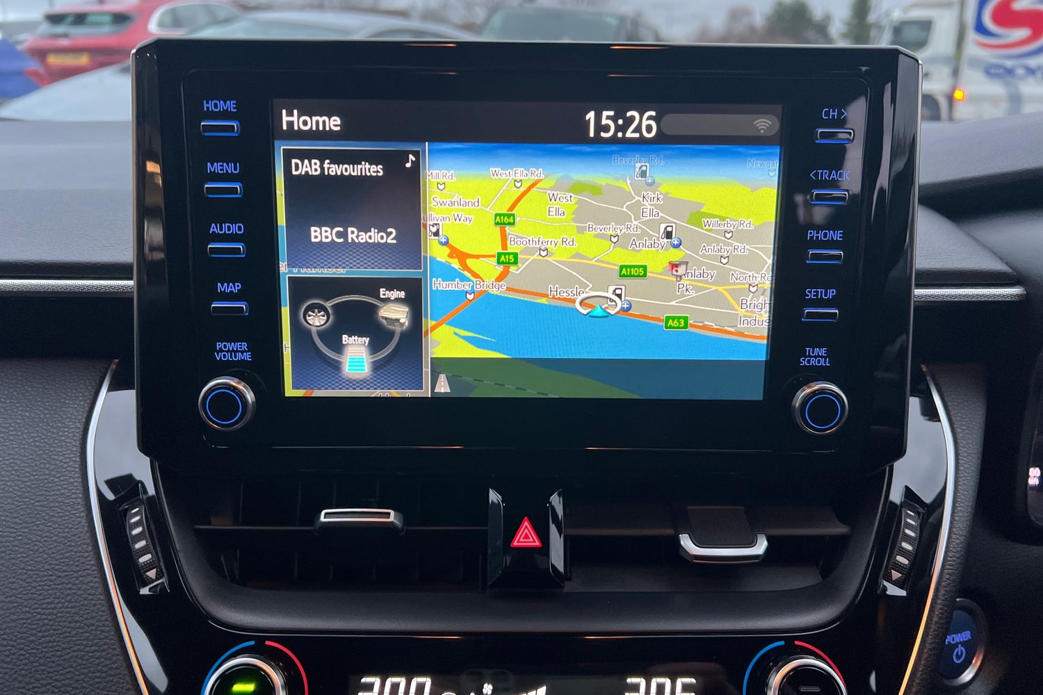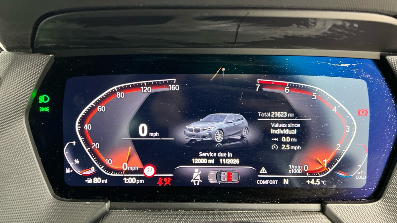 "On board computer - average speed+fuel consumption, service interval, clock/date, odometer/trip meter, outside temperature display and ice warning",