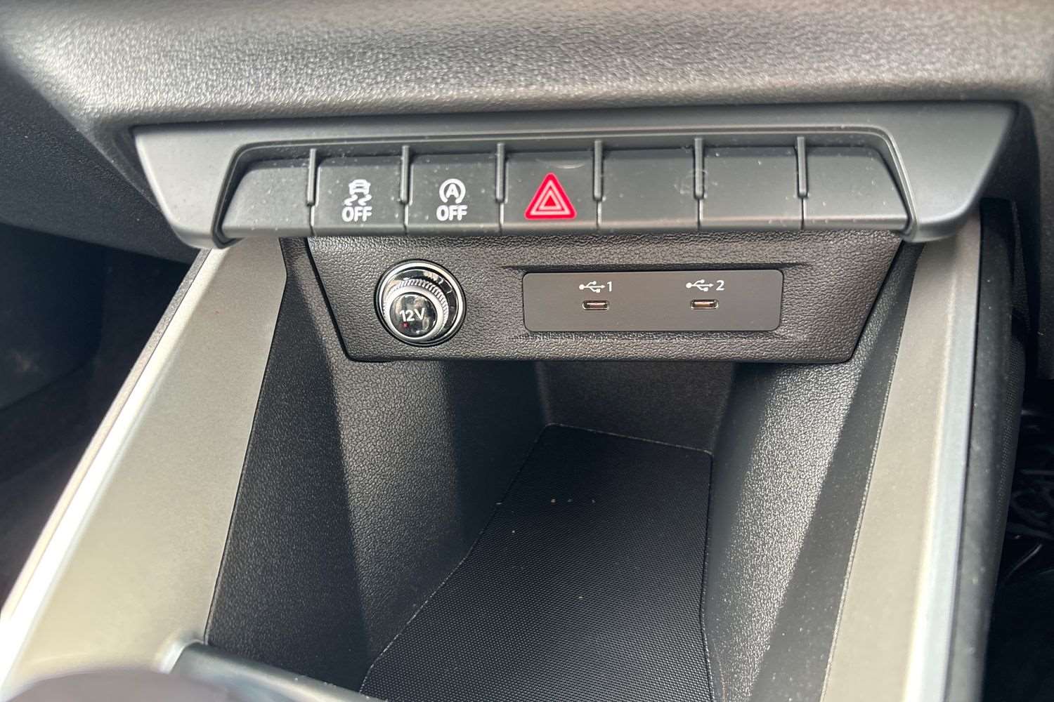 "USB with 12V socket in centre console"