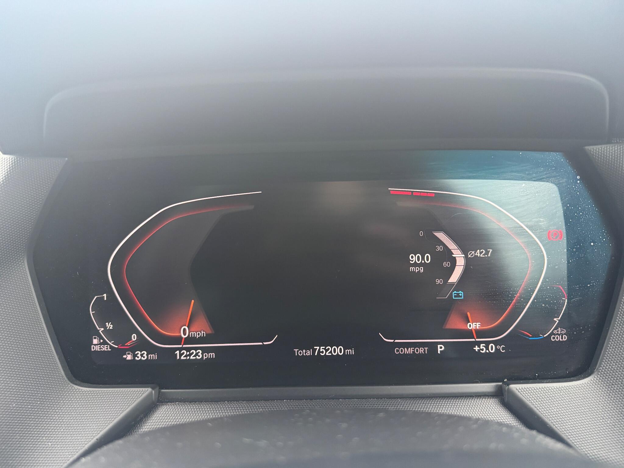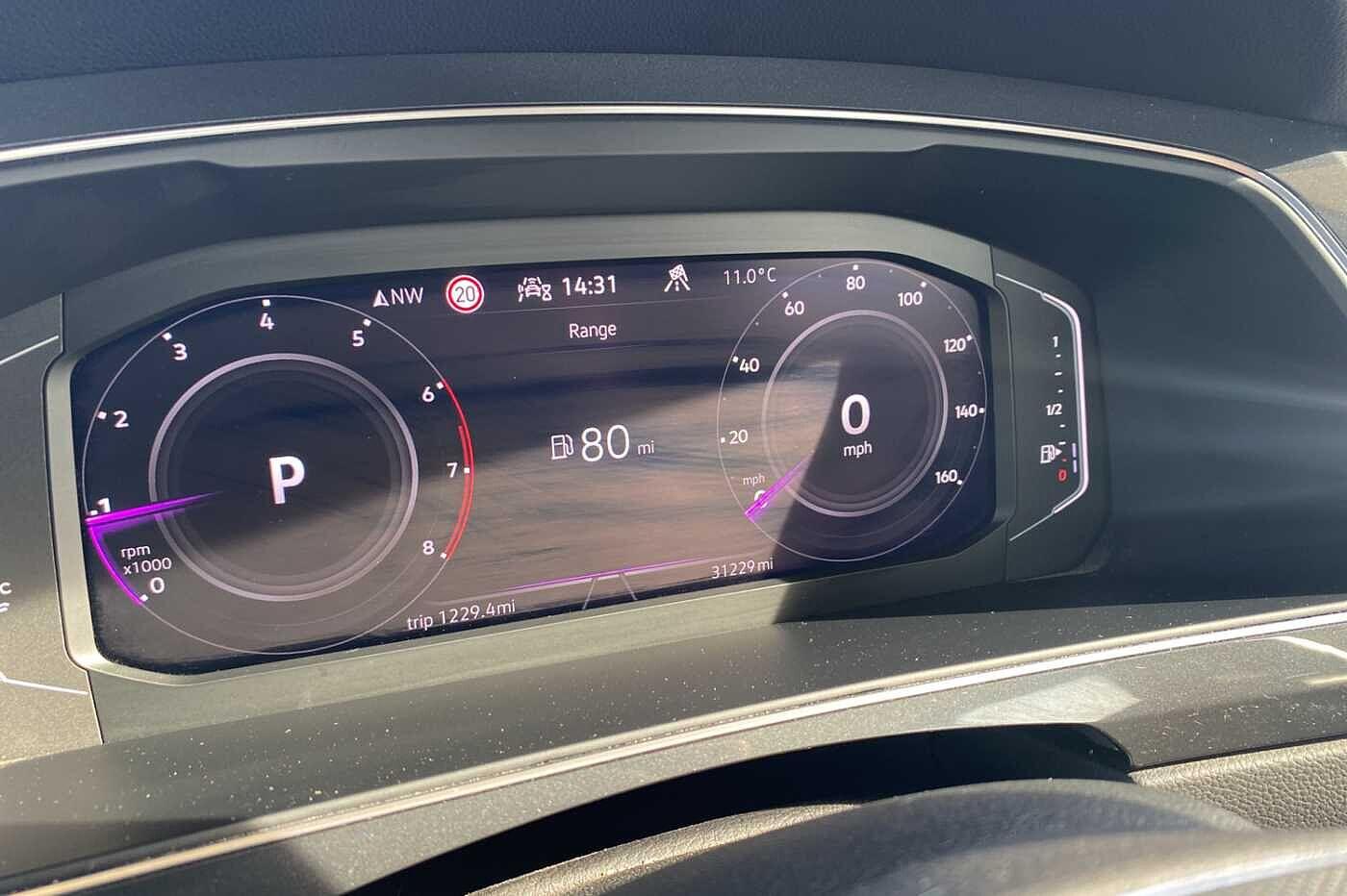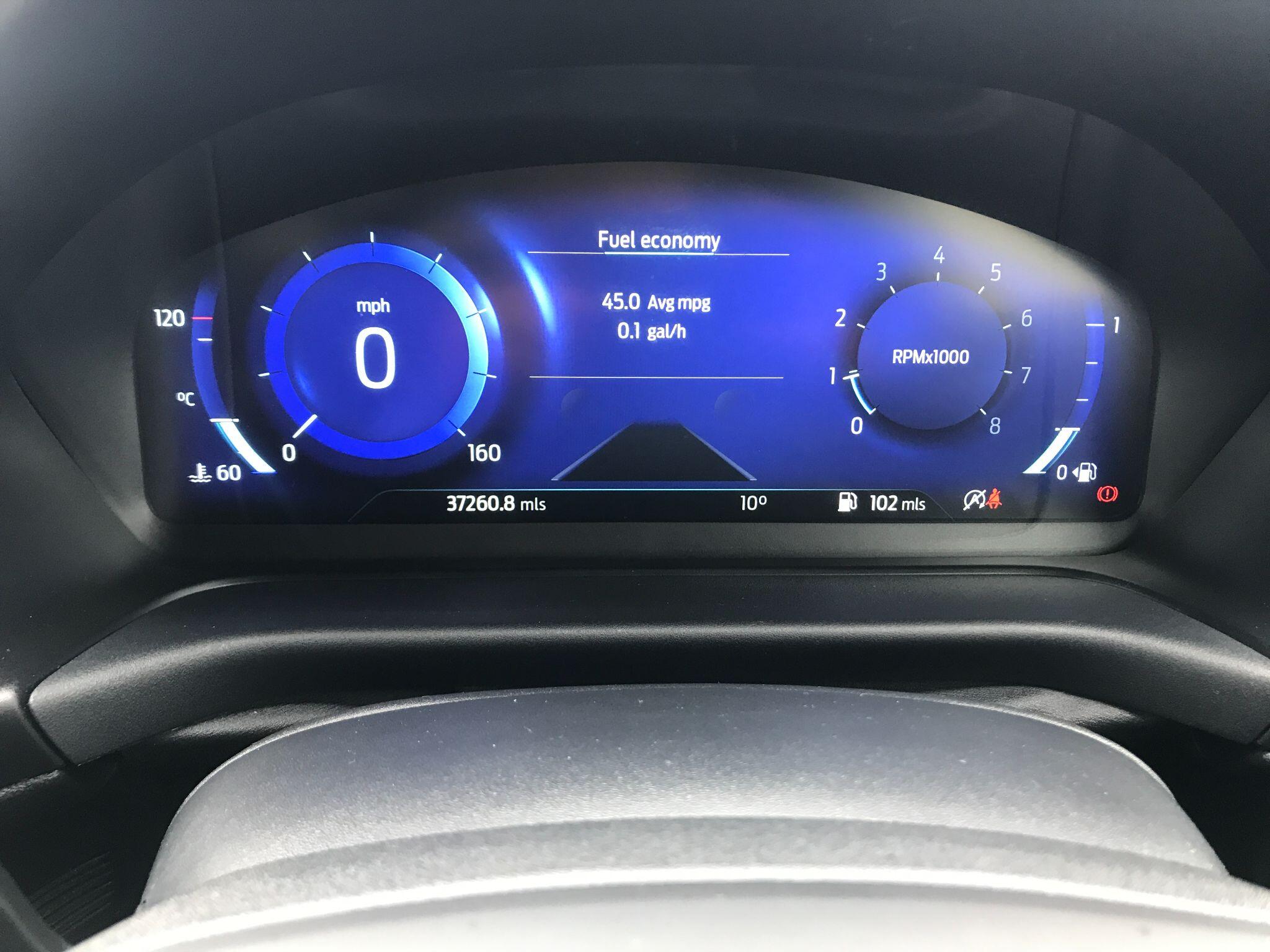 "Speedo, rev counter, electronic odometer, trip, service interval display, exterior temperature and fuel gauge",