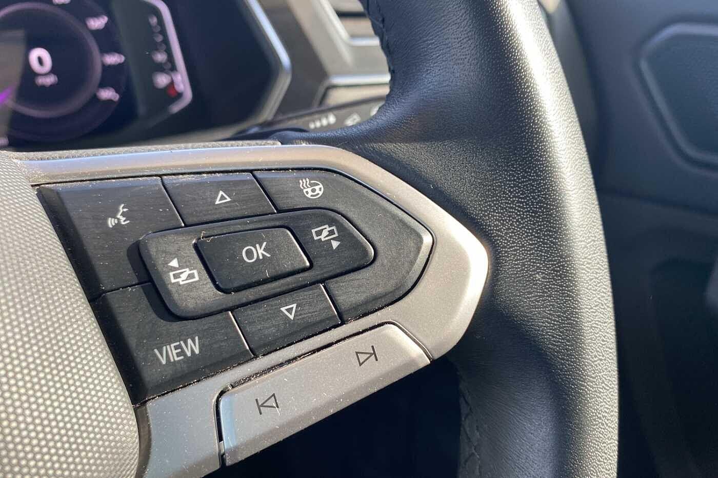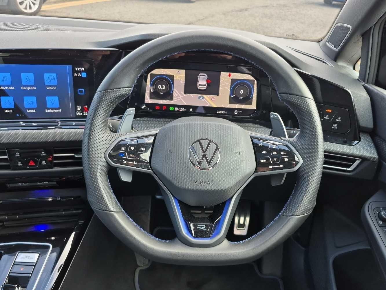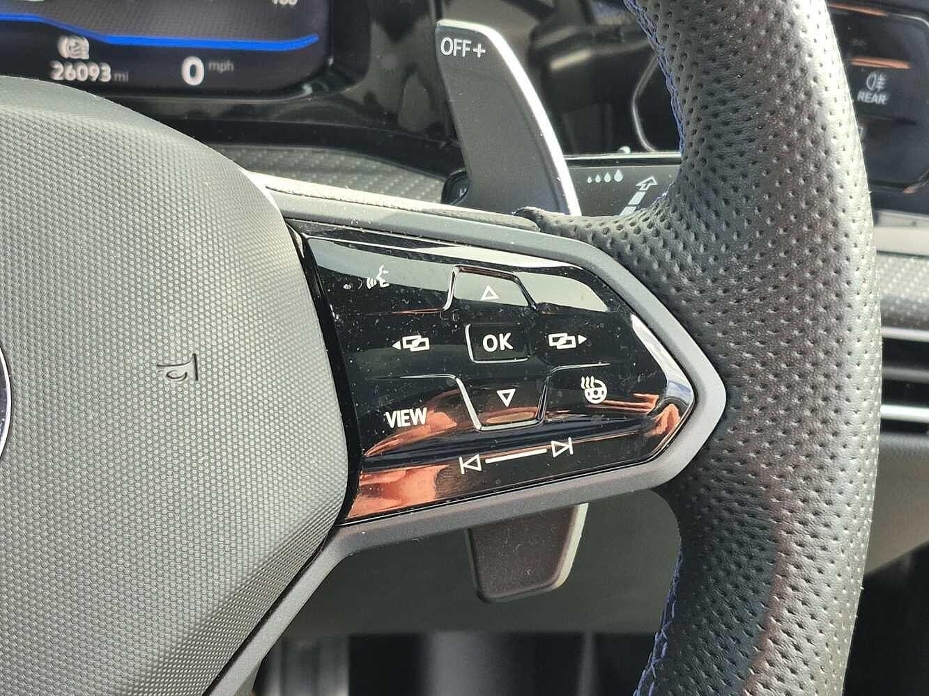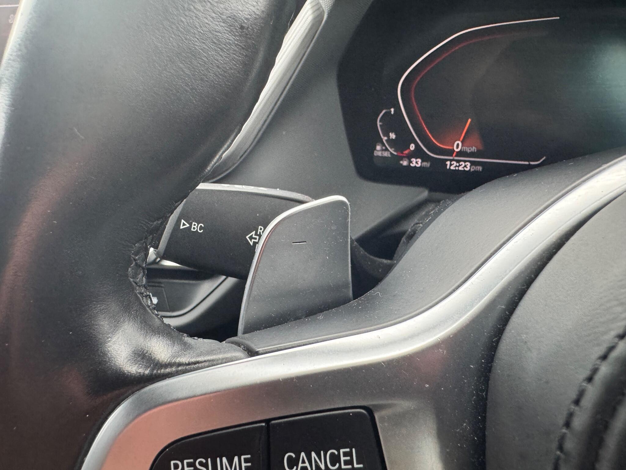 "R leather wrapped multi function sports heated steering wheel with extended paddle shift",