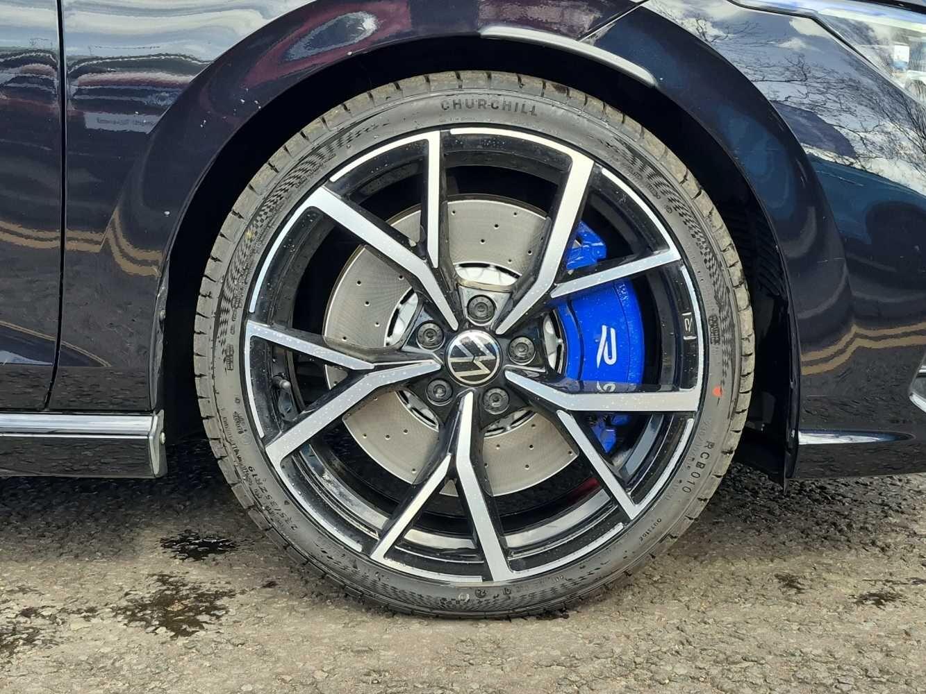 "Blue brake callipers in front with R logo",
