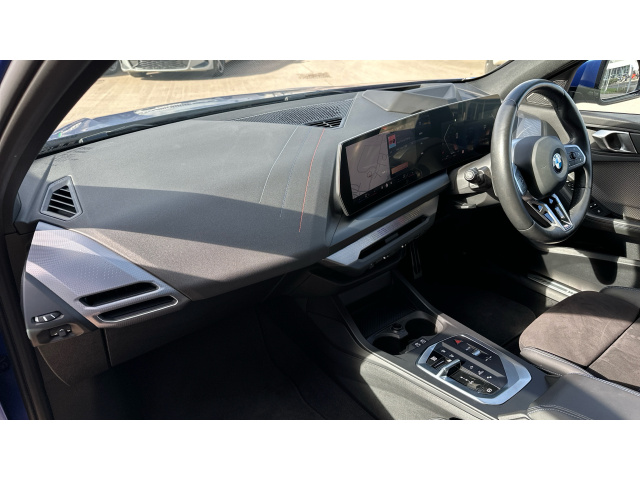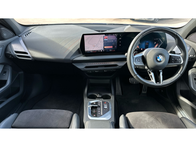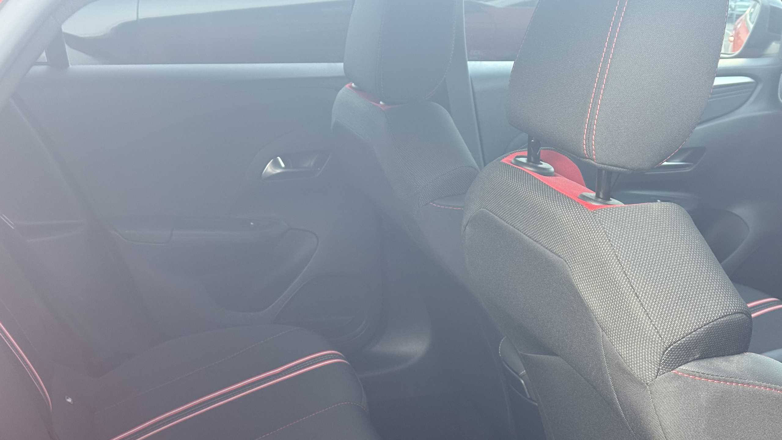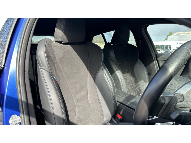 "Fabric/leather upholstery with jet black fabric side bolsters",