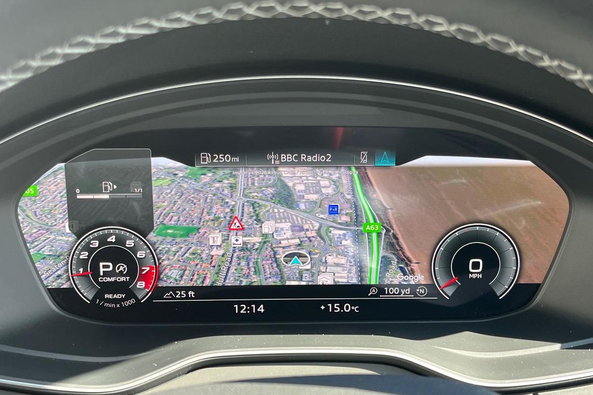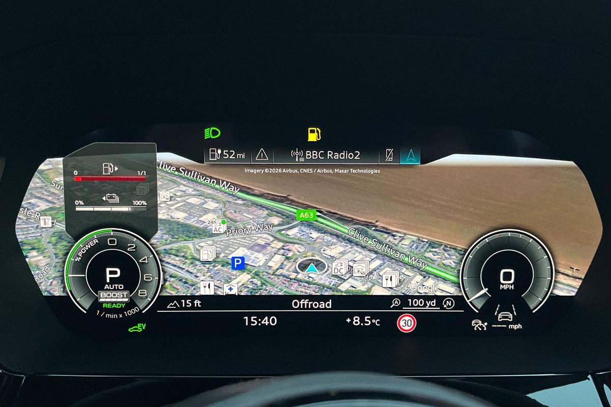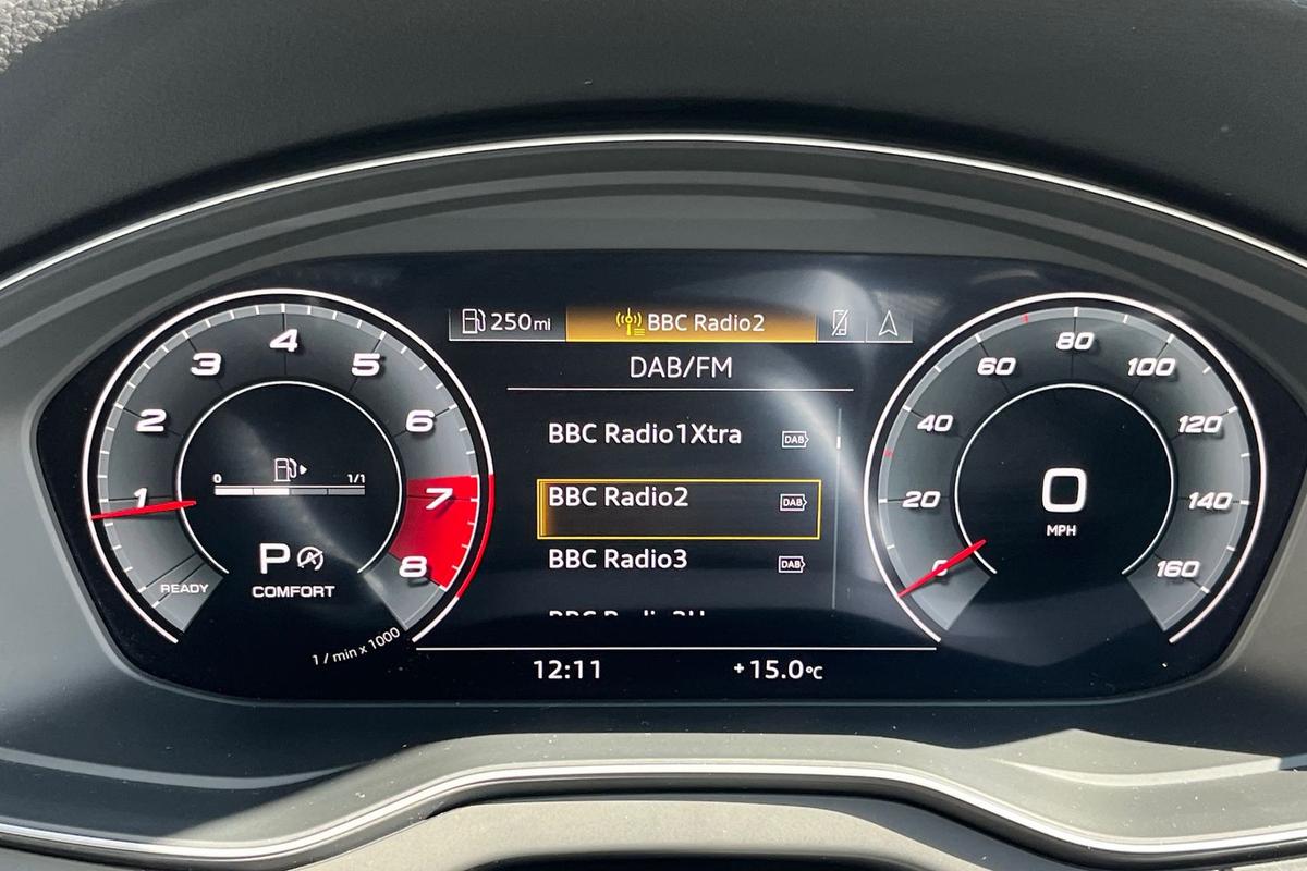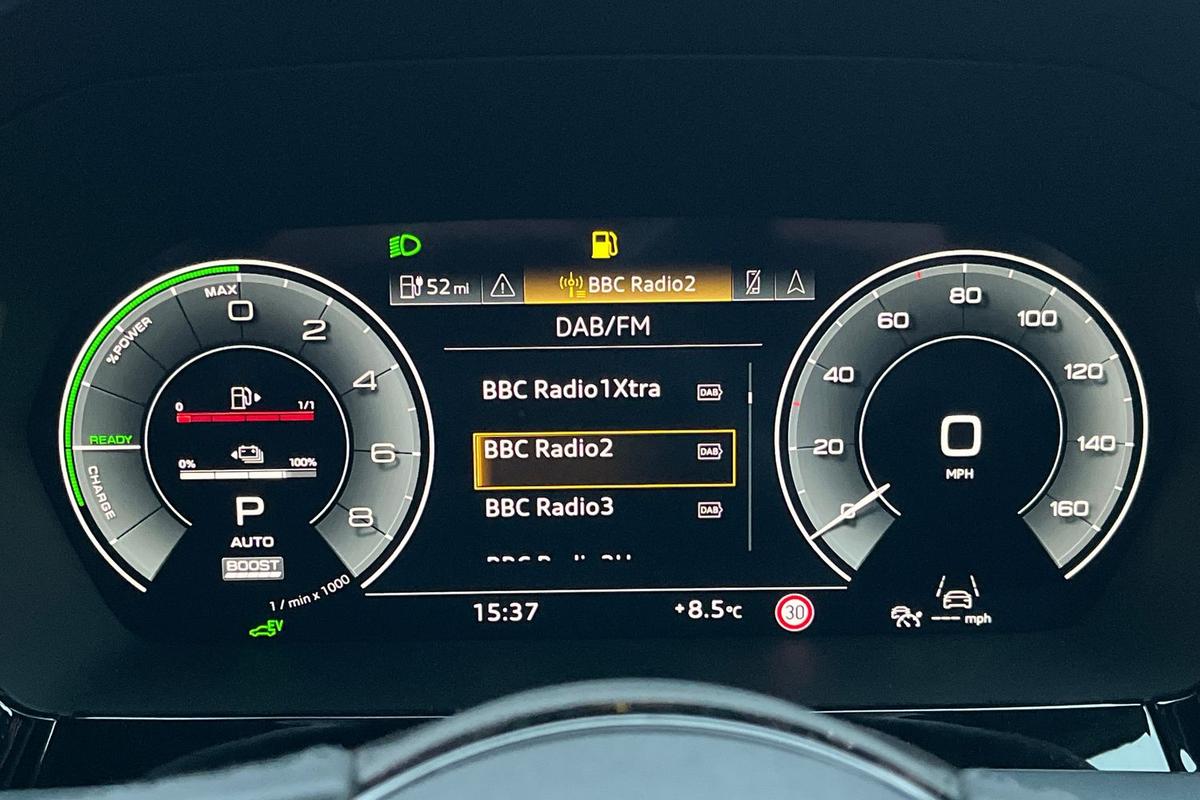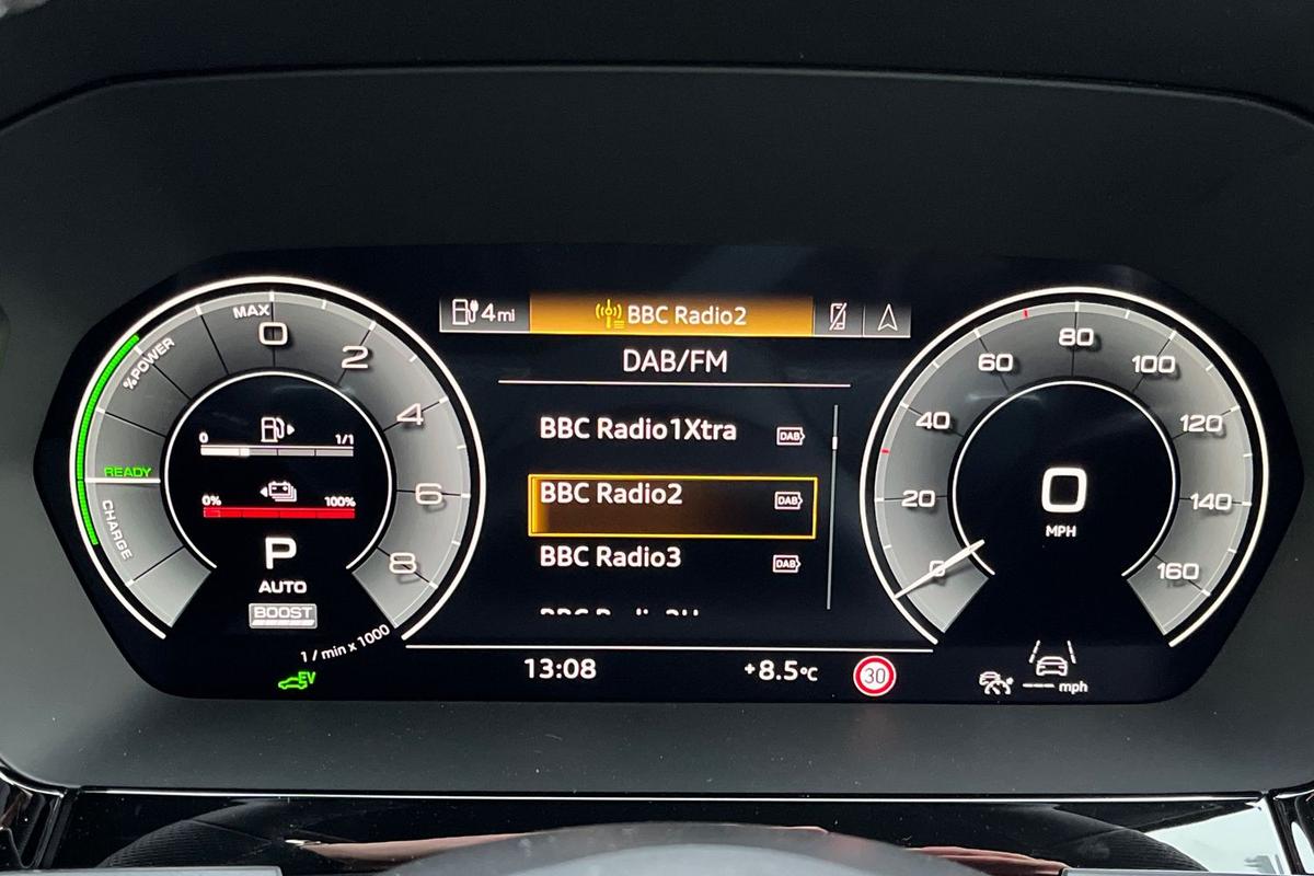 "Audi virtual cockpit plus with 12.3\" screen and three different layout designs",