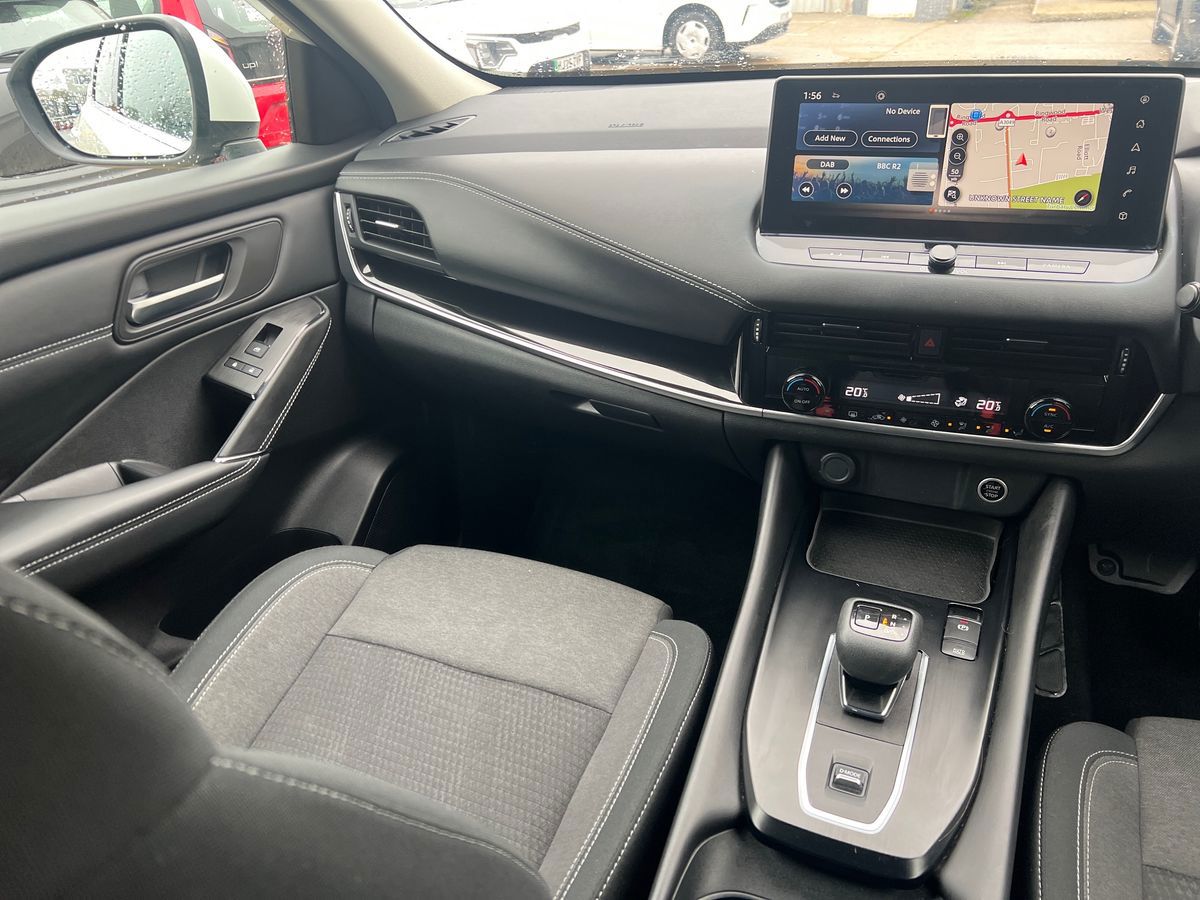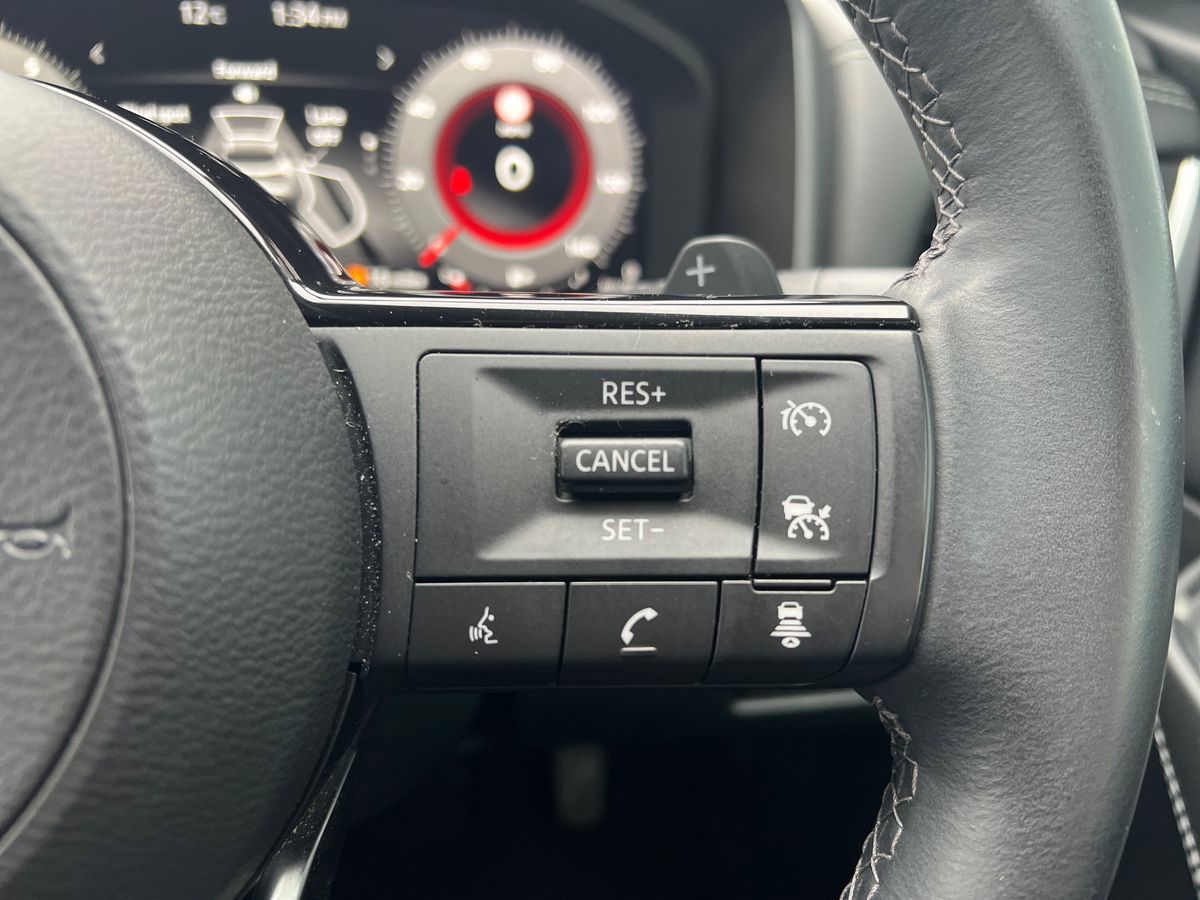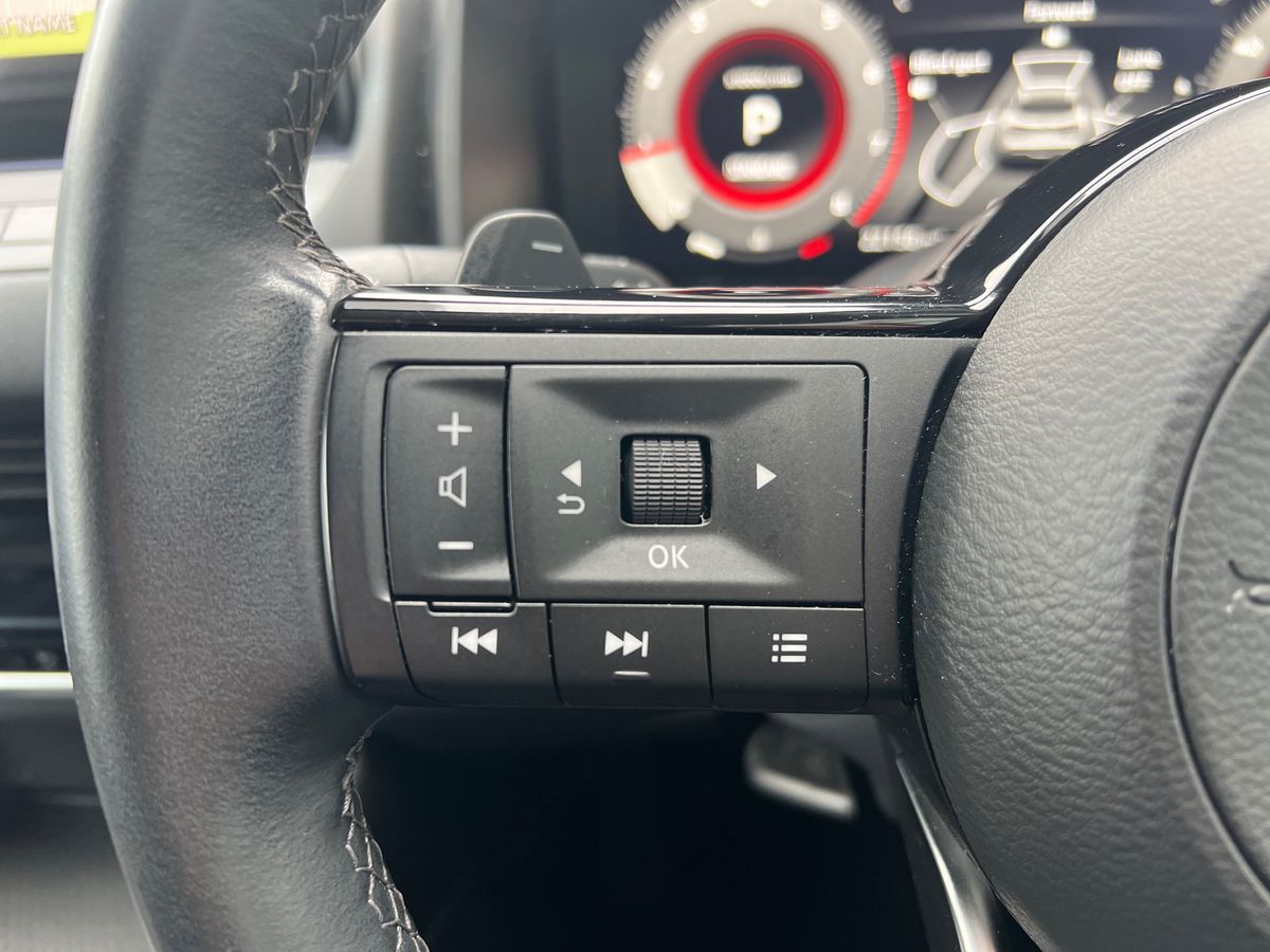 "features": "Android auto/Apple CarPlay (Wired), Blind spot warning, Drive modes (sport, normal, eco), Electric speed sensitive power steering, Emergency and breakdown call, Full Digital 12.3\" TFT Digital Combimeter, Google maps services - search, weather, 3D maps and Google street view, Idle stop/start system, Intelligent around view monitor, Intelligent Cruise control (ICC), Intelligent driver alert system, Intelligent forward collision warning, Intelligent lane intervention, Lane departure prevention, Lane departure warning system, Maximum speed limiter, Moving object detection, Nissan connect 12.3 inch touchscreen infotainment system, Nissan connect navigation, Push button starter, Rear cross traffic alert, Rear parking sensors, Rear view camera, Remote control services - door locks, lights, horn and car locator, Telematics - notifications and connectivity services, TomTom live traffic services, Traffic sign recognition with legal speed adjustment, Trip computer, Virtual personal assistant and firmware over the air capability, Wireless apple carplay, 6 speakers, AM/FM audio system with DAB, Bluetooth audio streaming, Front USB connections (Type-A and Type-C), Rear USB charging only ports (Type-A and Type-C), Auto dimming rear view mirror, Auto rear wiper when reversing, Automatic hazard signal with emergency stop signal, Body colour mirror caps, Body coloured door handles, Bodyside mouldings, Chrome side window finisher, Door handle with button, Electric auto folding door mirrors, Electrically adjustable and heated door mirrors with LED turn indicator, Follow me home headlights, High beam assist, Intelligent auto headlights, LED daytime running lights, LED Headlights, LED rear lights, One touch front and rear electric windows with remote opening and closing, Partially body coloured bumpers, Privacy glass, Rear bumper with graphite insert, Rear reversing light (bulb lighting), Rear roof spoiler, Rear side wing doors, Rear styling plate, Shark fin antenna, Splash free rain sensing wipers, Super UV and infrared cut glass, Three blink turn signal, 12v power socket in dashboard and luggage, 2x Rear coat hooks, 3 bench rear seats in 2nd row, 3 rear headrests, 4 folding assist grip, 6 Luggage hooks - 4 on floor, 2 on side, 6-way manually adjustable driver's seat, 60/40 split folding rear seat bench, Ambient lighting around centre console, Centre console storage tray, Chrome interior door handles, Cloth monoform upholstery, Driver and front passenger sunvisors with illuminated vanity mirrors, Driver seat back pocket, Dual zone automatic climate control with pollen filter, Electrically adjustable lumbar support for driver, Front and rear door storage, Front centre console and armrest, Front cupholders x 2, Front door with bottle holders, Glovebox with light, Hard trunk cover, Height adjustable driver's seat, Height adjustable front headrests, Height adjustable passenger seat, Leather steering wheel, Luggage board system, Luggage space lighting, Manually adjustable passenger (slide recline + lifter), Multifunction steering wheel, Passenger seat back pocket, Rear armrest with 2 cupholders, Rear door bottle holders, Single front passenger seat, Soft PVC kneepad, Steering wheel gearshift paddles, Steering wheel switches, Sunglasses holder, Tilt/telescopic adjustable steering wheel, Two rear isofix child seat anchorage points with top tether, Welcome light and console tray ambient lighting, 3x3 point rear seatbelt pretensioners + load limiters, ABS with EBD and brake assist, Active brake limited slip, Auto hold function, Child locks on rear doors, Curtain and front side, far side airbags, Driver and passenger airbags, Driver, passenger and 2nd row rear seat belt reminder, Electronic parking brake, Front seatbelt pretensioners + load limiters, Height adjustable front seatbelts, Hill start assist, Intelligent blind spot intervention, Intelligent front emergency braking with pedestrian, cyclist recognition and junction assist, Intelligent rear automatic braking, Tyre pressure monitoring system, Vehicle dynamic control, Capless fuel filler, Engine immobiliser, Intelligent Key, Remote central door locking with deadlocking, Thatcham Cat.1 alarm, Interior instrumental panel B finisher, 18\" Diamond cut alloy wheels, Tyre puncture repair kit, ",