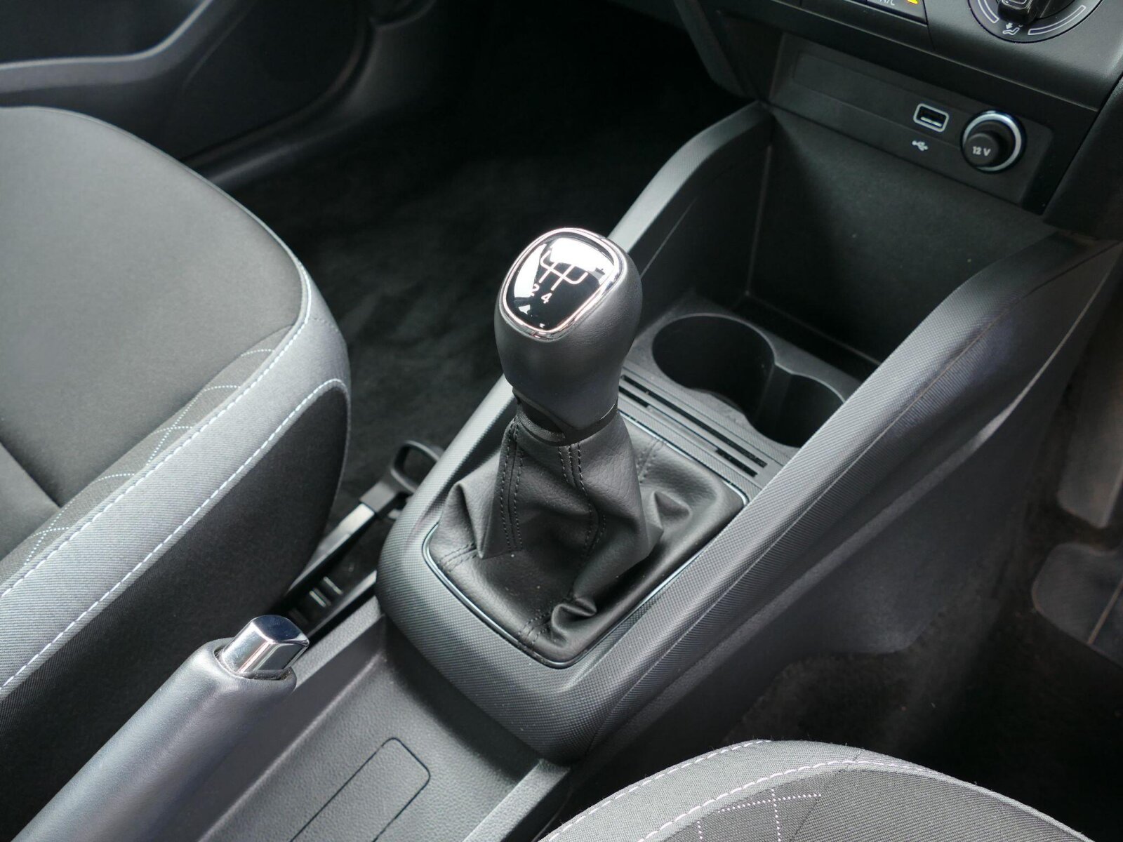 "Front console box with stitching",