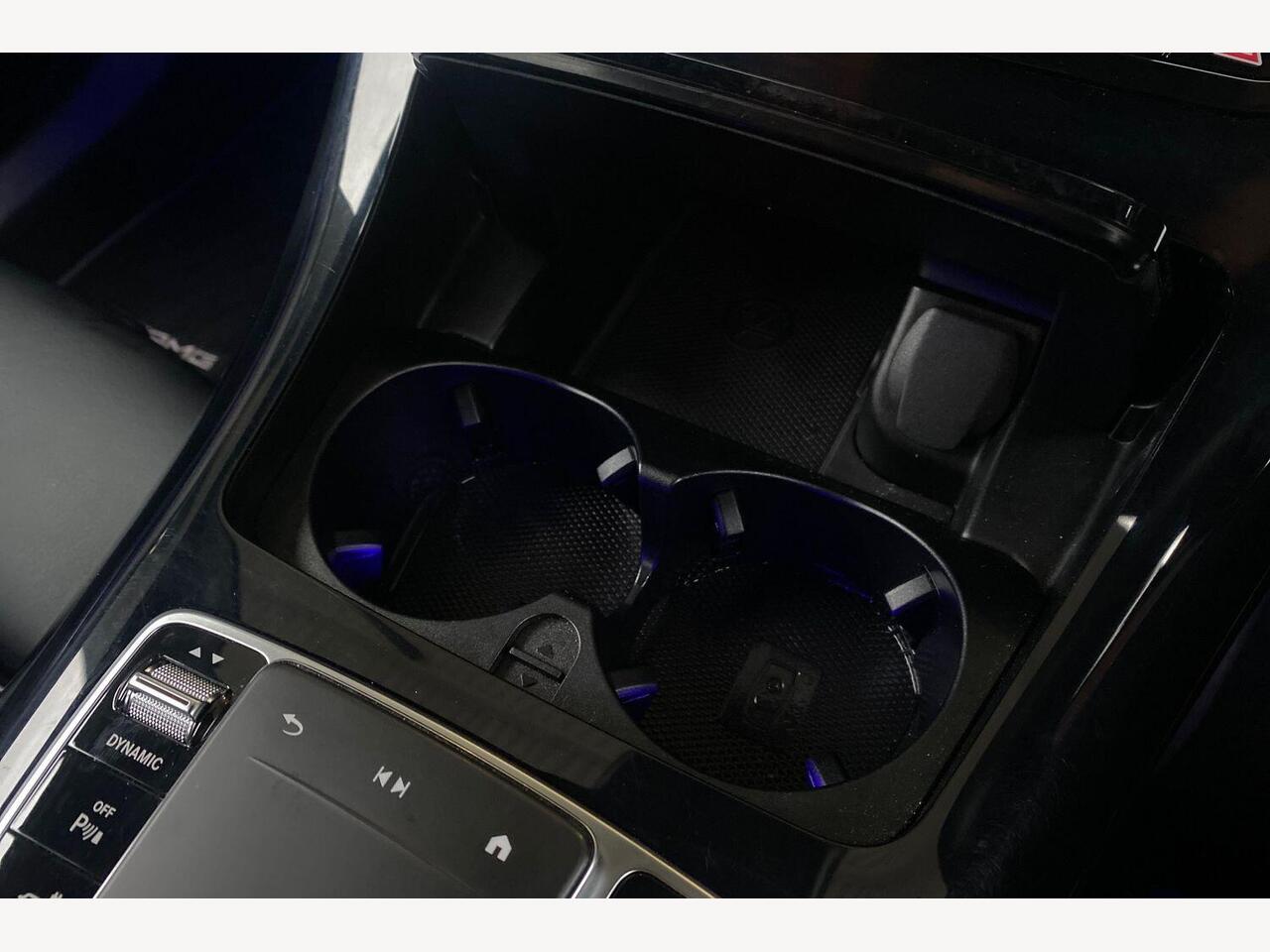 "Centre console with illuminated storage compartment with sliding cover and two drinks holders",