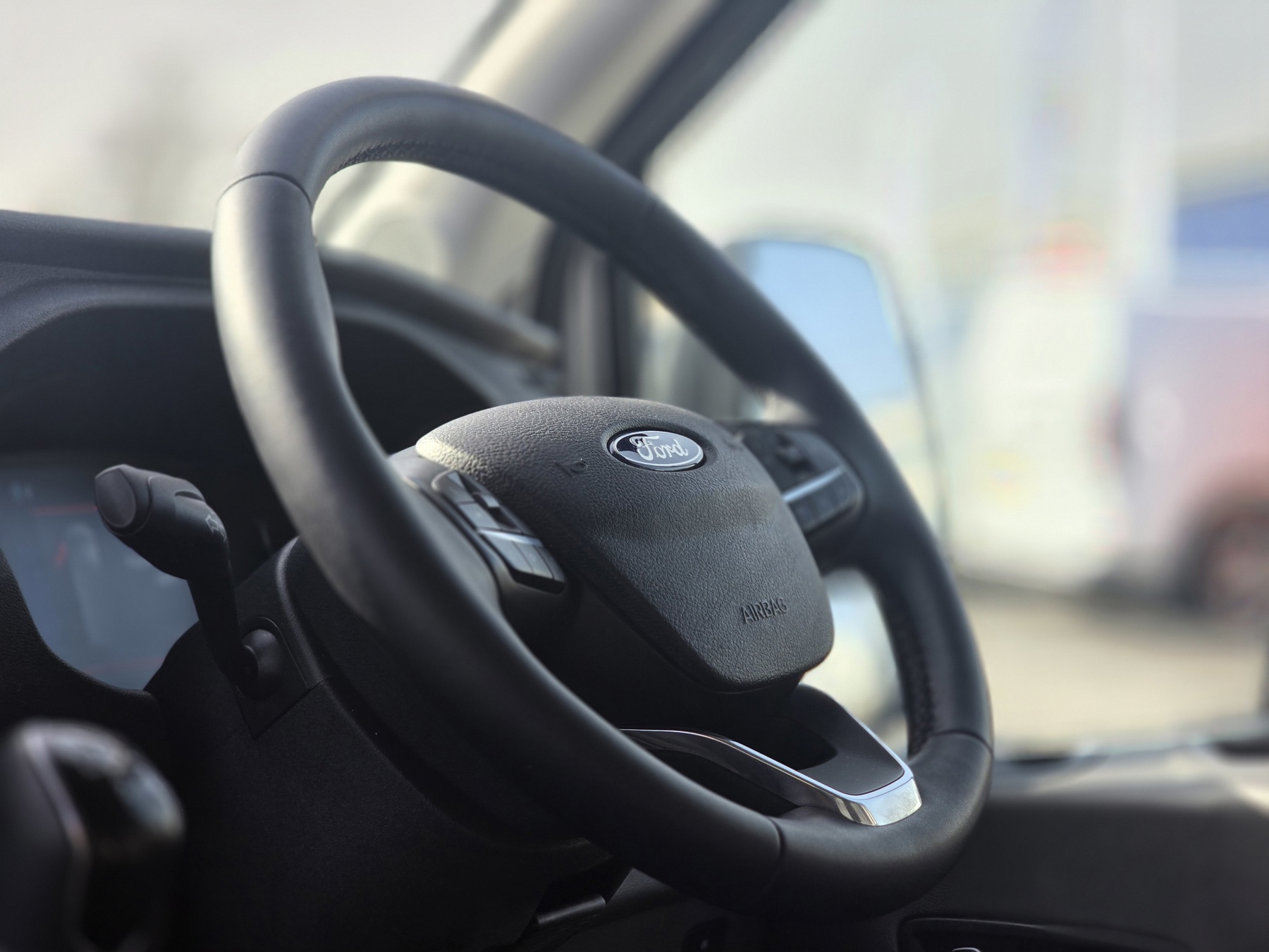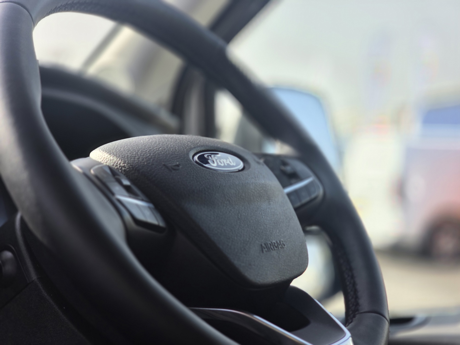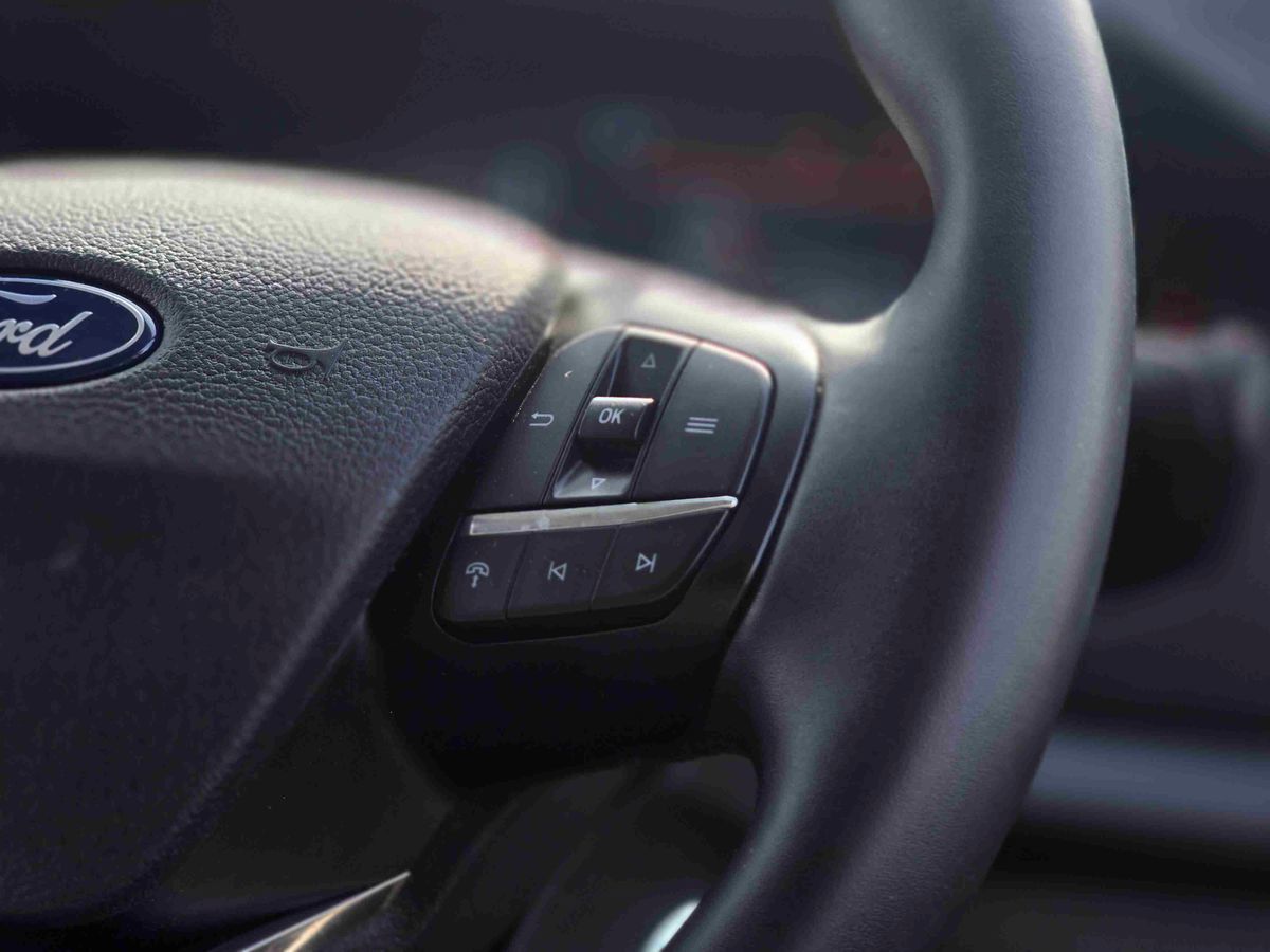 "Smooth synthetic leather steering wheel",