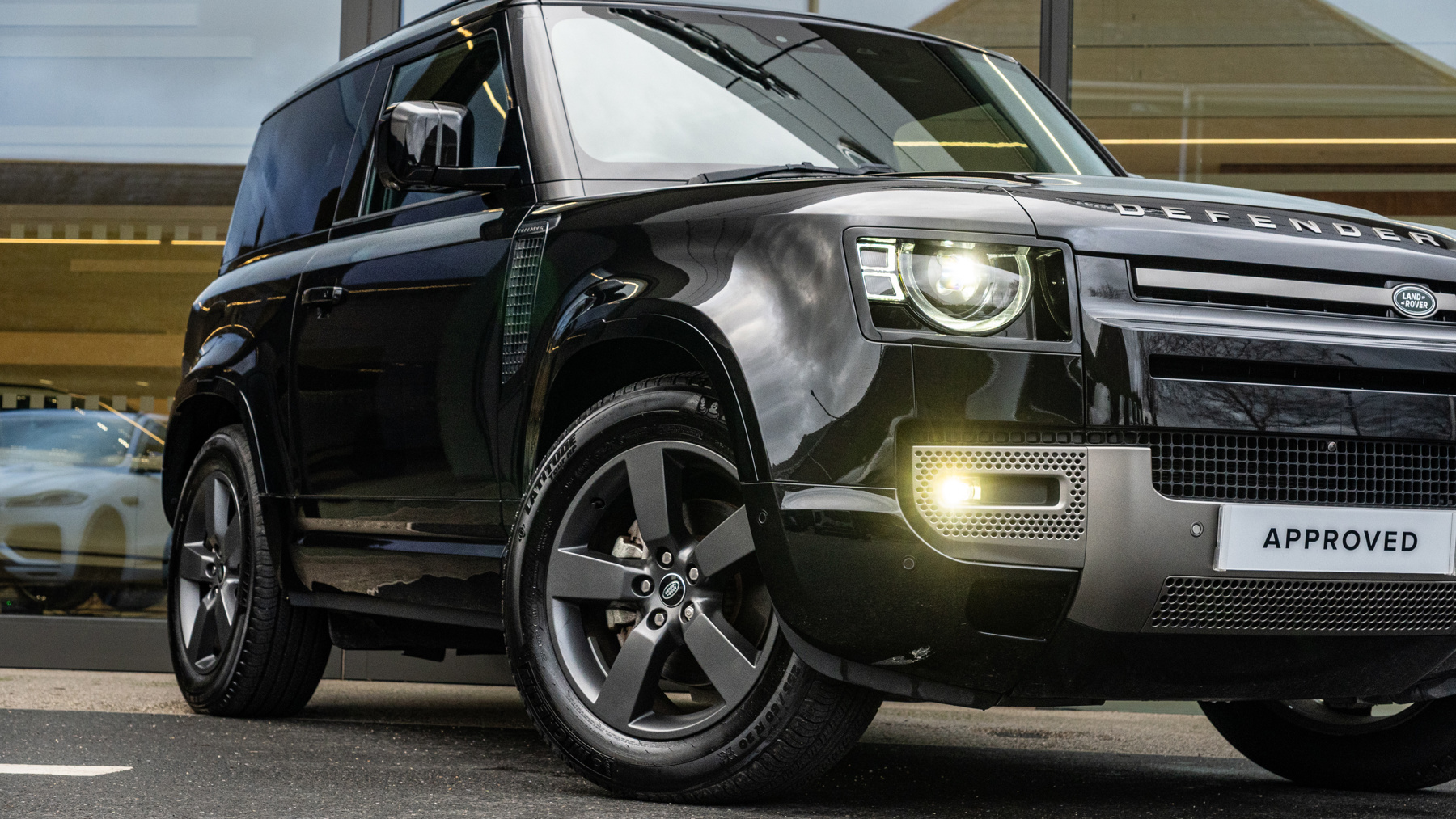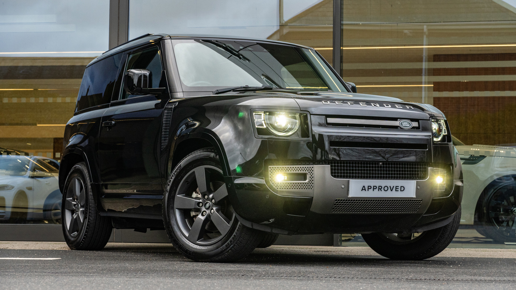 "Solid black door mirrors",