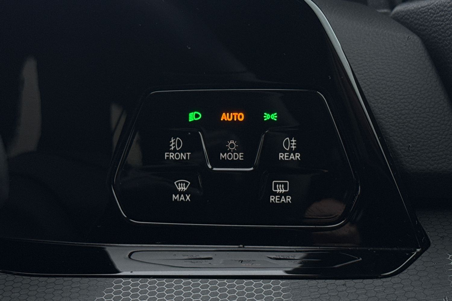 "Piano keys: Gloss black and chrome toggle switches to access main functions of the vehicle and touchscreen functions",