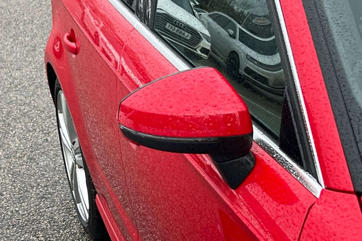 "Red brake calipers",