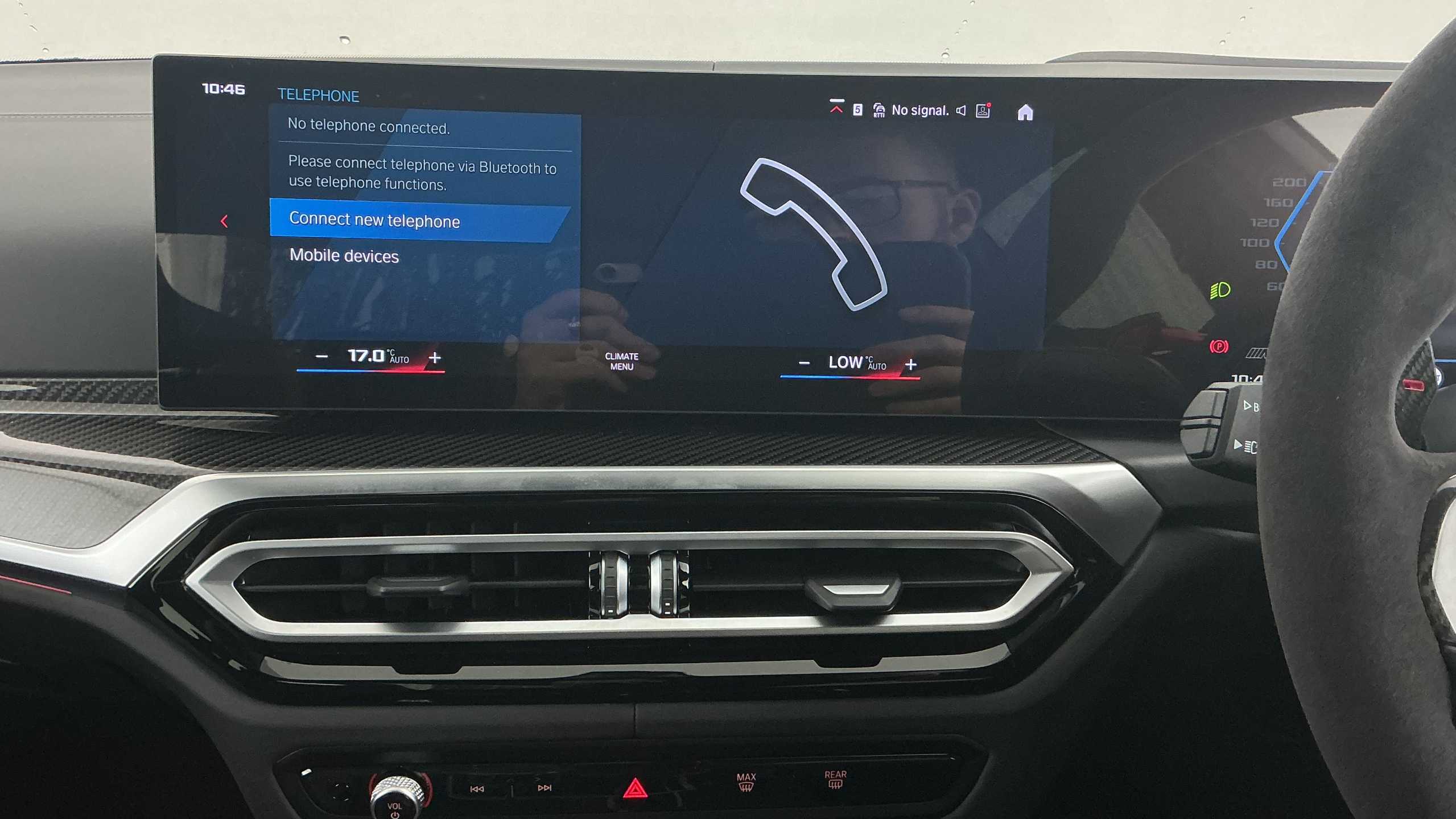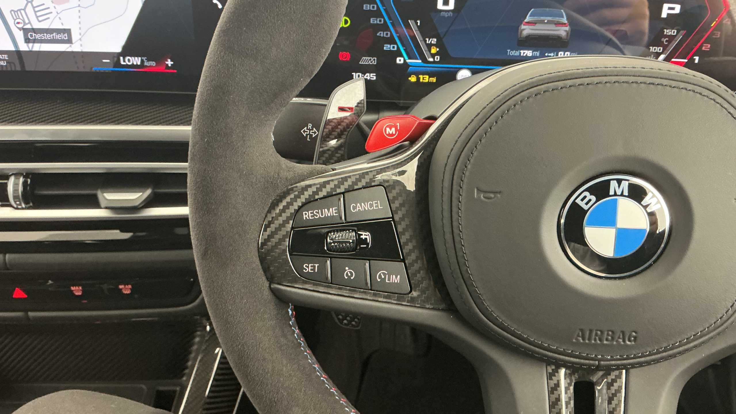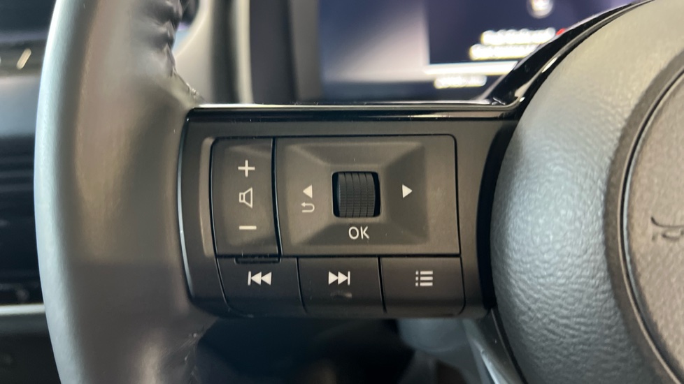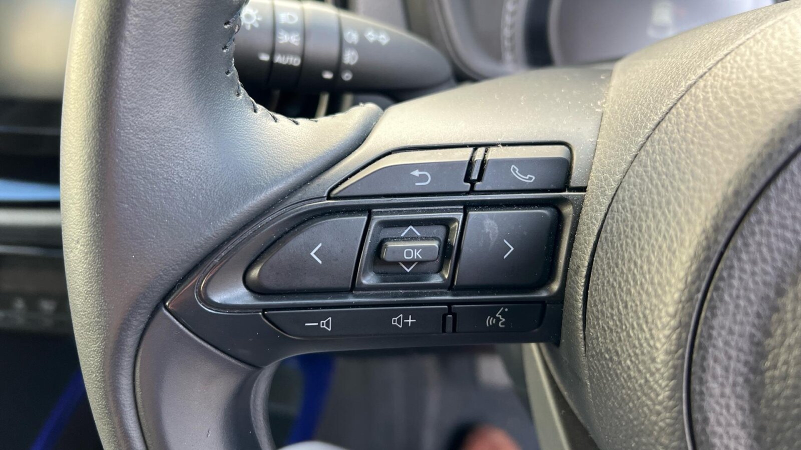 "Leather steering wheel with gloss black + satin chrome elements and audio/telephone controls",