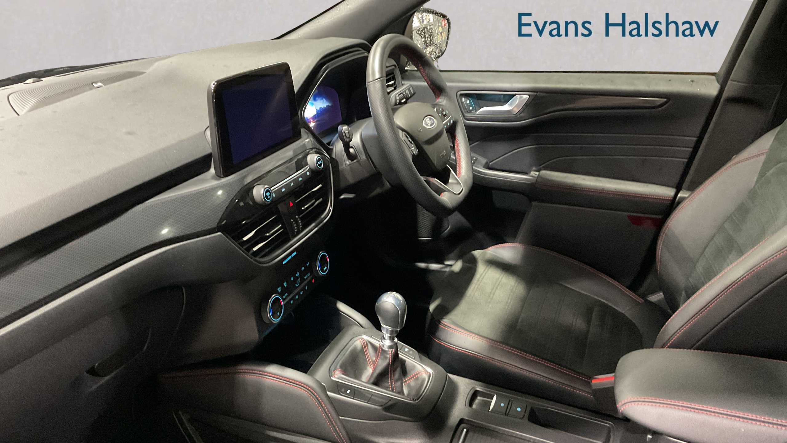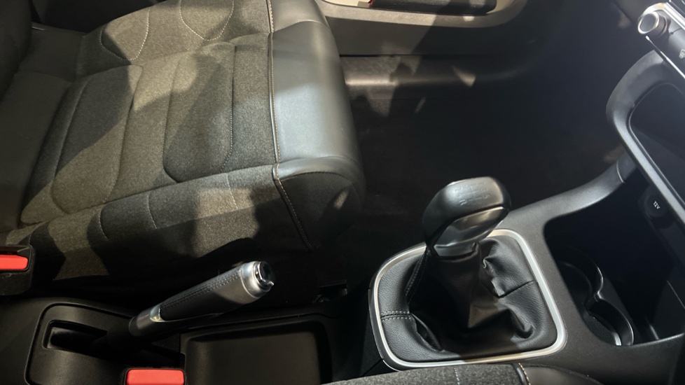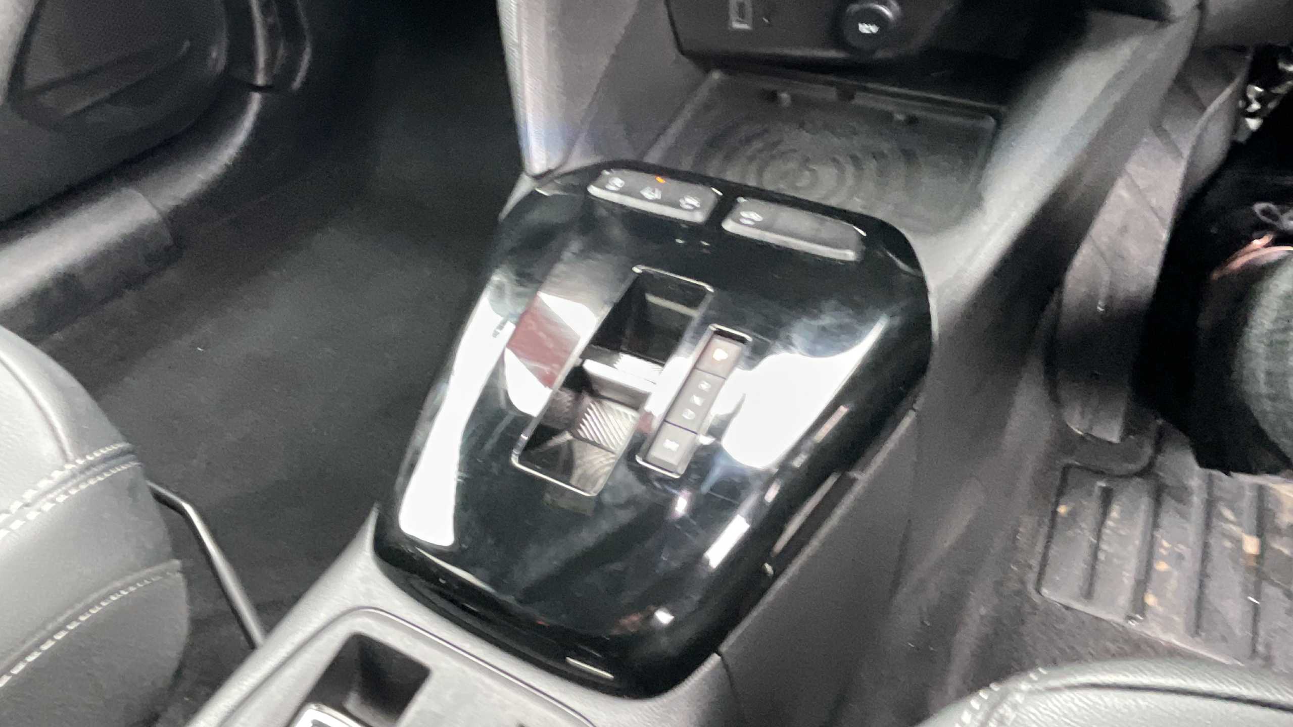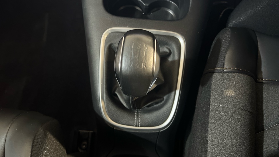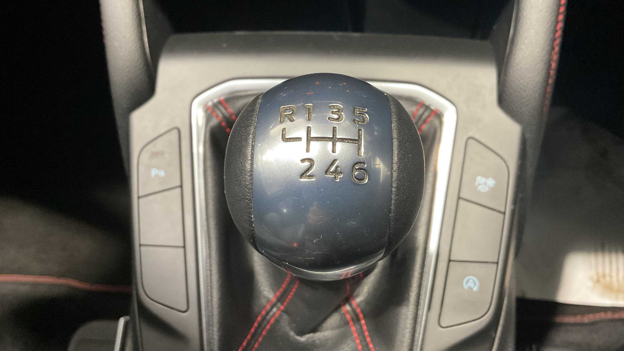 "Leather trimmed gear lever with leather effect gaiter and overstitching",