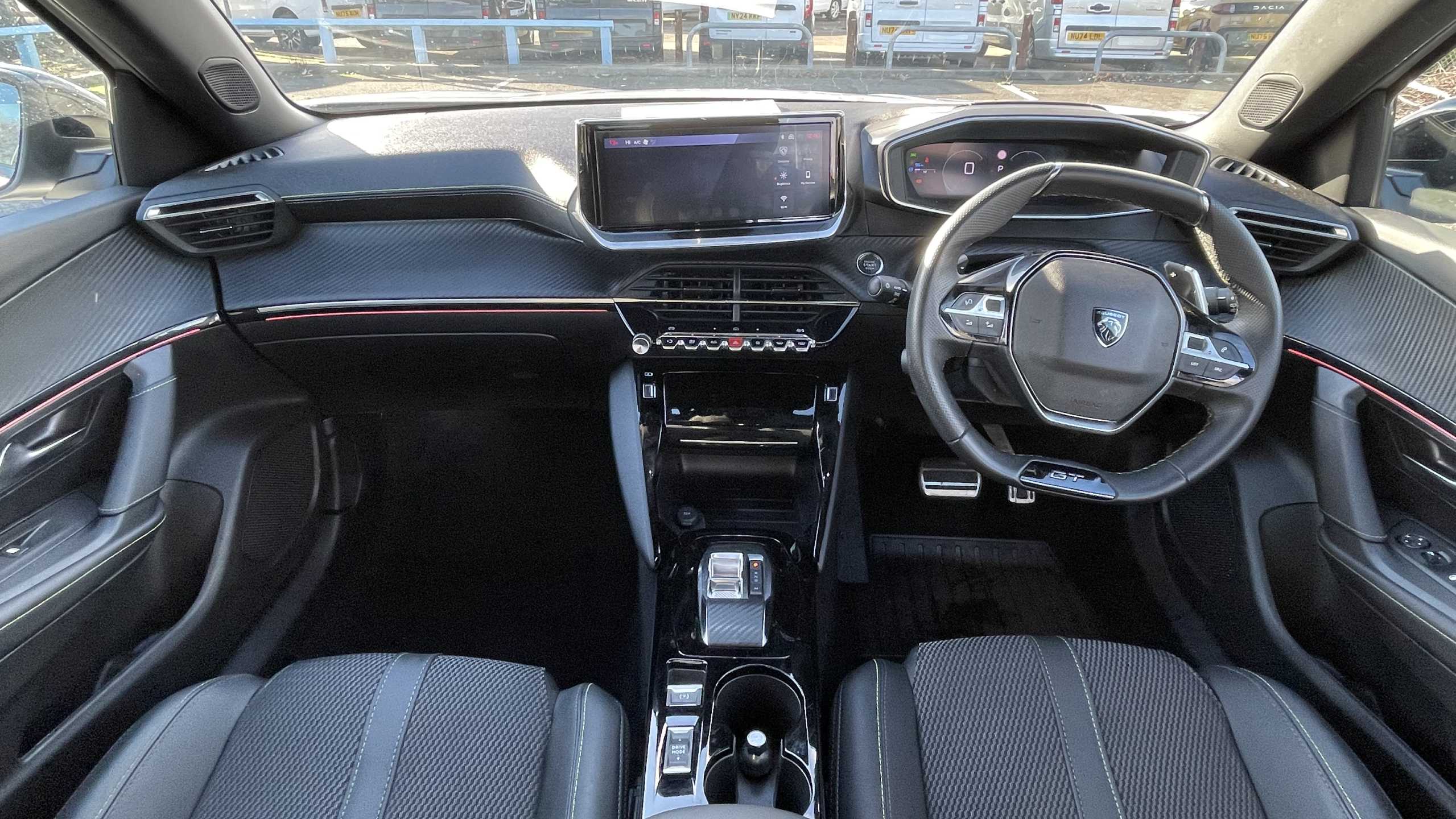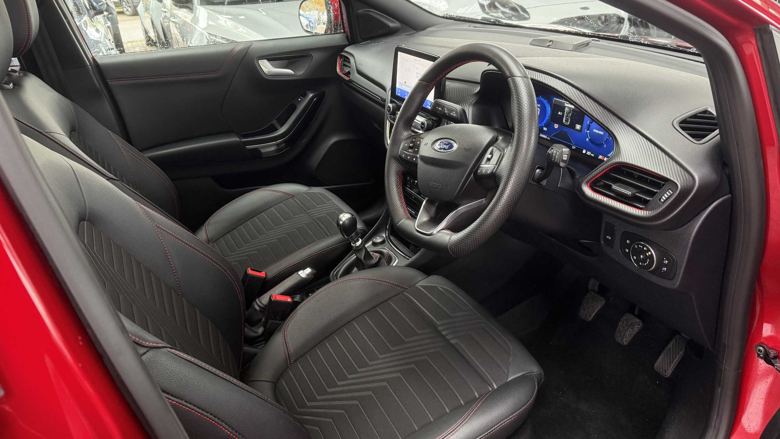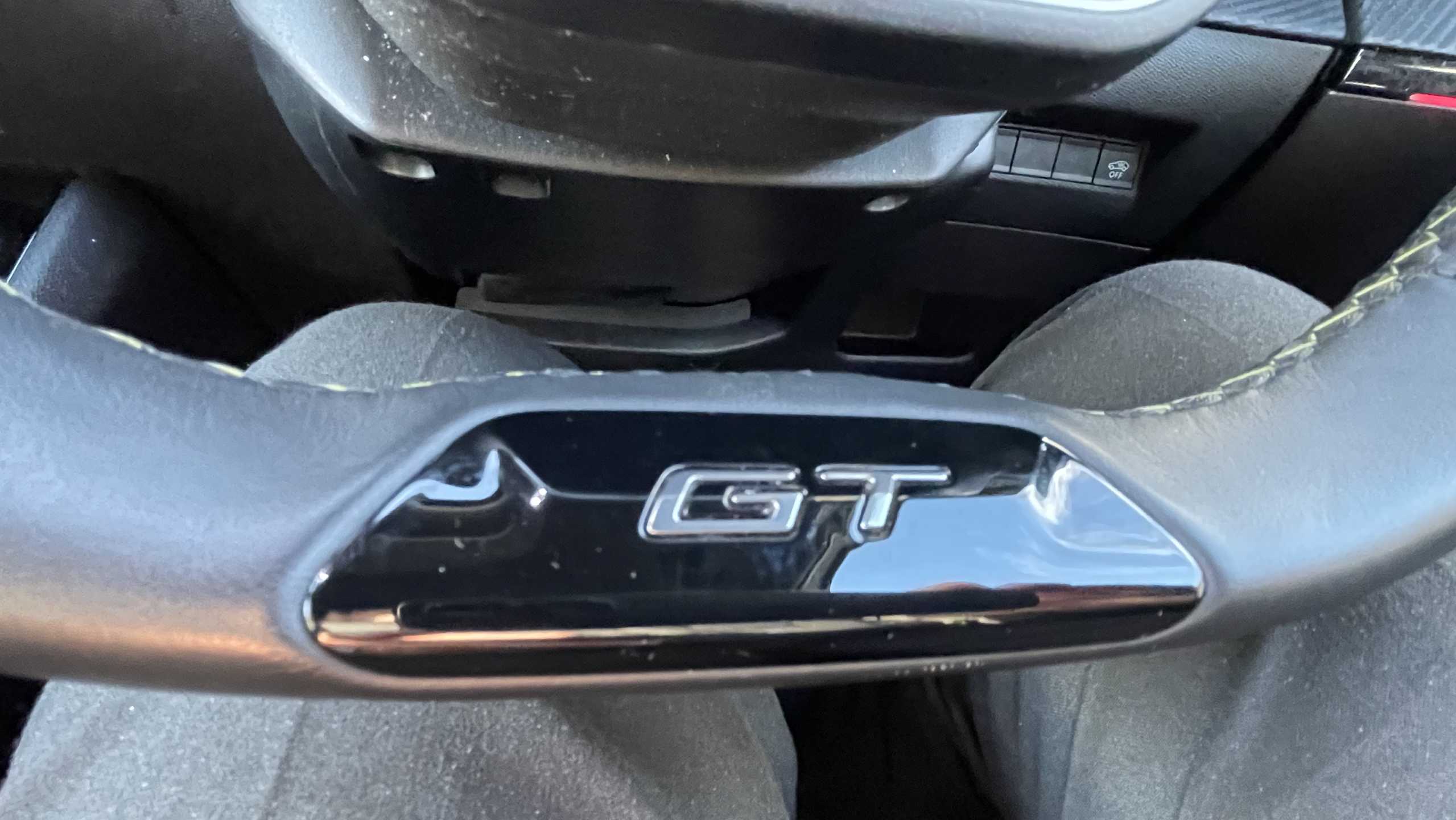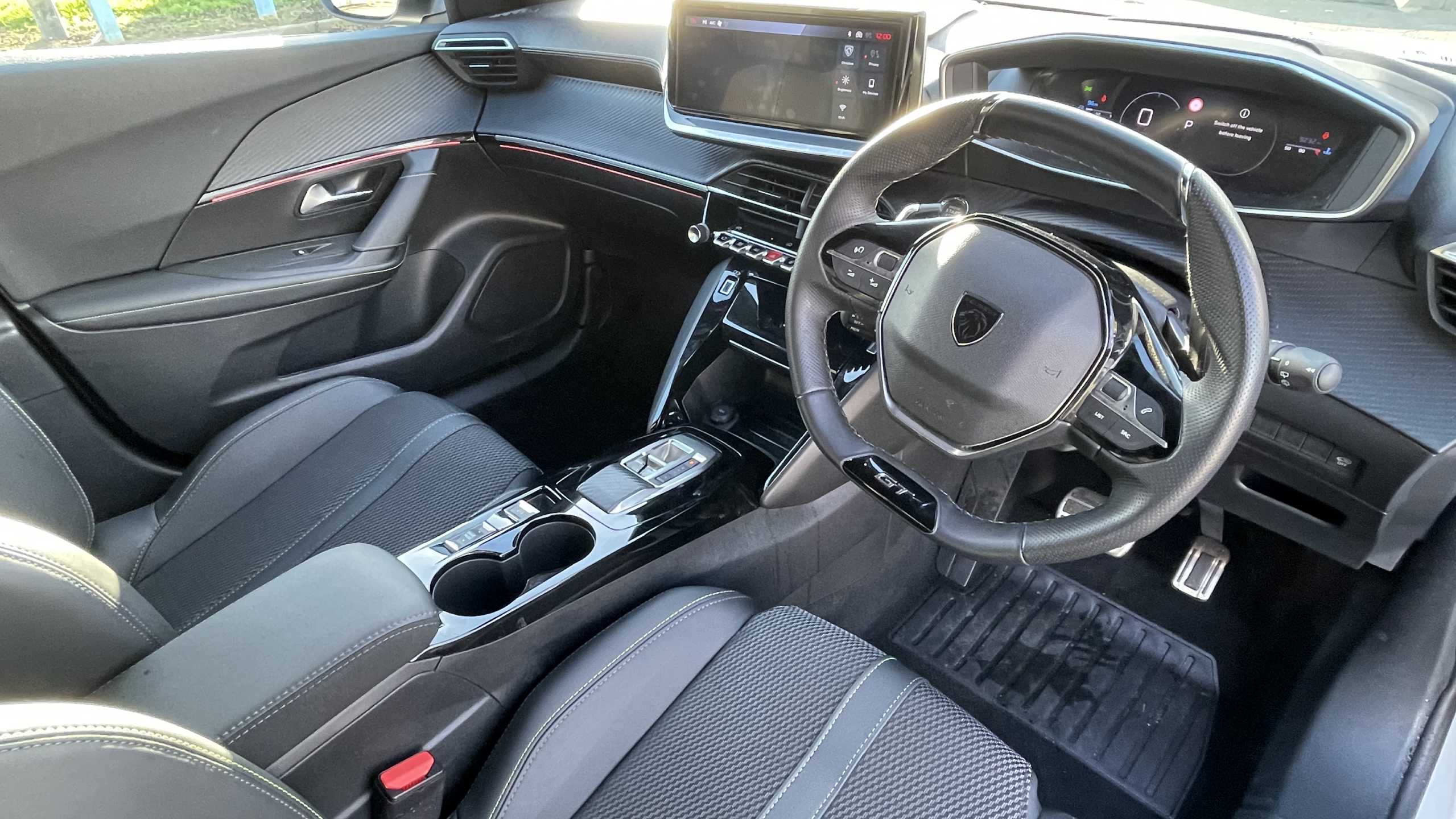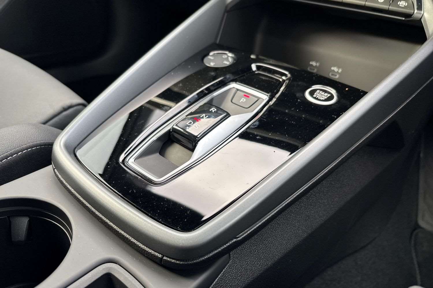 "Leather trimmed gear lever with leather effect gaiter and overstitching",