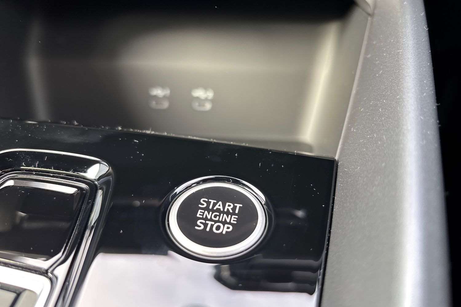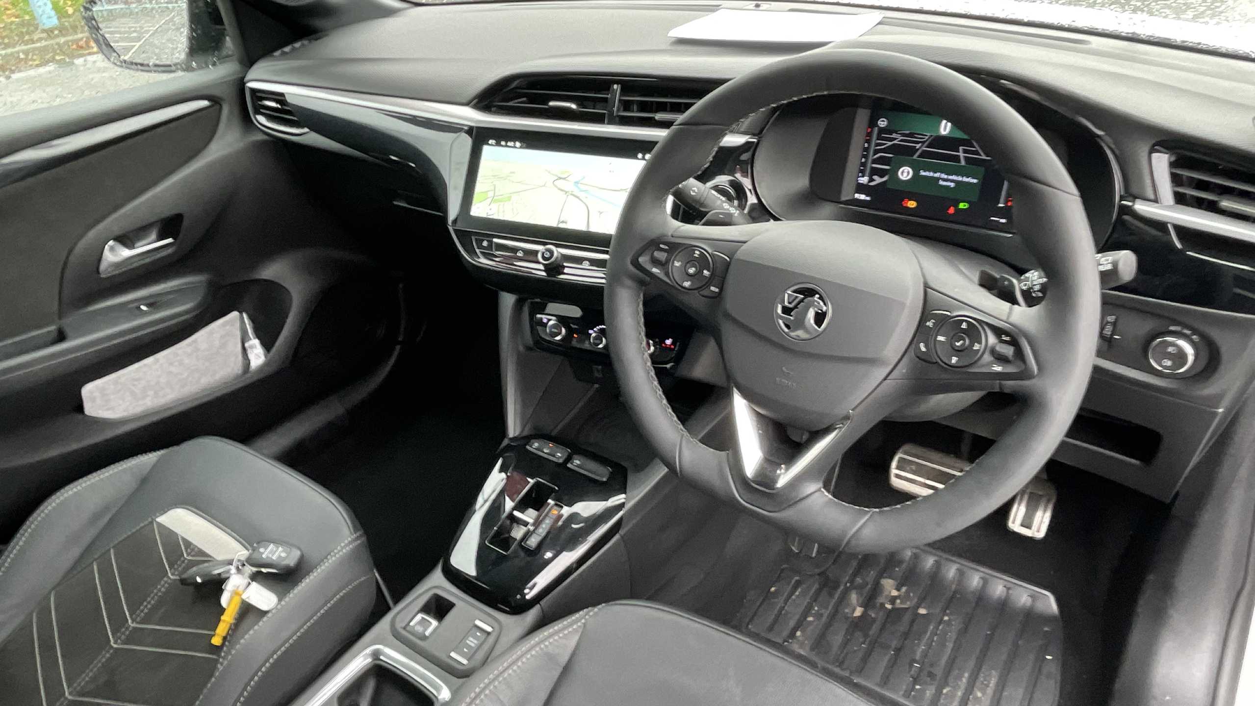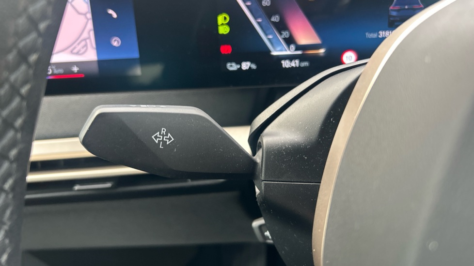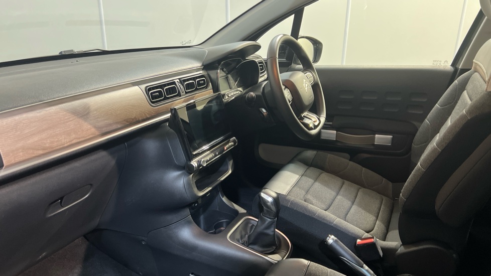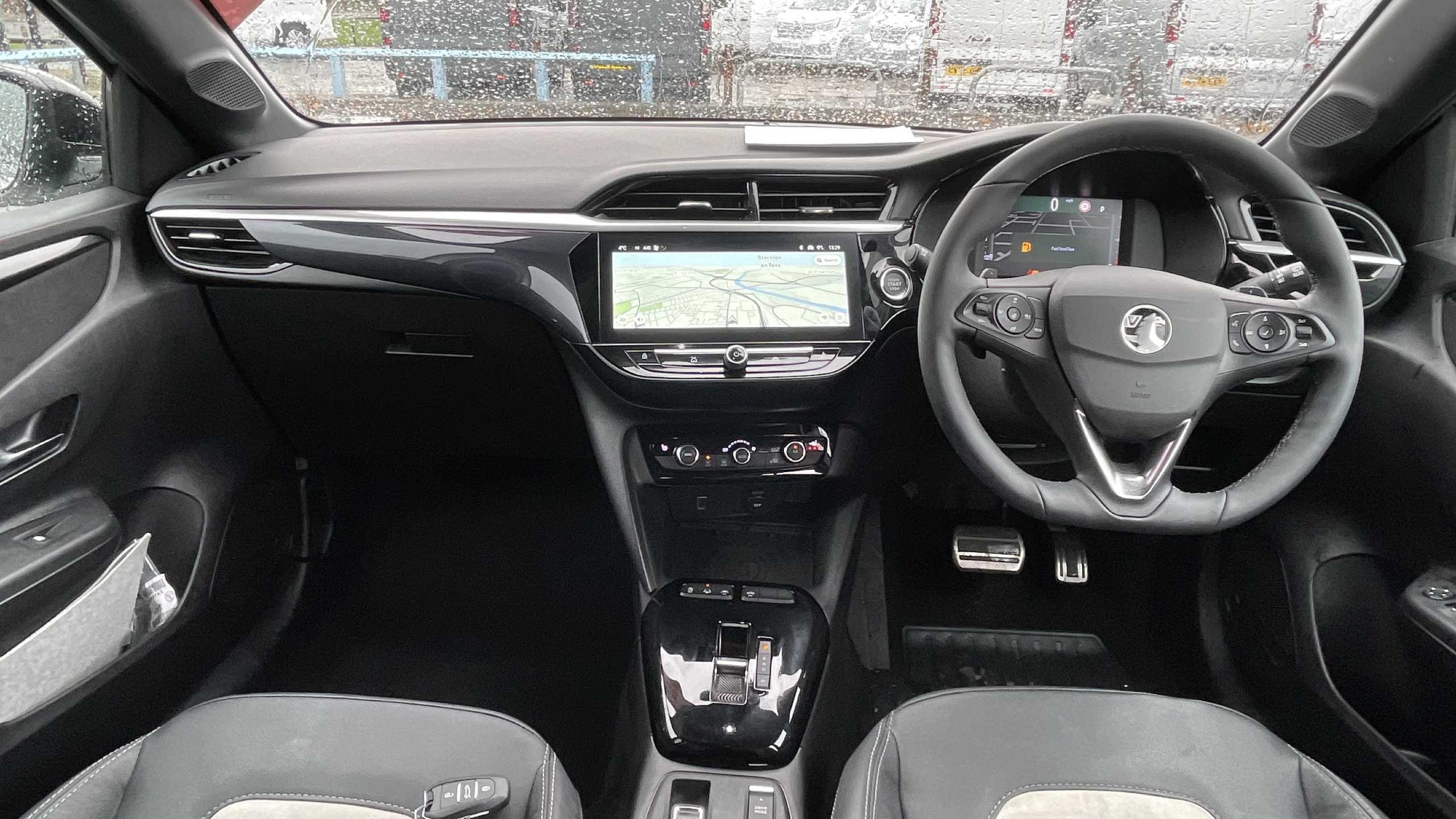 "Leather trimmed gear lever with leather effect gaiter and overstitching",