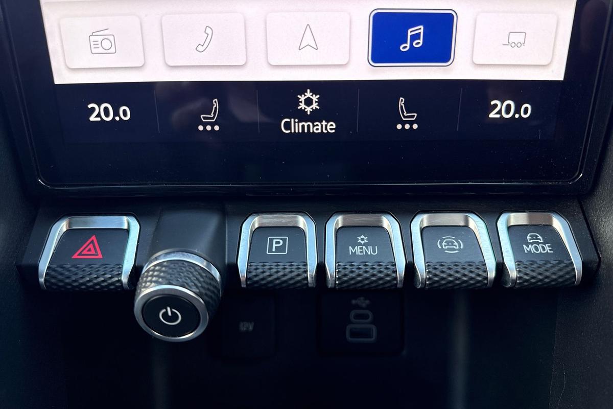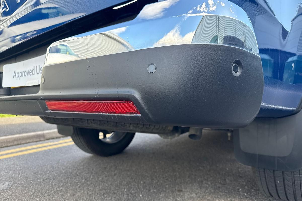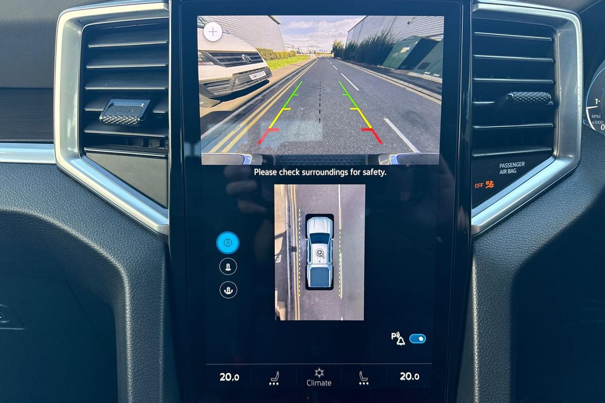 "Front and rear ultrasonic parking sensors, audible with audio volume reduction when activated + optical parking display via vehicles infotain system",