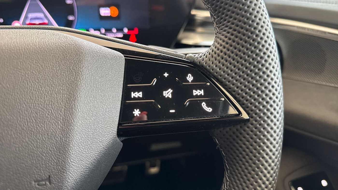 "Three spoke leather trimmed multifunction steering wheel with gear knob",