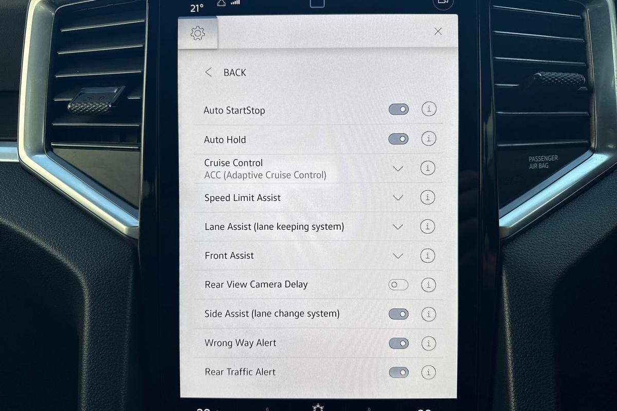 "Adaptive cruise control (ACC) with speed limiter and front assist (reacting to vehicles pedestrians and cyclists)",