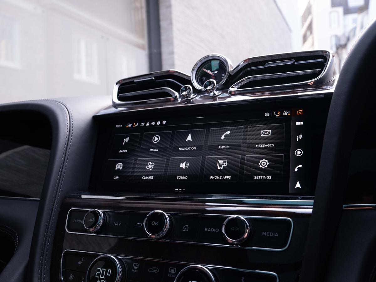 "features": "Apple car play, Blind spot warning, Bluetooth and Wi-Fi audio streaming, Brake pad wear indicator warning light, Collision prevention assist, Front/rear park distance control, Infotainment system with 12.3 high resolution touch screen retina disp + proximity sensors + advance music interface, single DVD/CD, 2 SD card slots, Navigation system, Park assist system, PAS, Power latching to all doors for easy entry, Reversing camera, Trip computer, 3 Chamber air suspension with continuous damping control, Battery charger, Dynamic ride height control + ground clearance function, 60GB hard drive, Acoustic and heat insulating front windscreen, Acoustic glass, Adaptive brake lights, Auto dimming rear view mirror, Black and Chrome bonnet and boot Bentley wing badges, Bright boot finisher, Bright wing vent with 12 in the black ribbed matrix, Deployable rear boot spoiler, Electrically adjustable door mirrors with heating,power fold, memory and dip on reverse functions, Full LED Matrix headlamps with high-beam assist, Full LED tail lamps, Heated rear windscreen, Lower front bumper grilles in black, Polished bright ware to side windows, Rain sensing windscreen wipers, Treadplates inner with \"Handbuilt in Crewe, England\" inserts, Twin oval exhaust finishers, 12v power sockets 2 in cabin and 1 in boot, 2 cupholders in front centre console, Bentley hide upholstery, Black seat belt buckles, Boot carpet in Beluga, Boot lid down lighters, Deep Pile Carpets to match upholstery, Electric tilt and reach adjustment steering column with memory and easy entry functions, Four occupant seating positions, Leather trimmed gearshift lever, Lockable cooled glovebox, Metal bulls eye vents with organ stop, Multi-zone automatic climate control - two zone, Rear headrests, Seats with straight fluted style hide cover, Single front armrest with fore/aft adjust and stowage, Ski hatch, Steering wheel gearshift paddles, Stowage to front doors, centre console and under centre armrest, Sunvisors with illuminated vanity mirrors, Two rear seats with centre stowage and cup holders including 12v socket and 2 USB charging points, Driver and passenger airbags, Electronic parking brake with drive away assist, Electronic stability programme with traction control, Anti lock braking System ,Electronic brake force distribution, HBA + drag torque control, Electronic tyre pressure monitoring, Exit warning, Front vented 420x40mm disc brakes with Bentley branded black brake callipers, Multicollision braking system, Pre crash system, Pre sense braking system, Rear vented 380x30mm disc brakes with Bentley branded black brake callipers, Side airbags, Torque vectoring brake, Alarm, Bentley GPS advanced tracking system, Immobiliser, Keyless entry and start, 21\" Summer tyres, Tyre inflation kit, ",
