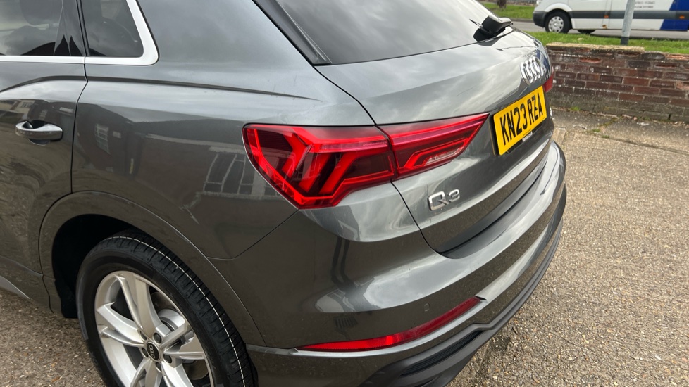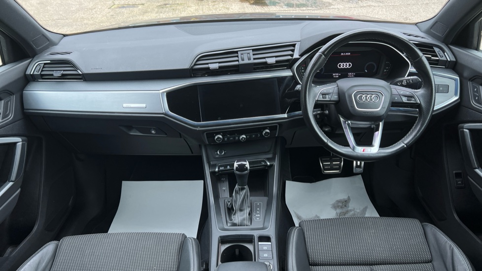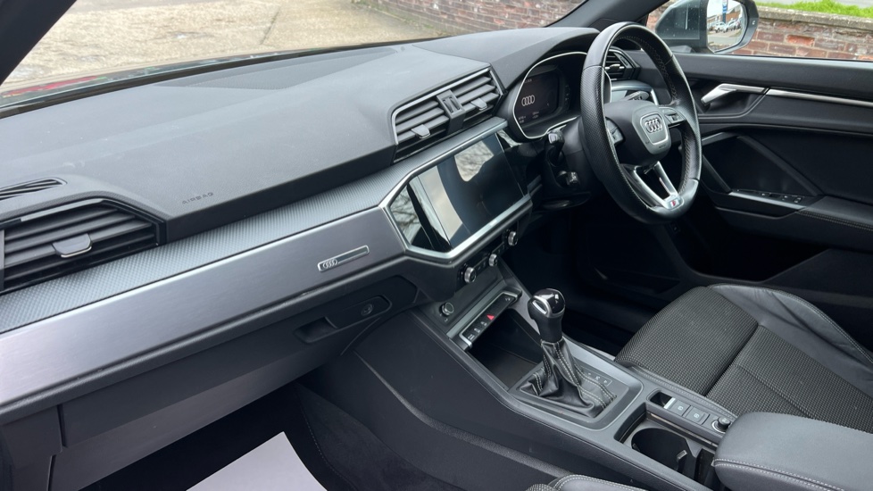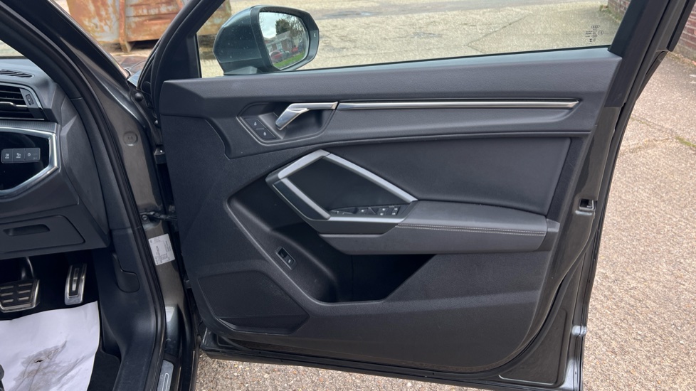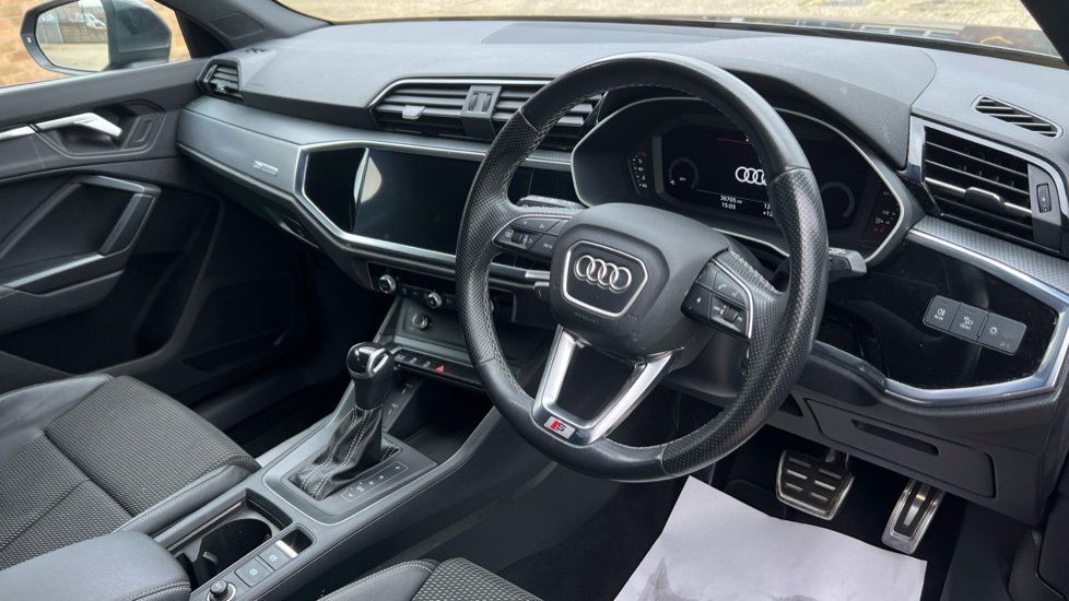 "features": "Amazon alexa Integration, Audi drive select, Audi lane departure warning, Audi Virtual Cockpit - 10.25\" display, Bluetooth interface, Camera based traffic sign recognition, Legal emergency call, MMI Navigation Plus with high resolution 10.1 inch touchscreen colour display, Power operated tailgate, Progressive steering, Service interval indicator, Smartphone interface includes wireless Apple carplay/Android Auto, Start stop system with recuperation, Voice control system with natural language interaction, Sports suspension, 2 USB-C ports with charge and data functions, 6 passive loudspeakers, DAB digital radio module, Acoustic windscreen, Aluminium roof rails, Aluminium window trim, Anthracite black radiator grille, Auto dimming frameless rear view mirror, Body colour front spoiler blade, Body coloured bumpers, Electrically folding, adjustable and heated door mirrors with integrated LED side indicators and kerb view function for passenger side, Front and rear electric windows, Front fog lights, Front side air inlets in matt platinum grey, Grille vertical bars in aluminium silver/Matt, High gloss black finish B and C pillars, LED Dynamic rear indicators, LED headlights with LED daytime running lights, LED rear lights, LED third brake light, Privacy glass dark tinted rear and rear-side windows (from B-pillar backwards), Rain and light sensors, Rear diffuser grille in grained matt black, Rear diffuser strip in matt anthracite black, Rear side wing doors, Rear wiper, S line badges on front wings, S Line front and rear bumpers, Side skirt insert in matt Platinium grey, Variable front intermittent wipers, 12V socket in rear centre console, 3 seat bench in 2nd row, 3 spoke leather multifunction steering wheel features S badging and grips in perforated leather with contrast stitching, 40:20:40 folding with manual adjustment for 60:40 forwards/backwards position and backrest angle, Adjustable rear seat bench/backrest with centre armrest and cupholder, Black cloth headlining, Dual zone electronic climate control, Front and rear black floor mats with contrast stitching in rock grey, Front and rear headrests, Front and rear roof module including reading lights, Front centre armrest, Glove compartment lighting, Height and reach adjustable steering wheel, Illuminated door sill trims with S logo, ISOFIX child seat mounting for front passenger with airbag deactivation and outer rear seat including top tether attachment point for outer rear seats, Luggage compartment light, Manual front seats with height adjustment, Perforated leather gearknob, Single front passenger seat, Stainless steel luggage compartment sill finisher, Stainless steel pedals, Ambient lighting pack - Q3, Non smoking pack - Q3, 3x3 point rear seatbelts, 6 airbags - Driver, front passenger, curtain and side windows, Audi pre-sense front with pedestrain and cyclist recognition, Electrically operated child locks on rear doors, Electromechanical parking brake, Electronic stabilisation control including ABS, ASR and EDL, Front seatbelt reminder, Hill descent control, Hill hold assist, Pre sense basic, Seatbelt monitoring, Tyre pressure warning, Warning triangle and first aid kit, Anti theft alarm, Anti theft wheel bolts, Immobiliser, Remote central locking, Aluminium look interior elements, Dark matt brushed aluminium inlay, Detail dashboard around MMI touch colour display in glass look, black with surround in aluminium look, Leatherette door armrest, ",