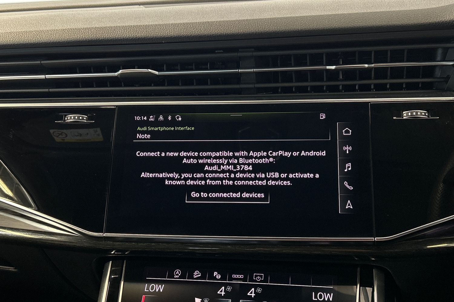 "Audi smartphone interface includes wireless Apple carplay/Android Auto",