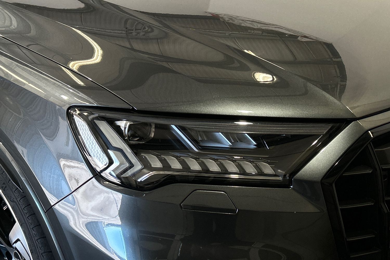 "Dark tinted Matrix LED headlights with dynamic front and rear indicators",