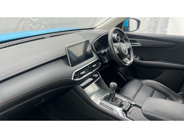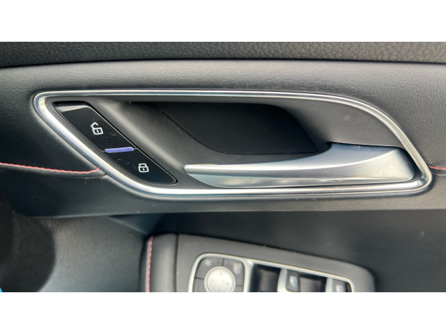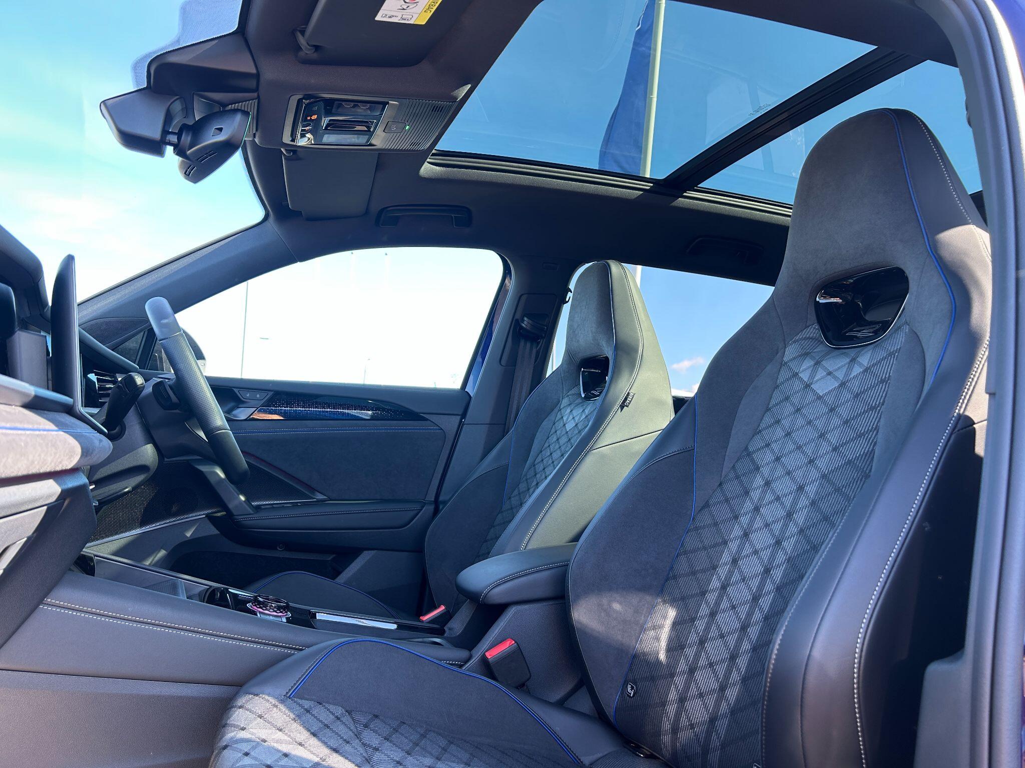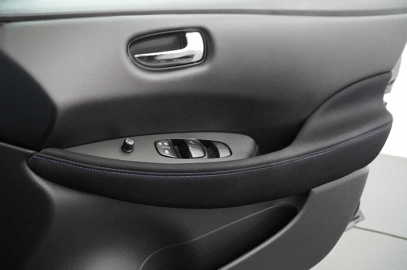 "Alcantara/Leather upholstery includes seat centre panels, door trim inserts in black Alcantara with side bolsters, head restraints in black leather",