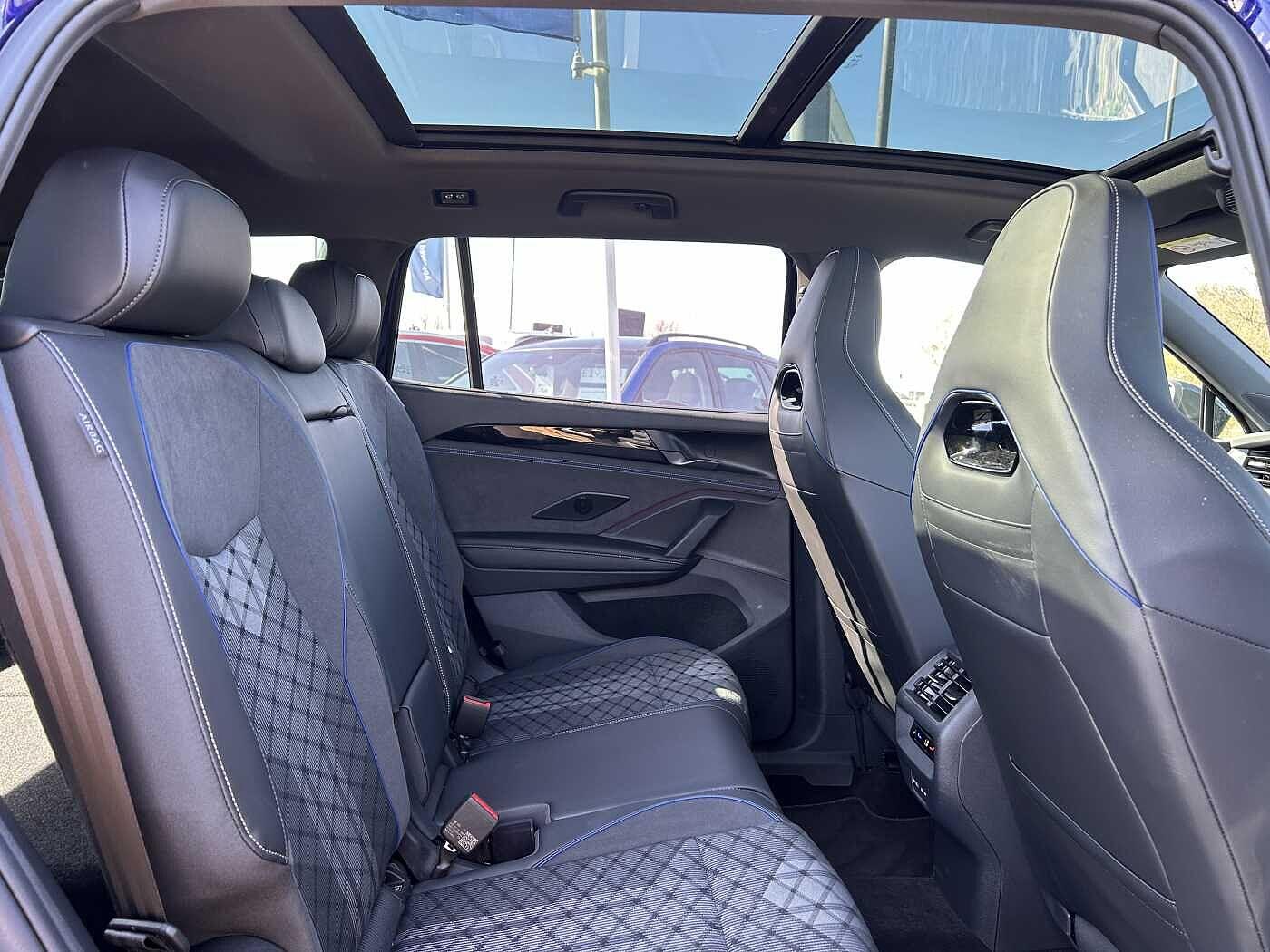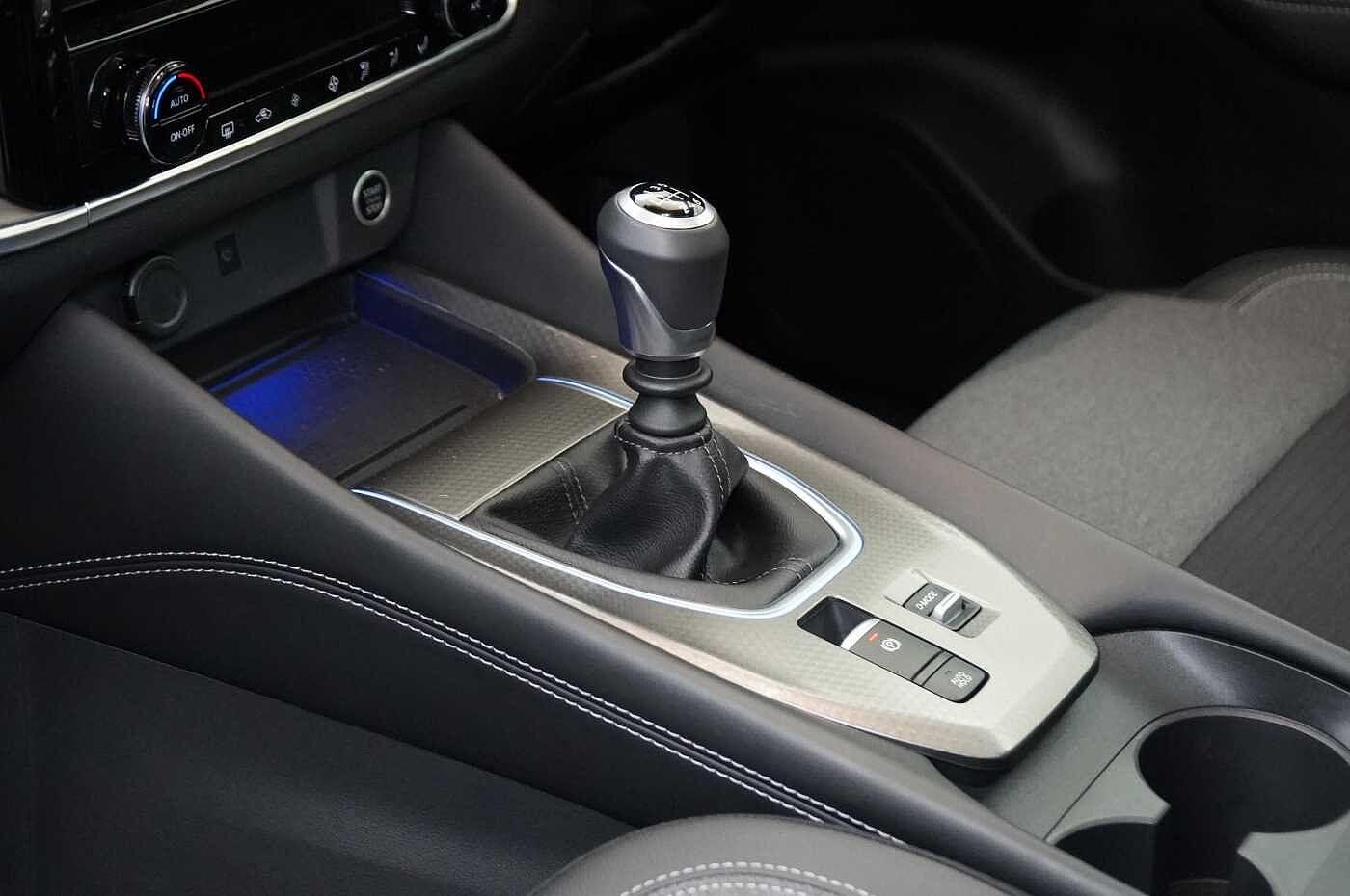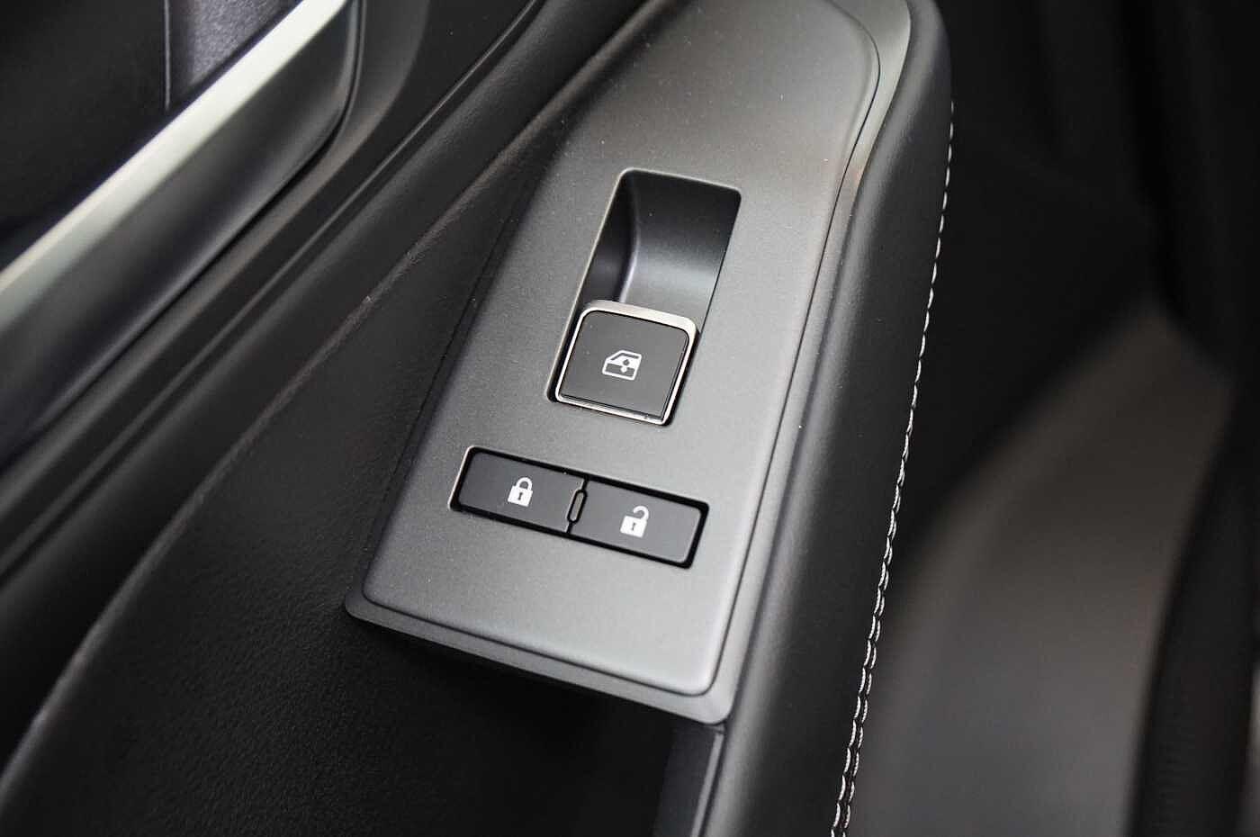 "Alcantara/Leather upholstery includes seat centre panels, door trim inserts in black Alcantara with side bolsters, head restraints in black leather",