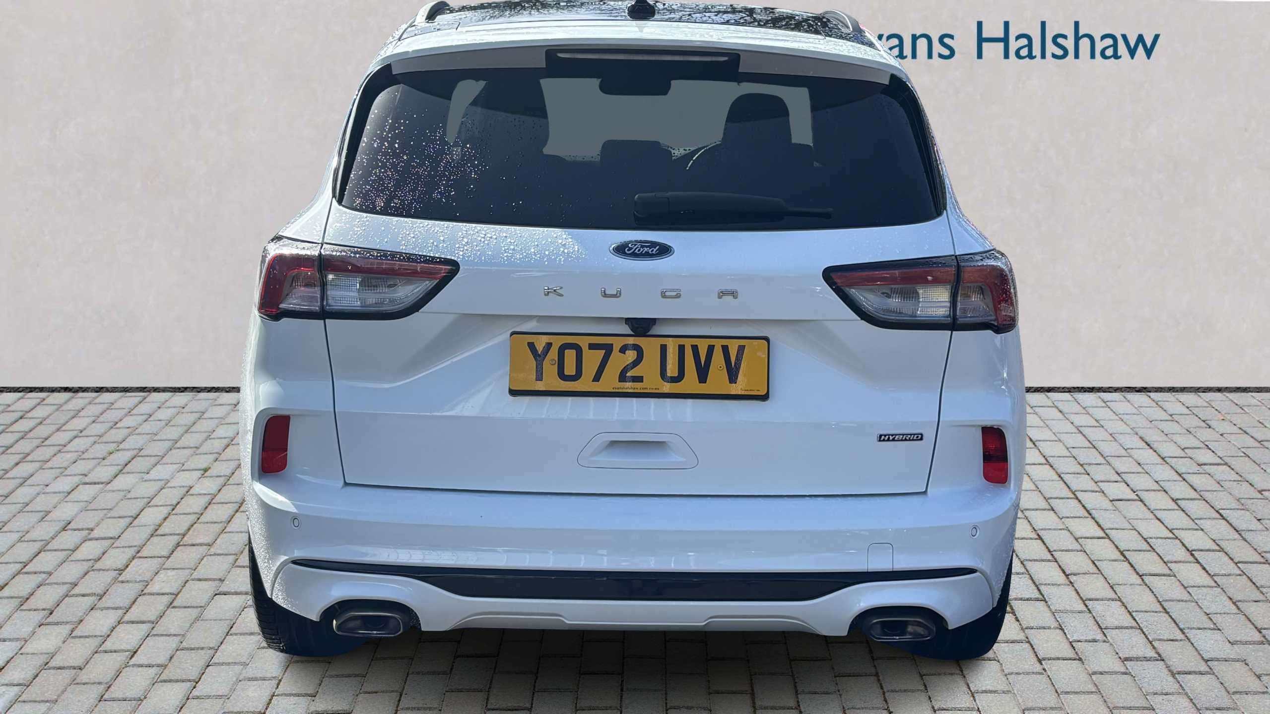 "Two visible exhaust pipes integrated into rear bumper"