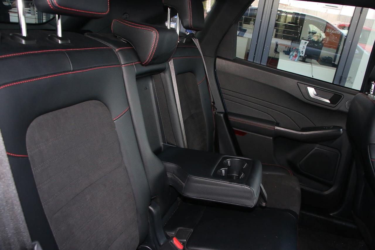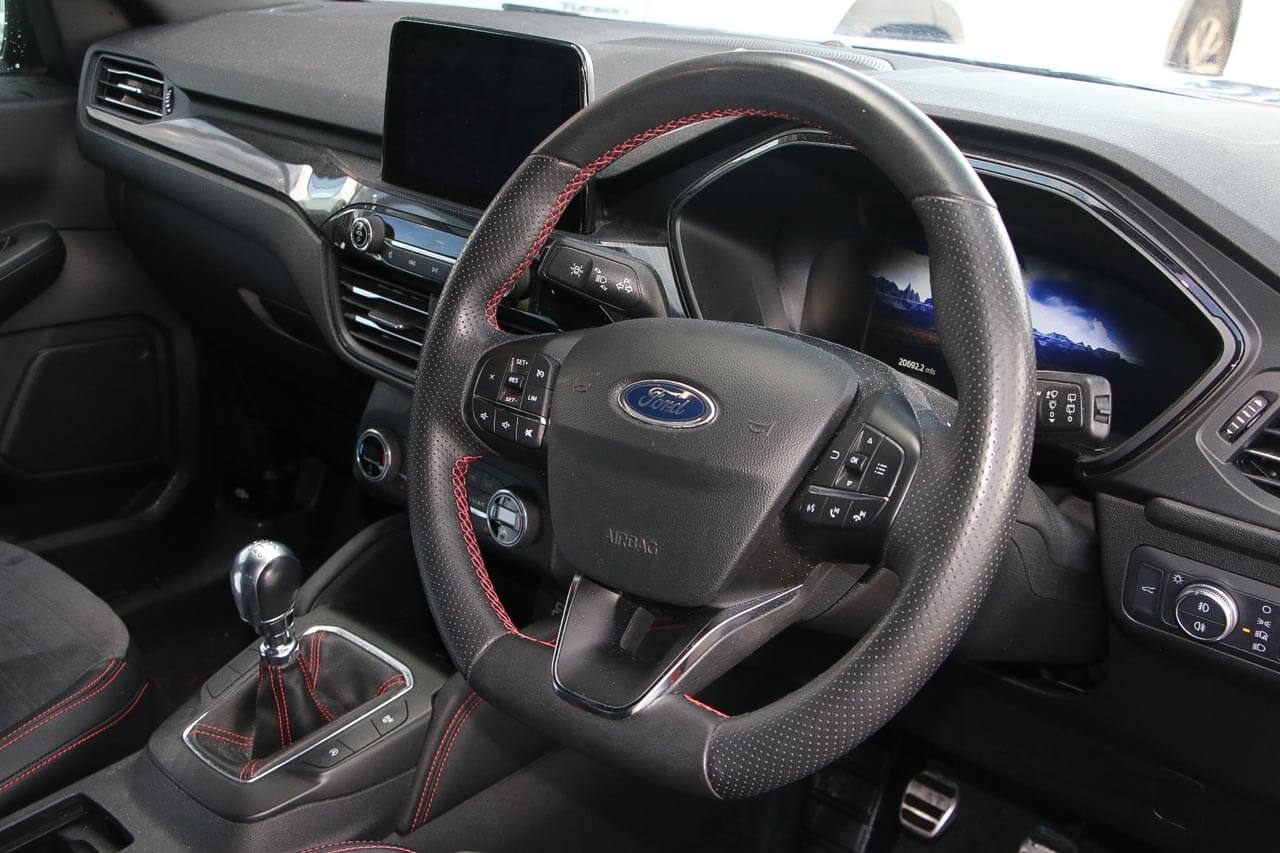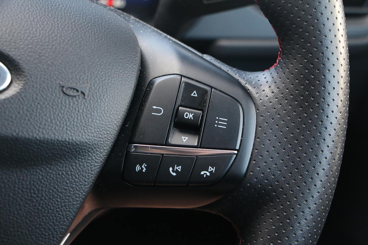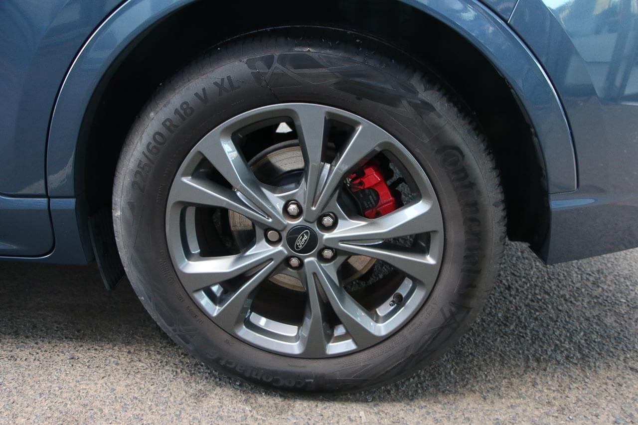 "features": "Cruise control with Intelligent speed assist, Easy fuel capless refuelling system, Ford pass connect embedded modem, PAS, Rear parking sensors and rear view camera, SYNC 3 nav system with DAB radio, 8\" screen, voice control, emergency assistance, Apple car play/Android auto, 2x USB, Ford pass connect, Traffic sign recognition, Trip computer, Sports suspension, 7 speakers, Steering wheel mounted audio controls, 'Quickclear' heated windscreen/heated washer jets, Auto dimming rear view mirror, Automatic headlights, Black roof rails, Body colour door handles, Body coloured bumpers, Electrically adjustable and heated door mirrors, Front door threshold plates with ST-Line logo, Front fog lights, Headlight levelling control, Large rear spoiler, Power front and rear windows with global opening/closing, Rain sensing front wipers, Rear wiper, ST-Line body styling kit, ST-Line front grille, 12V socket in front and rear, 60/40 split rear seats, 7 shade adjustable ambient lighting, Centre console with sliding front armrest, Cooled glovebox, Courtesy lights with map reading light, Driver seat height/lumbar adjust, Driver's side glovebox, Driver/passenger sunvisors and lidded vanity mirrors, EATC - Electronic Auto Temperature control, Folding grab handles, Front head restraints, Front seat back map pockets, Front/rear floor mats, Illuminated glovebox, Illuminated luggage compartment, Isofix system on outer rear seats, Luggage compartment carpet, Overhead console with sunglasses holder, Partial leather upholstery, Rake adjustable rear seats, Reach + rake adjustable steering column, Rear headrests, Sensico trimmed steering wheel, handbrake and gearshift gaiter with red stitching, Stainless steel sports pedals, Storage drawers under front seats, Tie down hooks, Variable boot floor, 3x3 point rear seatbelts, ABS, Autonomous emergency braking, Child locks on rear doors, Curtain airbags, Driver airbag, Drivers knee airbag, Electronic Stability Programme with hill launch assist, Front passenger airbag deactivation, Front side airbags, Passenger airbag, Pre collision assist system, Seatbelt reminder for driver and front passenger, Traction control, Tyre pressure monitoring system, Immobiliser, MyKey system, Remote central locking, Thatcham 1 volume sensing alarm, Low rolling resistance tyres, Tyre inflation kit, ",
