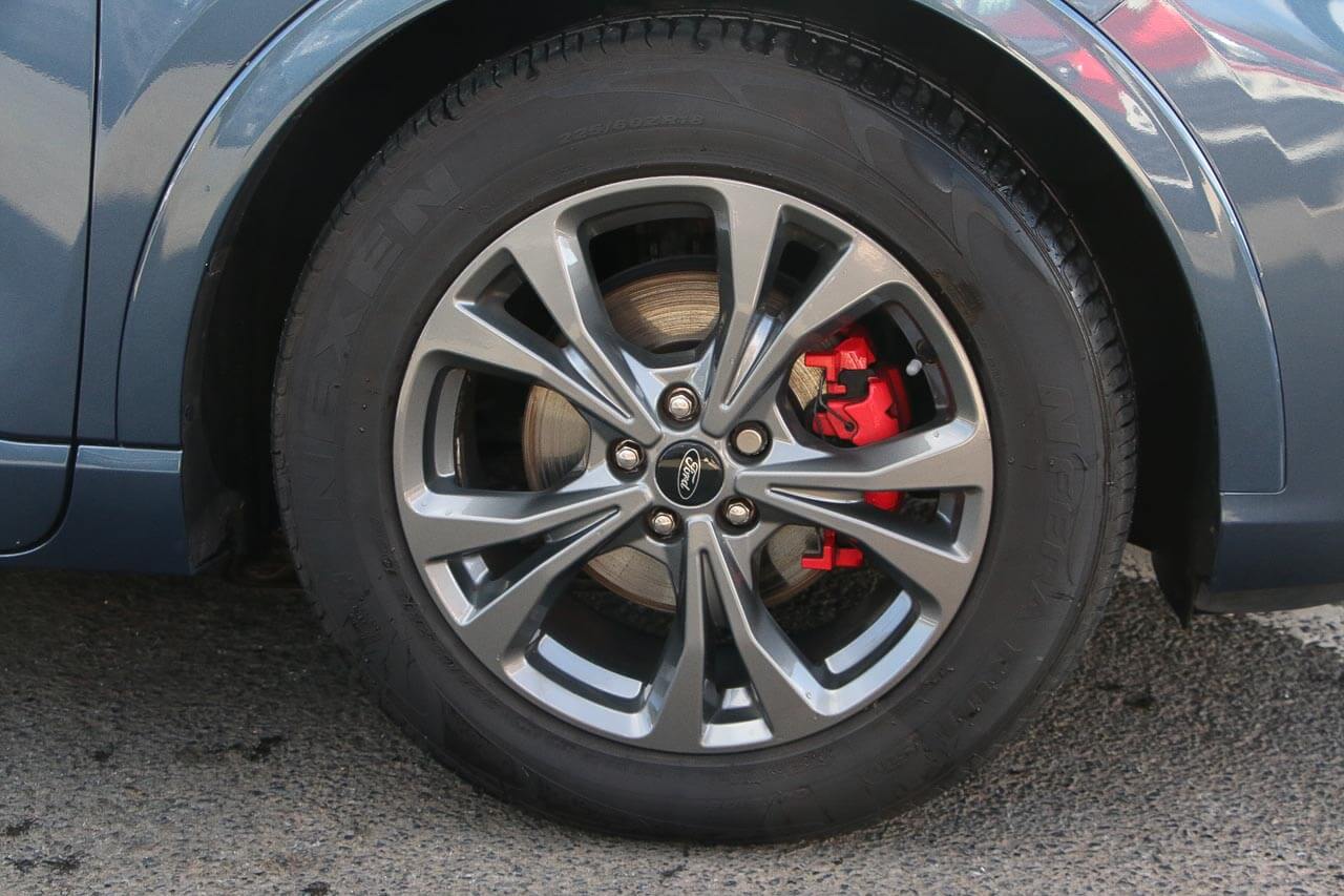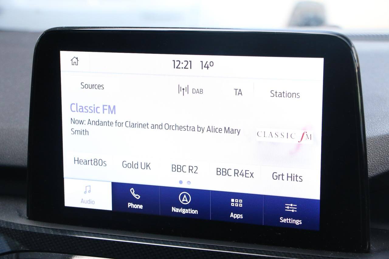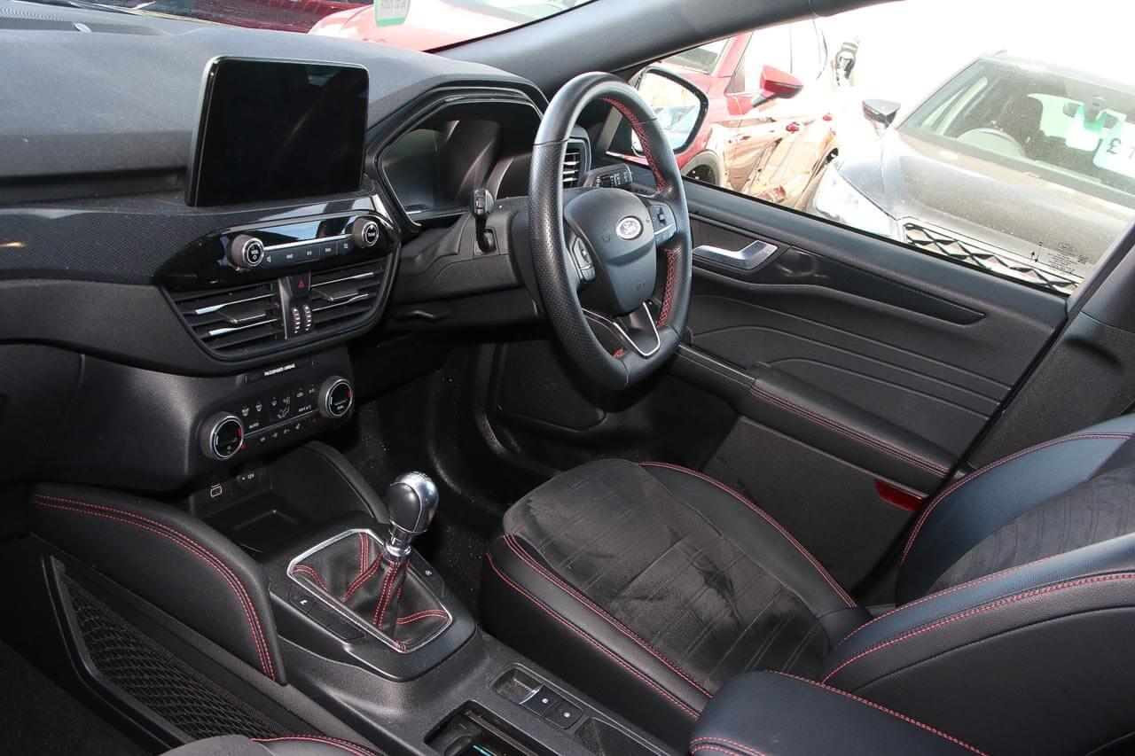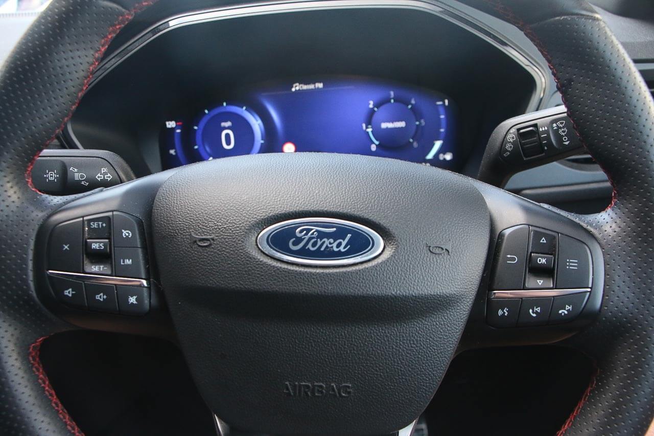 "features": "Cruise control with Intelligent speed assist, Easy fuel capless refuelling system, Ford pass connect embedded modem, PAS, Rear parking sensors and rear view camera, SYNC 3 nav system with DAB radio, 8\" screen, voice control, emergency assistance, Apple car play/Android auto, 2x USB, Ford pass connect, Traffic sign recognition, Trip computer, Sports suspension, 7 speakers, Steering wheel mounted audio controls, 'Quickclear' heated windscreen/heated washer jets, Auto dimming rear view mirror, Automatic headlights, Black roof rails, Body colour door handles, Body coloured bumpers, Electrically adjustable and heated door mirrors, Front door threshold plates with ST-Line logo, Front fog lights, Headlight levelling control, Large rear spoiler, Power front and rear windows with global opening/closing, Rain sensing front wipers, Rear wiper, ST-Line body styling kit, ST-Line front grille, 12V socket in front and rear, 60/40 split rear seats, 7 shade adjustable ambient lighting, Centre console with sliding front armrest, Cooled glovebox, Courtesy lights with map reading light, Driver seat height/lumbar adjust, Driver's side glovebox, Driver/passenger sunvisors and lidded vanity mirrors, EATC - Electronic Auto Temperature control, Folding grab handles, Front head restraints, Front seat back map pockets, Front/rear floor mats, Illuminated glovebox, Illuminated luggage compartment, Isofix system on outer rear seats, Luggage compartment carpet, Overhead console with sunglasses holder, Partial leather upholstery, Rake adjustable rear seats, Reach + rake adjustable steering column, Rear headrests, Sensico trimmed steering wheel, handbrake and gearshift gaiter with red stitching, Stainless steel sports pedals, Storage drawers under front seats, Tie down hooks, Variable boot floor, 3x3 point rear seatbelts, ABS, Autonomous emergency braking, Child locks on rear doors, Curtain airbags, Driver airbag, Drivers knee airbag, Electronic Stability Programme with hill launch assist, Front passenger airbag deactivation, Front side airbags, Passenger airbag, Pre collision assist system, Seatbelt reminder for driver and front passenger, Traction control, Tyre pressure monitoring system, Immobiliser, MyKey system, Remote central locking, Thatcham 1 volume sensing alarm, Low rolling resistance tyres, Tyre inflation kit, ",