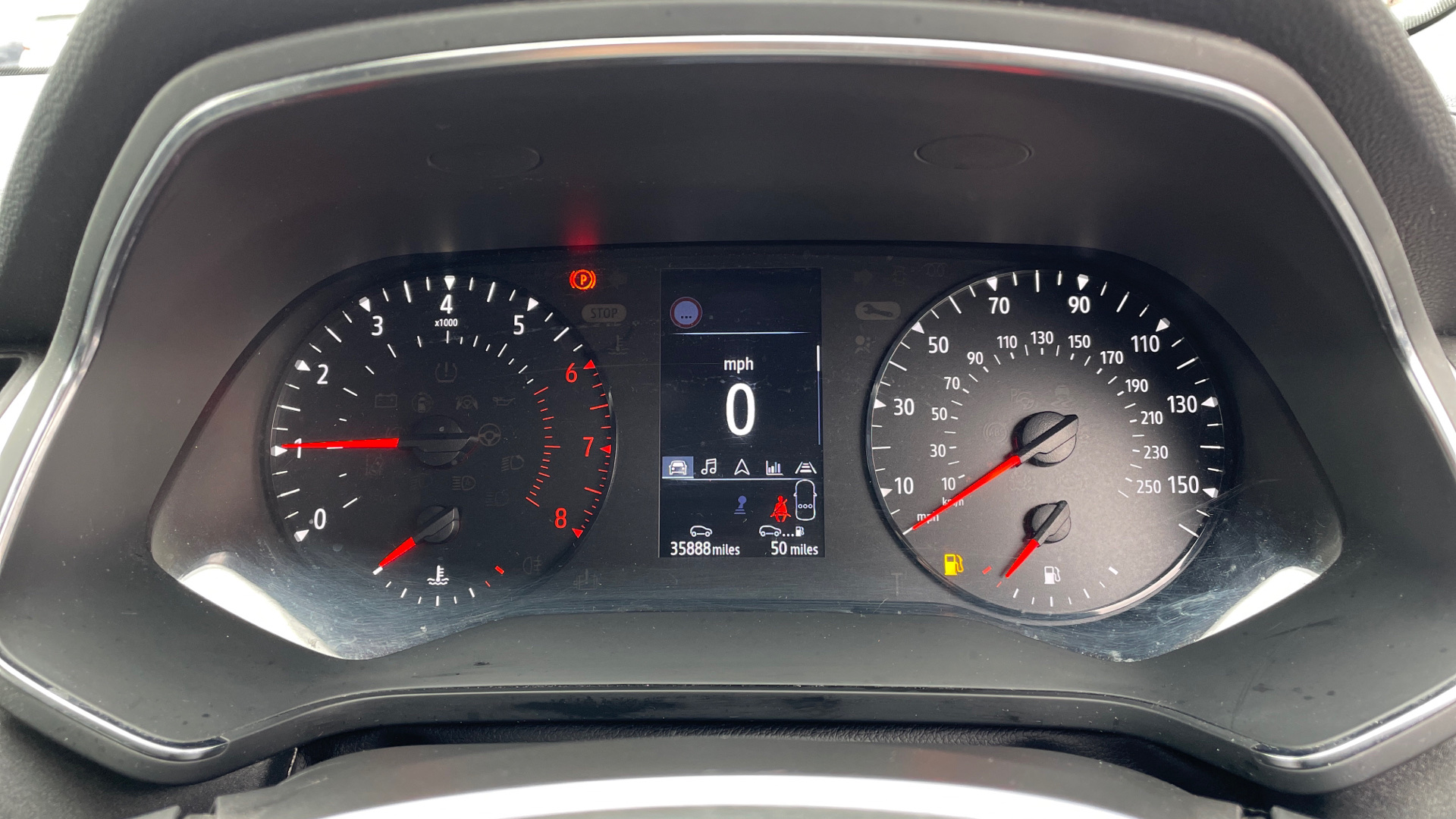 "Speedo, rev counter, electronic odometer, trip, service interval display, exterior temperature and fuel gauge",