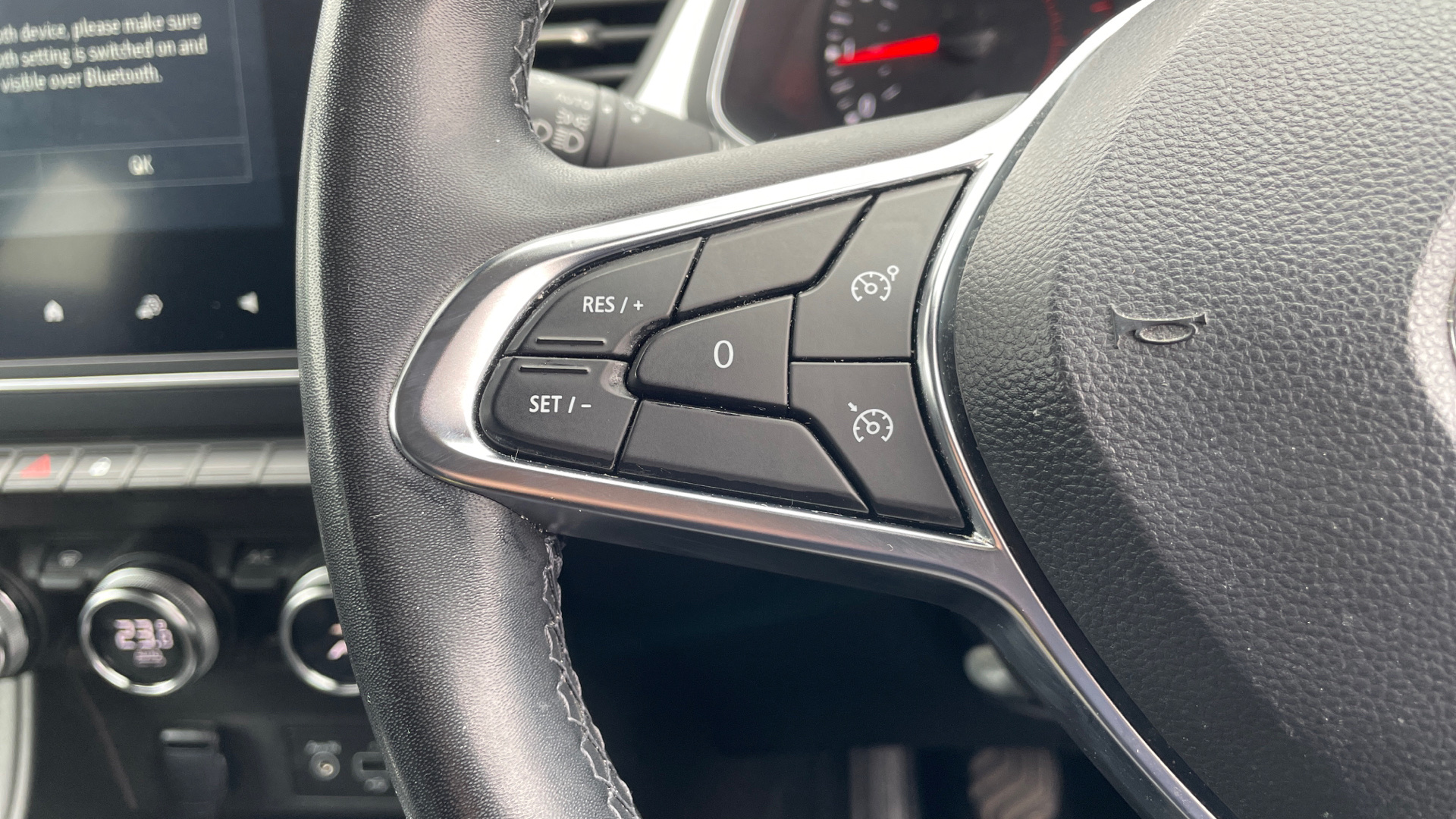 "Leather wrapped multifunction sports heated steering wheel with red stitiching + paddle shift",