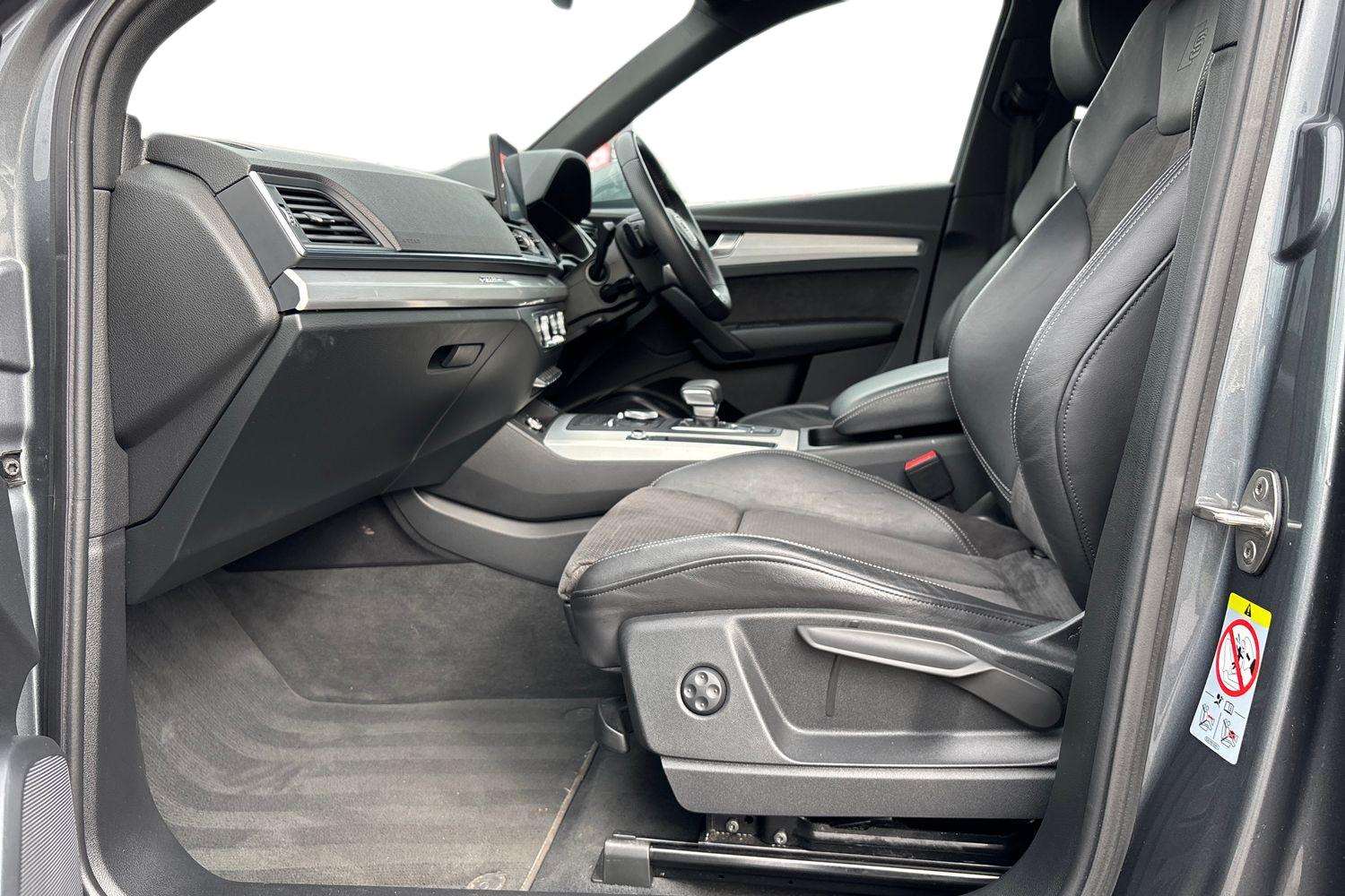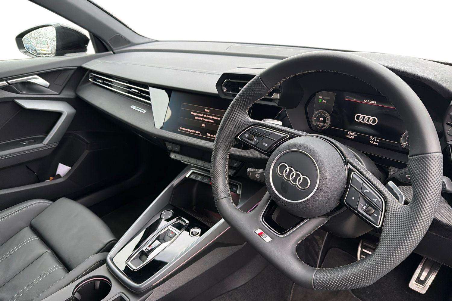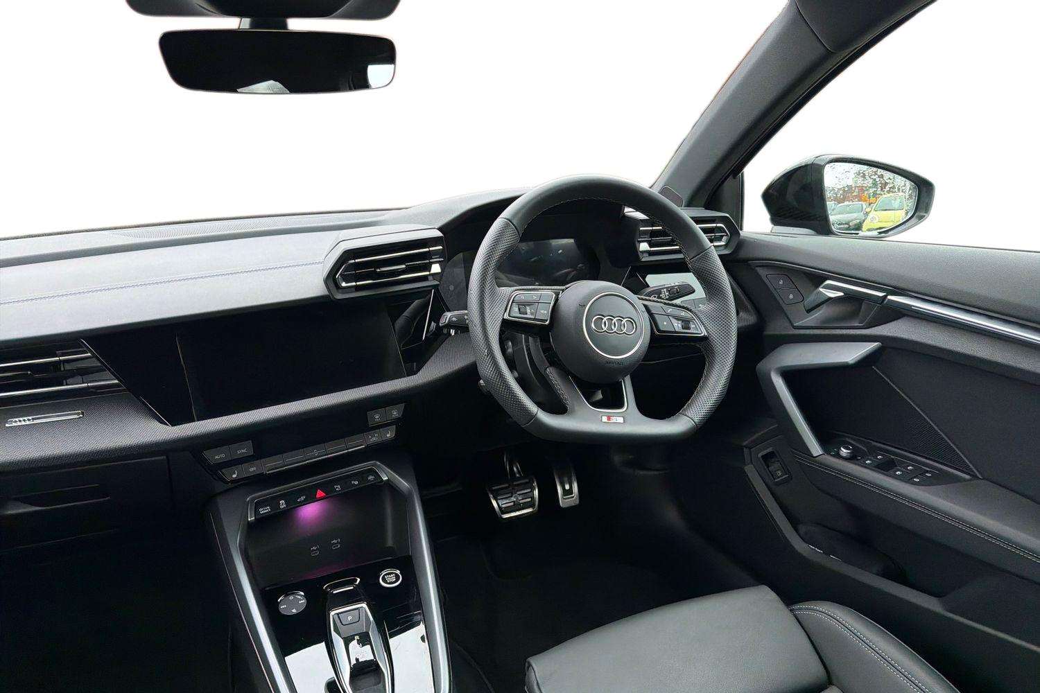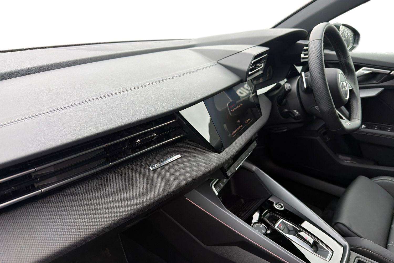 "features": "Adaptive cruise control (ACC), Adjustable speed limiter, Audi drive select (Auto, Comfort, Dynamic, Efficiency and Individual), Audi virtual cockpit plus - 12.3\" full HD resolution dynamic digital instrument cluster, Automatic start/stop system with recuperation, Bluetooth interface, Camera based traffic sign recognition, Collision avoidance assistant, Driver attention and fatigue detection, e-Call (emergency call), Electromechanical power speed sensitive steering, Emergency assist, Intersection assist, Lane departure warning system, MMI Navigation Plus with high resolution 10.1\" colour touch screen display, Park Assist with parking system Plus, Reversing camera, Service indicator, Smartphone interface with app store includes wireless Apple carplay, Android auto and Amazon alexa integration, Trip computer, Voice control system with natural language interaction, CCS socket for DC charging, Charging cable for public charging, mode 3 (type 2), 32 A, Standard suspension, Type 2 socket for AC charging, Audi Phonebox light with wireless charging, Audi sound system - 10 loudspeakers including centre loudspeaker and subwoofer, DAB Digital radio, USB ports with charging function in the rear, Acoustic glass windscreen, All weather light, Aluminium window trim, Auto dimming frameless rear view mirror, Automatic dynamic range control, Body colour exterior mirrors, Dipped beam, main beam, position light and turning light, Electrically adjustable/heated/folding/auto dimming door mirrors with integrated LED indications + kerb view function for passenger side, Exterior model badging, Front and rear side air inlets in grained matt black with dark liquid chrome frame, Front electric windows, Front radiator grill in high gloss dark chrome, Heat insulating glass windscreen, Illuminated door sills with aluminium inserts at the front with S logo, Intersection light, Invisible tailpipe, LED 3rd brake light, LED brake lights, LED daytime running x3, LED headlights with LED rear lights and dynamic rear indicators, LED rear number plate lights, LED reverse light, LED tail lights, Light and rain sensors, Manoeuvring light, Motorway light, Privacy glass - dark tinted rear window, rear door and side windows, Rear diffuser and grill in grained matt black with inlay in dark liquid chrome, Rear electric windows, Rear side wing doors, Rear wiper, S line bumpers, S roof spoiler, Side S line emblems on front wings, Side sill trim in dark liquid chrome, Static cornering light, 12V socket and storage compartment in front centre console, 3 seat bench in 2nd row, 3 spoke flat bottomed leather multifunction sport steering wheel with gear shift paddles, 3-zone deluxe automatic air conditioning, 4 way electrically adjustable lumbar support for driver and front passenger, 40/20/40 split folding rear seat bench, Black cloth headlining, Black front and rear floor mats, Convenience auxiliary air conditioning, Front and rear centre armrest in artificial leather with contrasting stitching on armrests and instrument panel, Front and rear headrests, Heated front seats, Height and reach adjustable steering wheel, i-Size child seat mounting on the front passenger side and outer rear seats, i-Size and top tether on the outer rear seats, Manual boot compartment lid, Manually adjustable front seats, Rear centre armrest with cupholder, S badging on the steering wheel, Seat side bolsters, Single front passenger seat, Stainless steel pedals and front footrest in black, Twin leather upholstery with front sports seats S embossed logo, Aluminium interior elements pack - A3, Multi-coloured LED interior lighting package with Multi-coloured contour lighting of instrument panel - A3, 3x3 point rear seat belts, Acoustic vehicle alerting system, Driver and front passenger airbag with passenger airbag deactivation, Electronic Stabilisation Control (ESC) including ABS, ASR and EDL, First aid kit with warning triangle and 2 safety vests, Front side airbags with head airbags and interaction airbag, Hill hold assist, Pre-sense front with pedestrian and cyclist detection, Seatbelt monitoring, Tyre pressure loss indicator, Anti theft alarm, Anti-theft wheel bolts, Electronically operated child locks, Immobiliser, Black dashboard, Inlay in dark aluminium spectrum, Tyre repair kit, ",