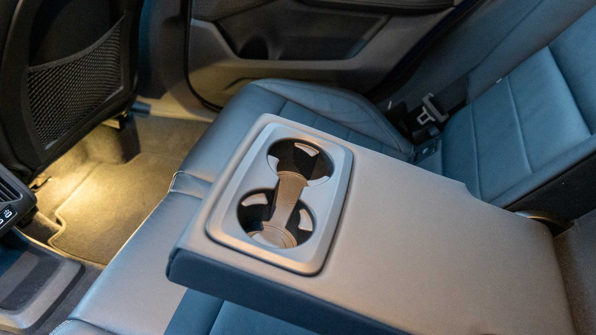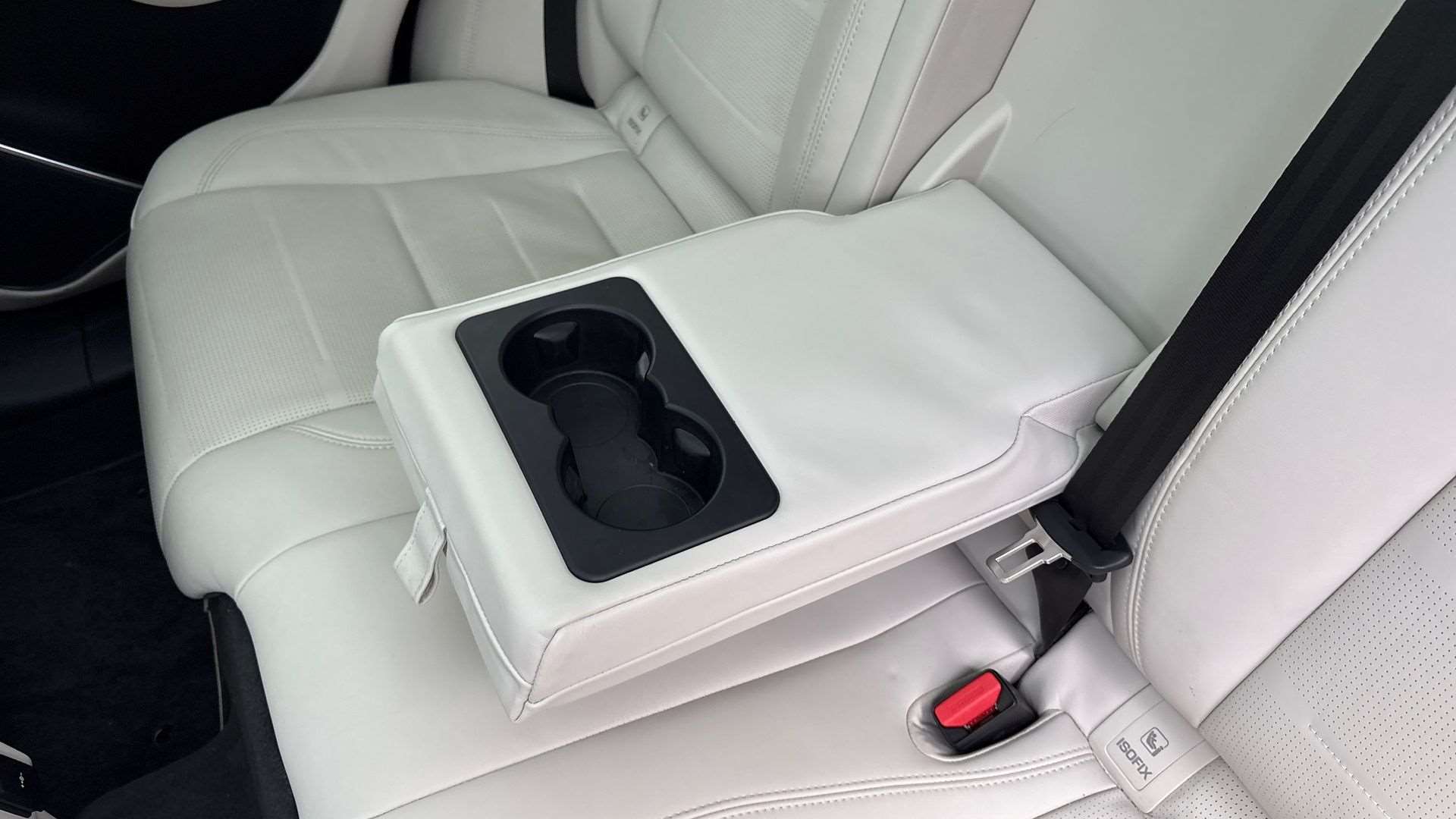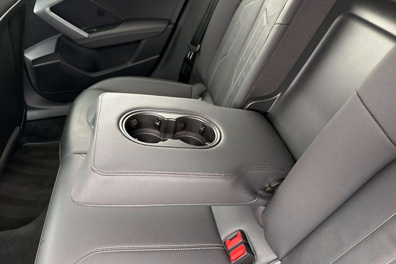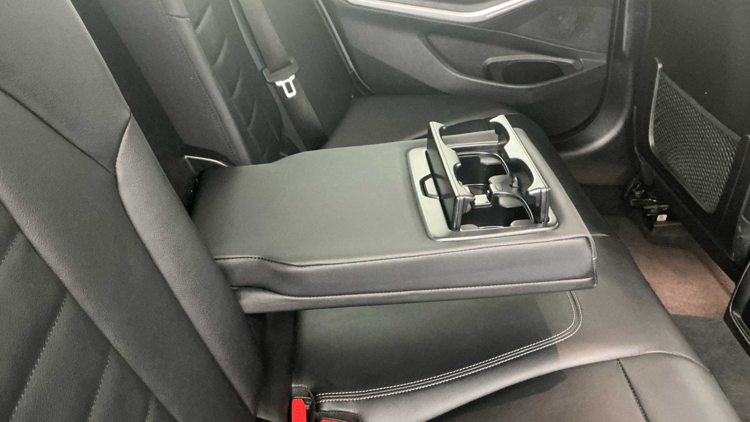 "Rear armrest with two integral cup holders for drinks",