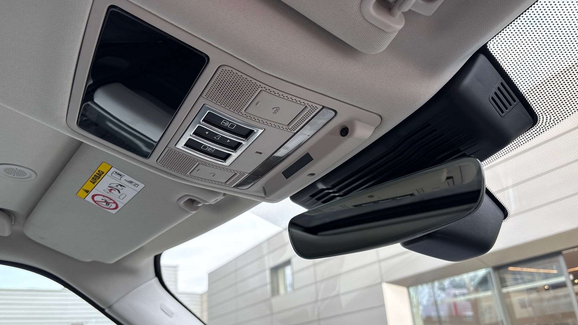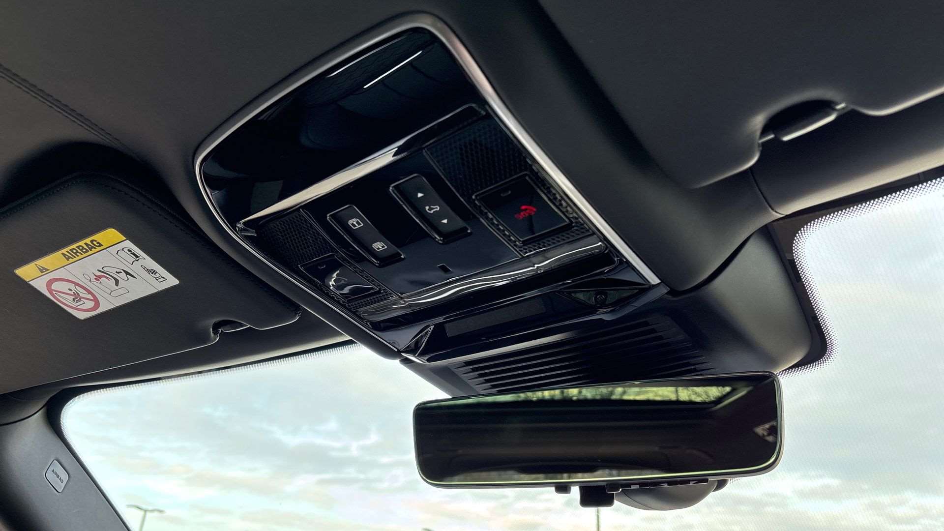 "Interior mirror with black reading lamps and frameless",