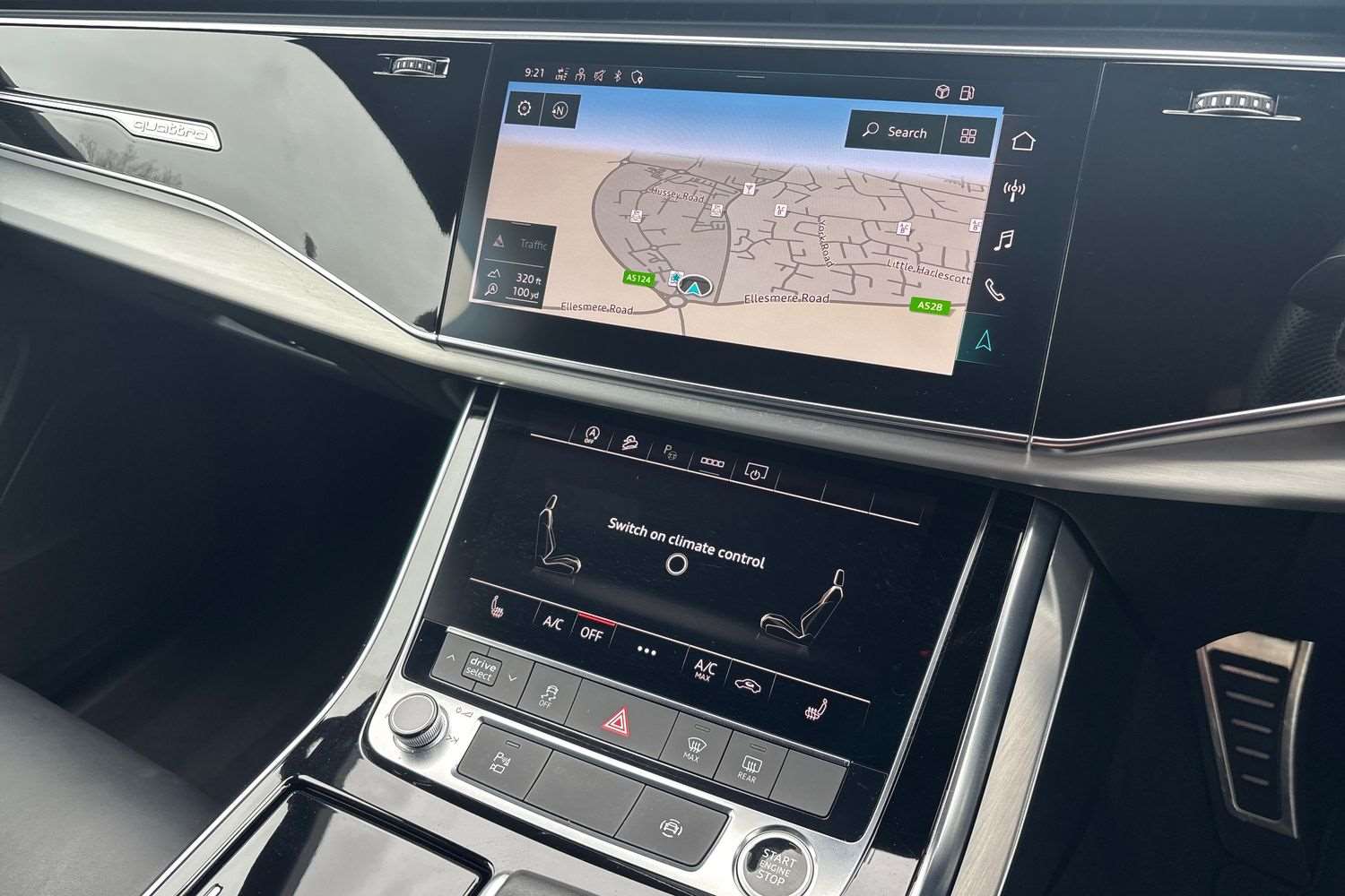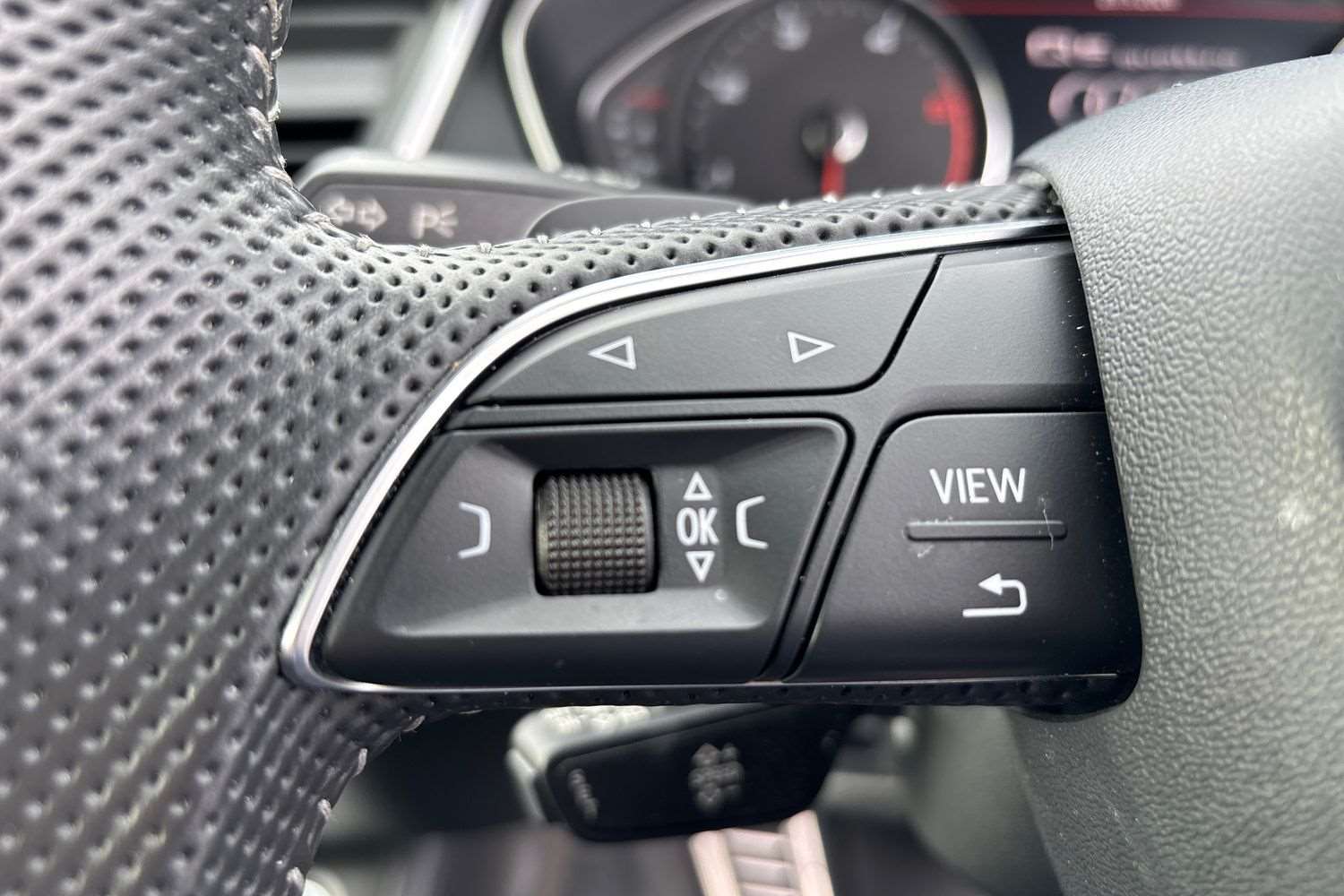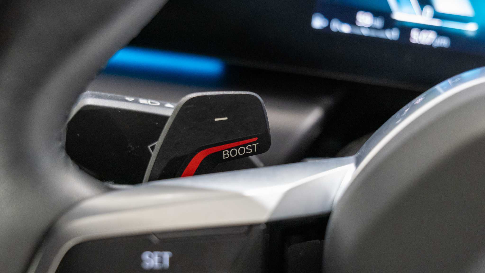 "Galvanished gear shift paddles on steering wheel",
