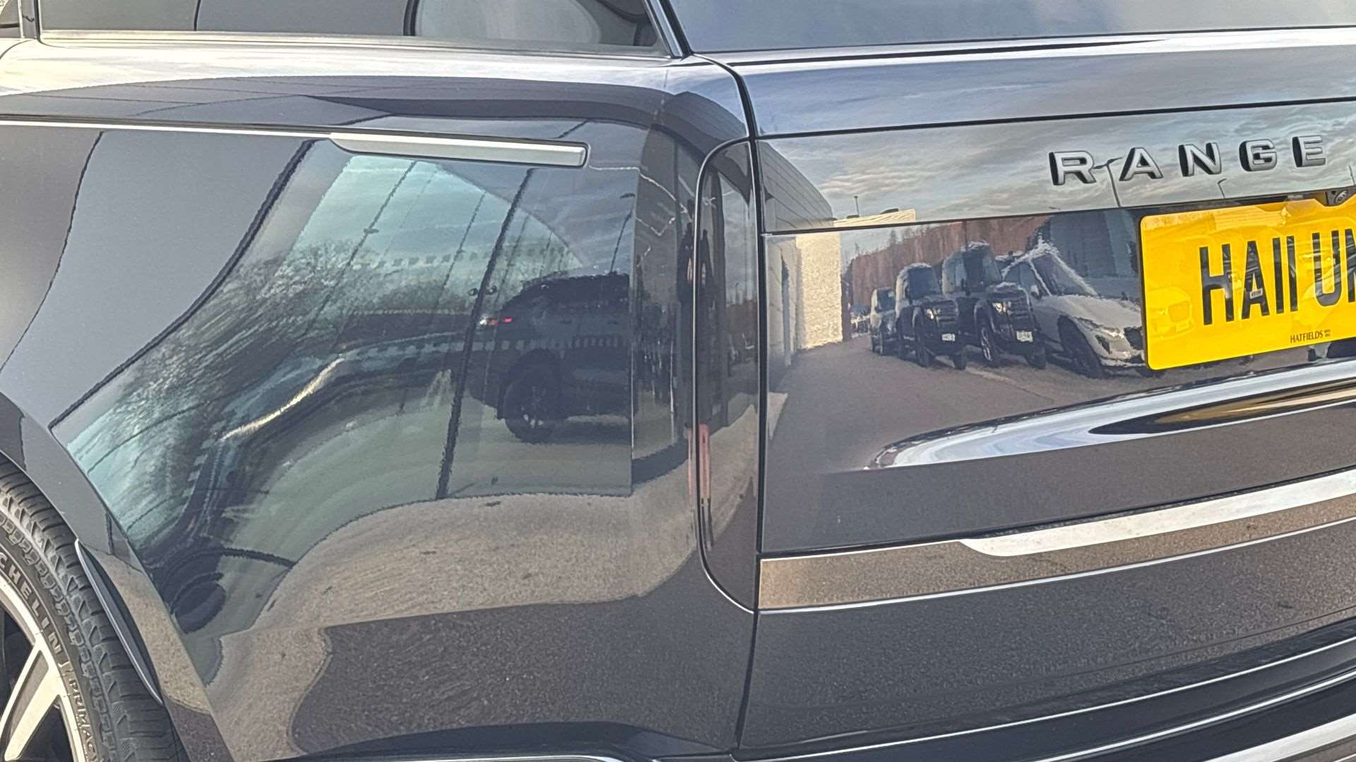 "Privacy glass with dark tinting on rear side windows and rear window",