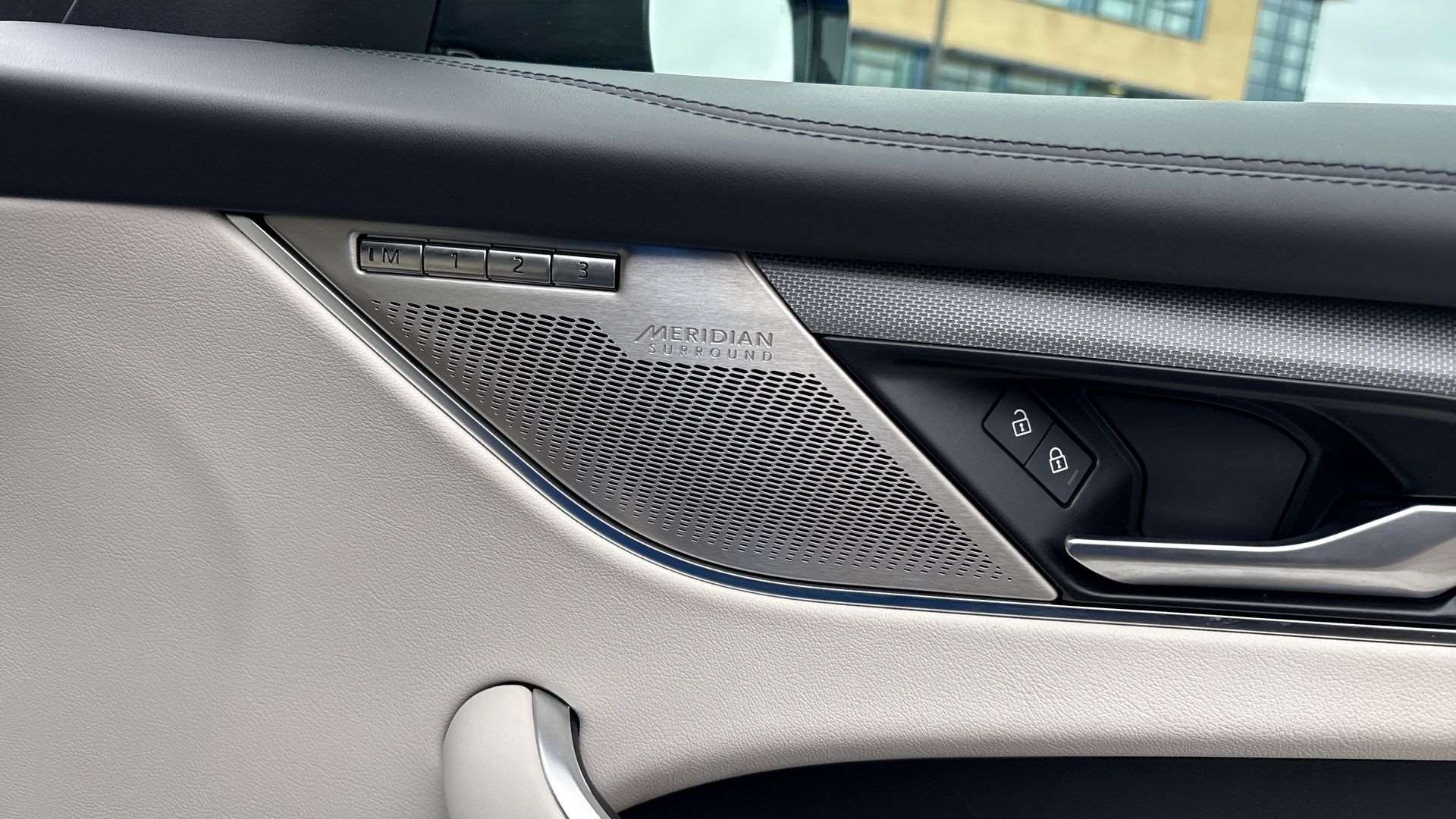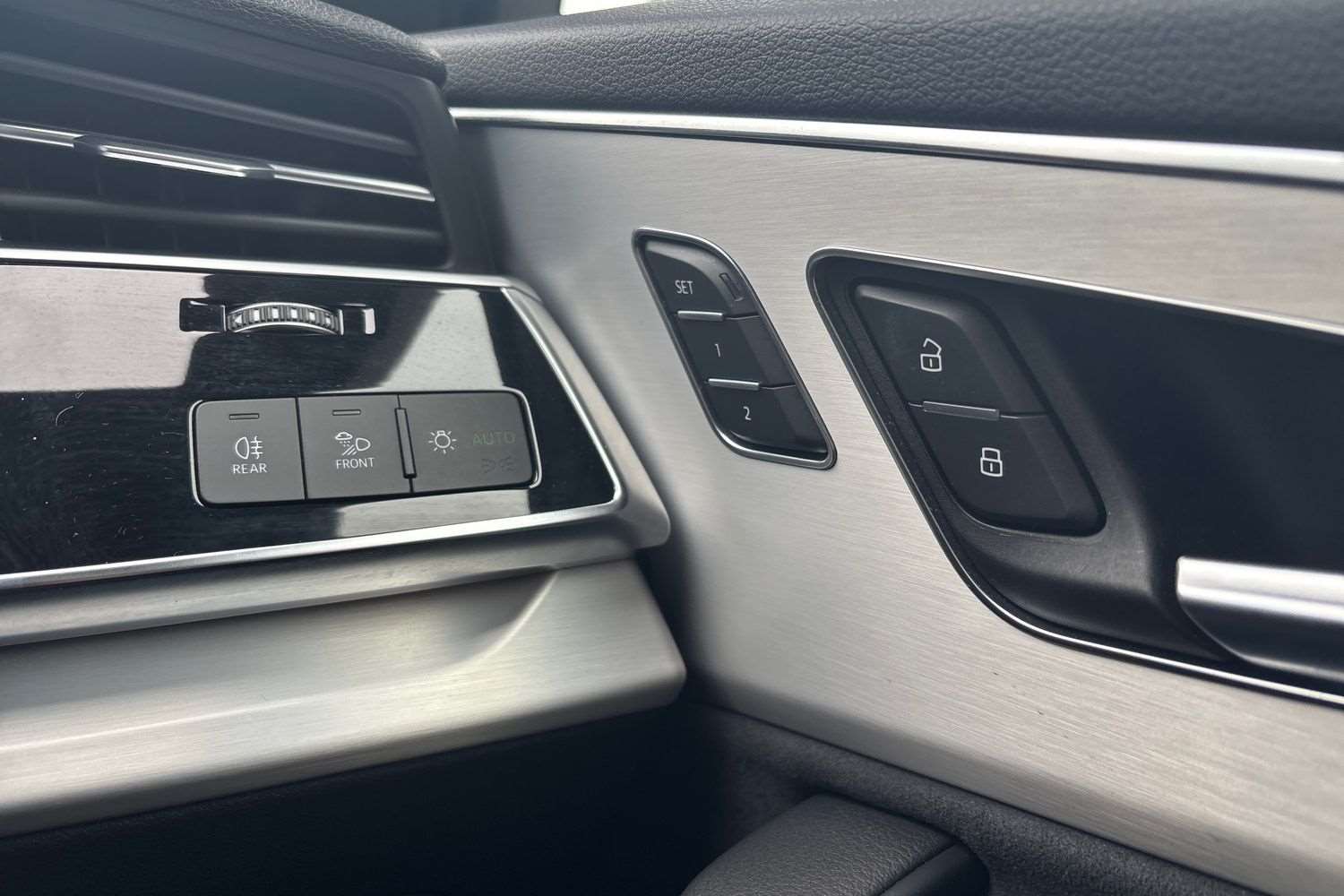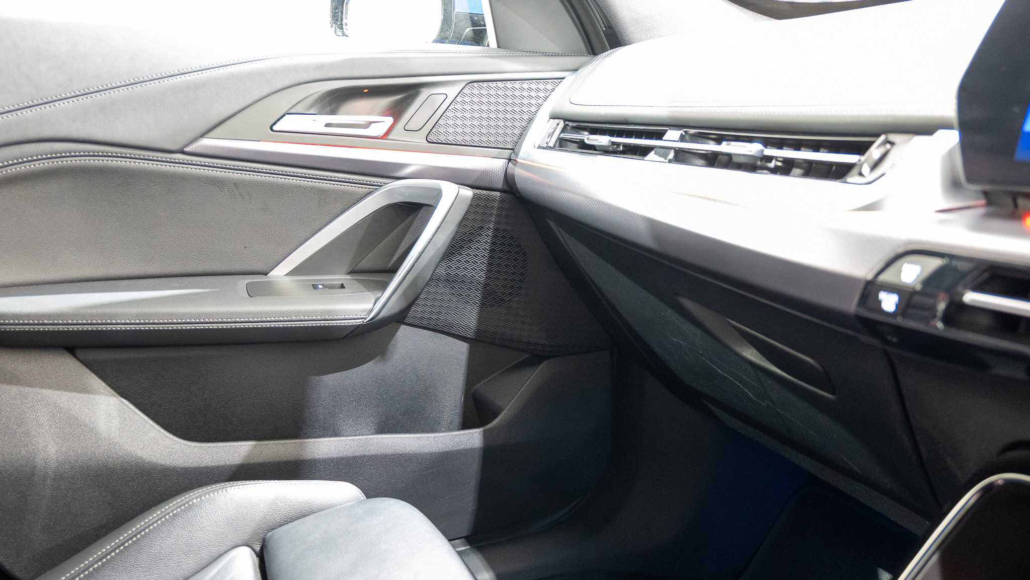 "Front passenger grab handle with brushed side silver chrome",