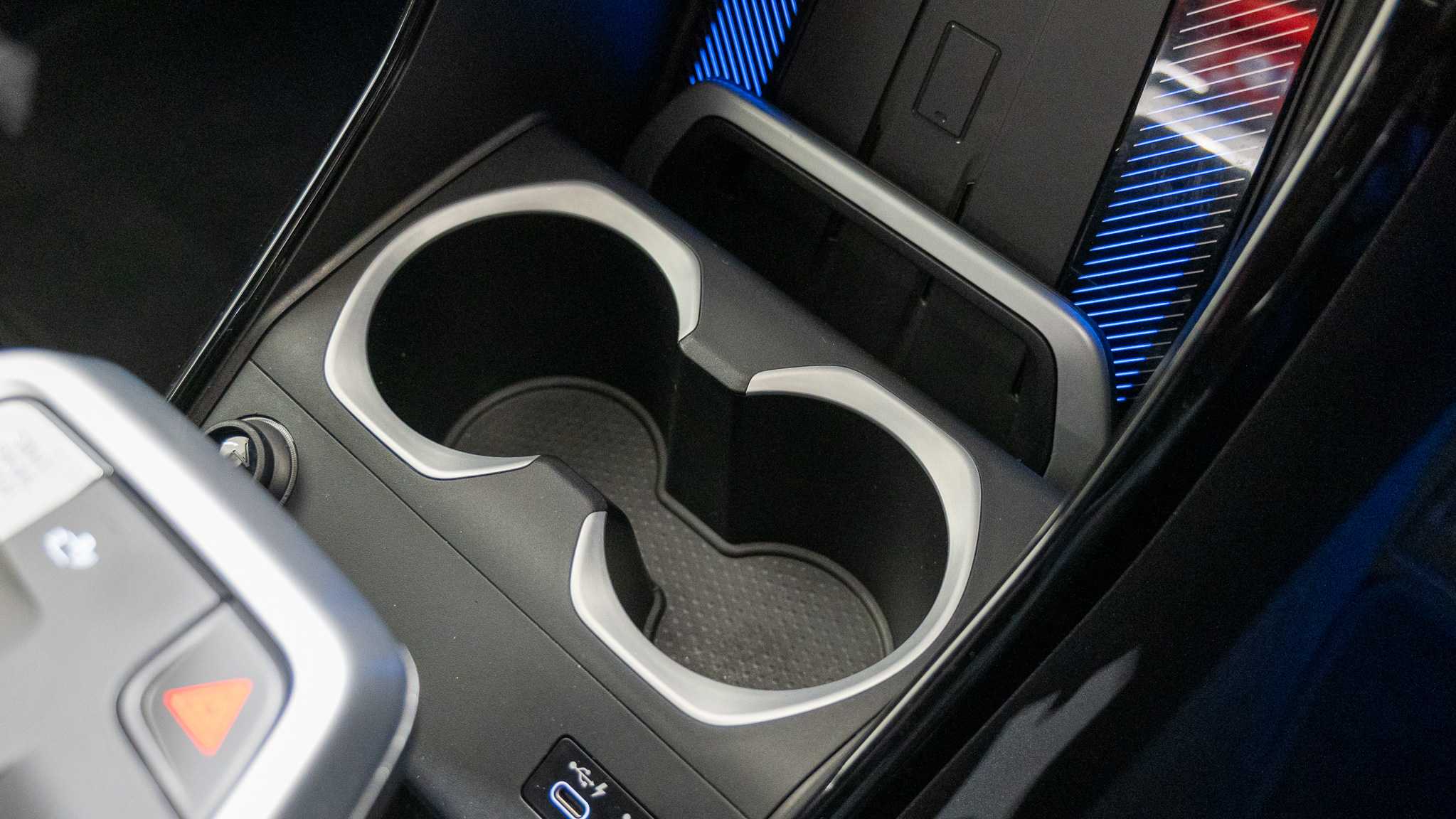 "Twin front cup holders",